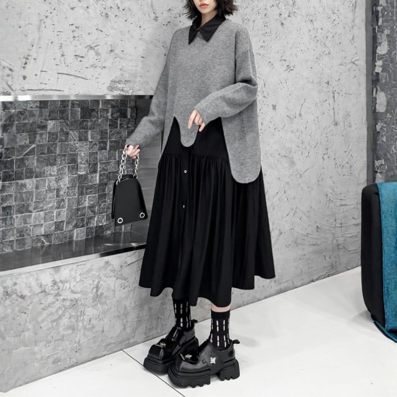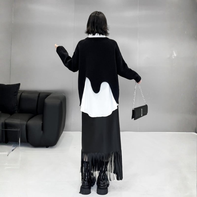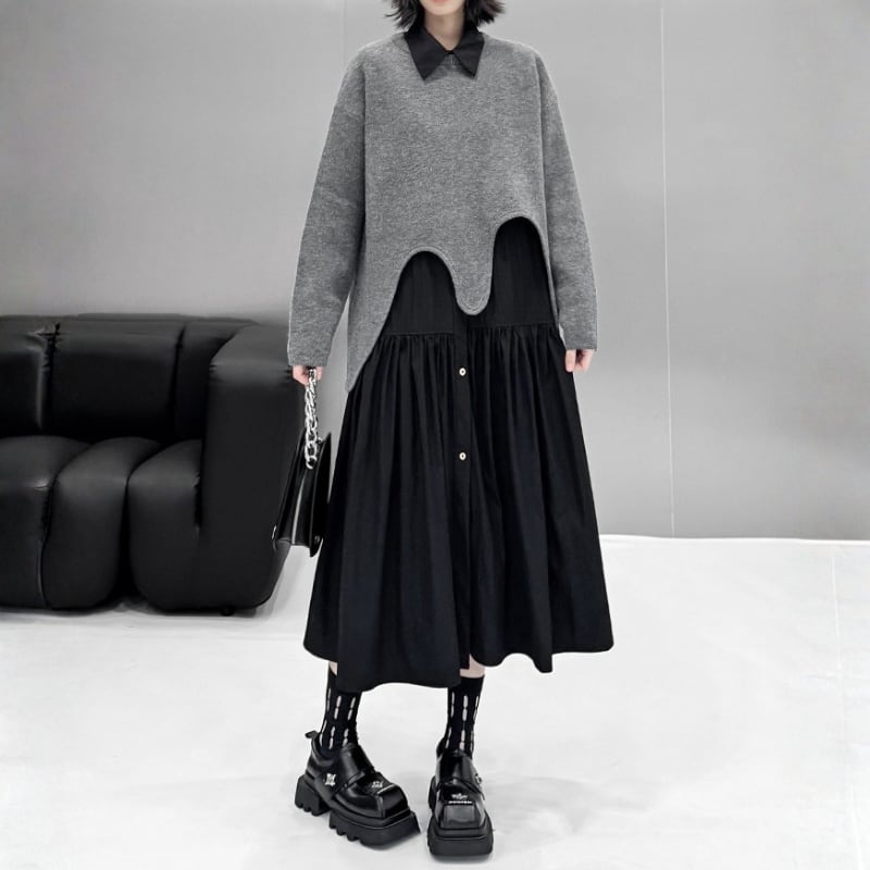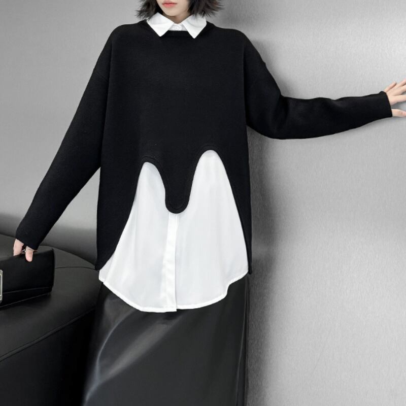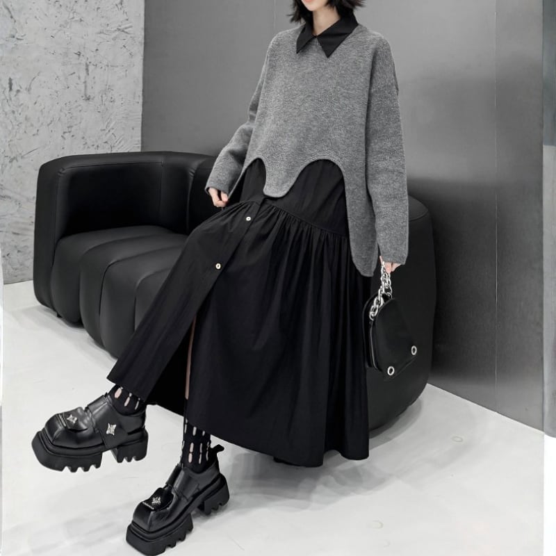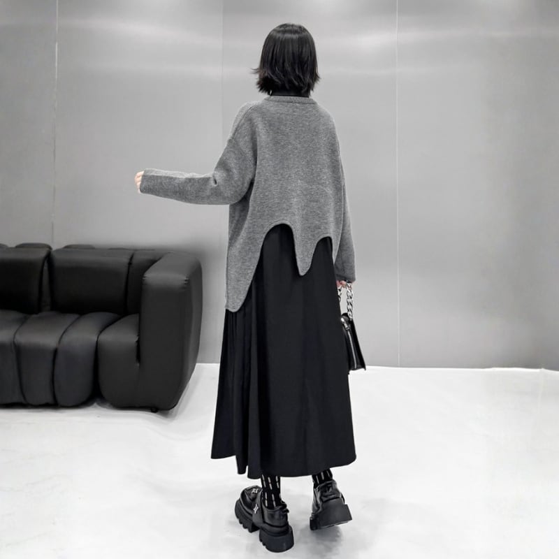 Wave-Cut Hem Knit Pullover H0274