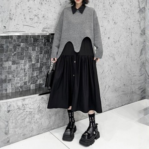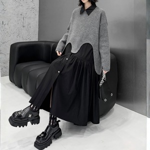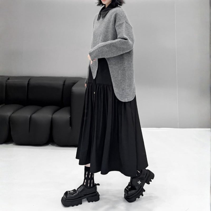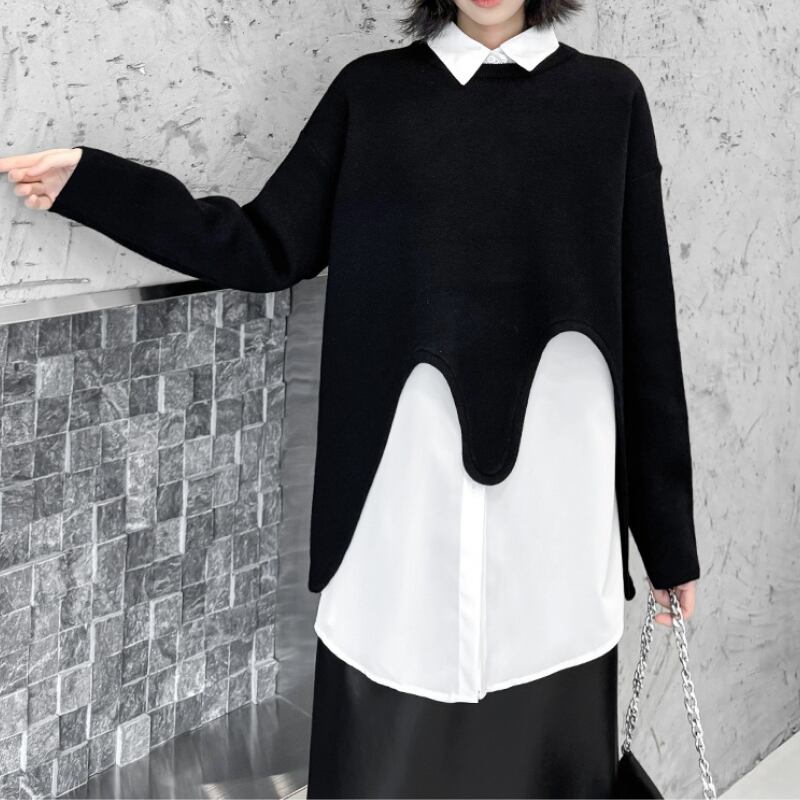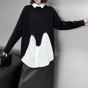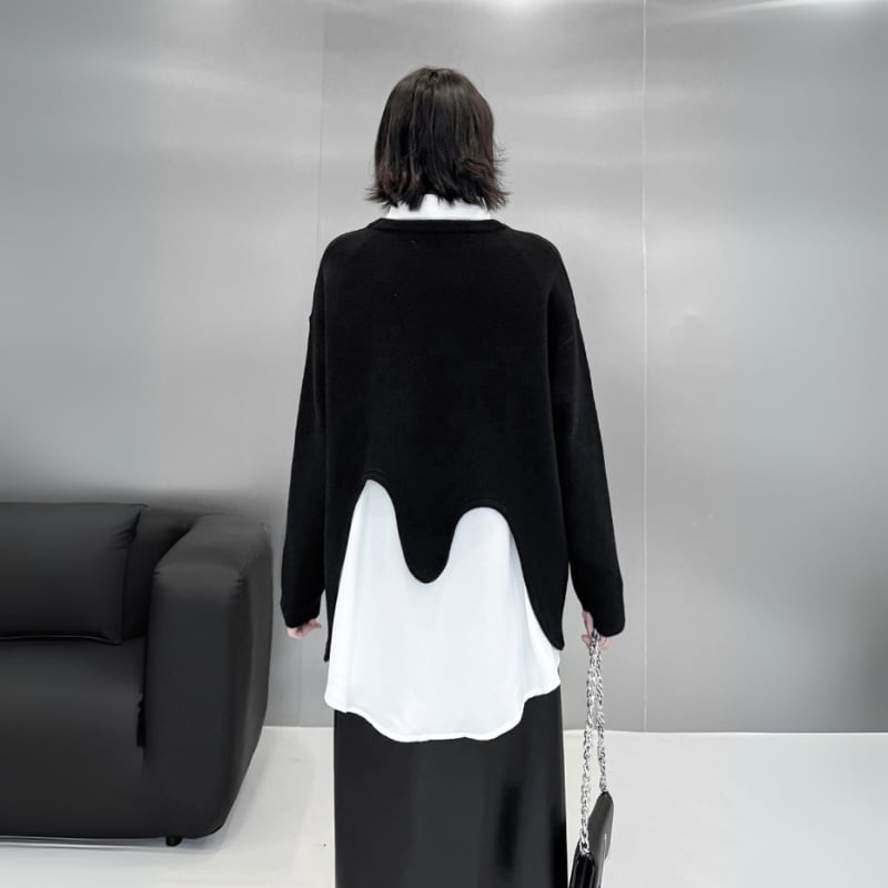 レイヤードスタイルにモードな遊び心をプラスする、変形ニットプルオーバー。