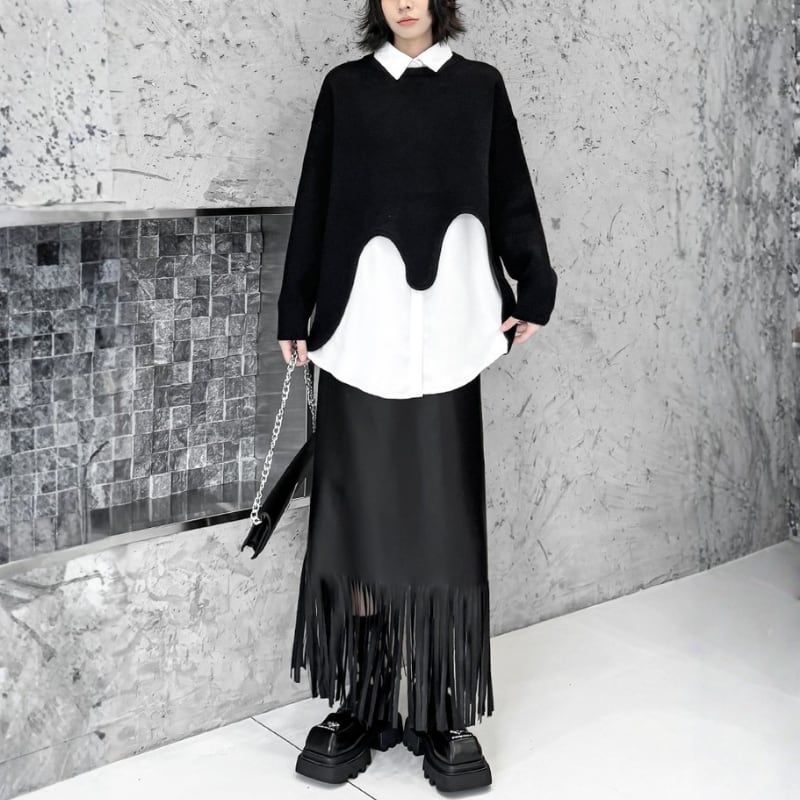 白シャツやロングスリーブTシャツを合わせることで、ウェーブラインが際立ち、奥行きのあるモードなコントラストが楽しめます。