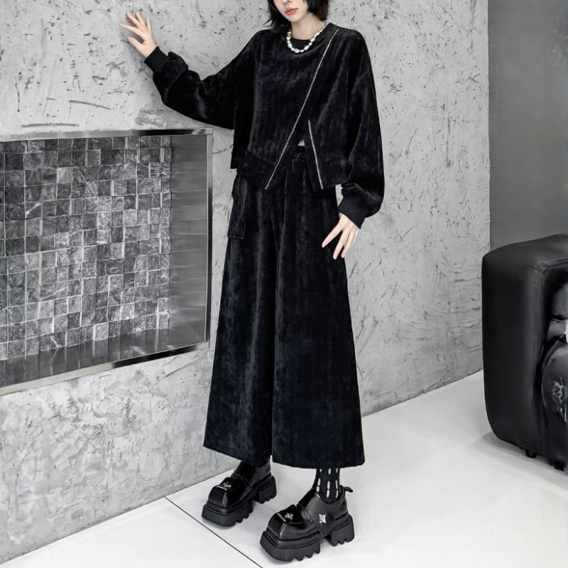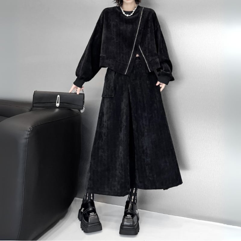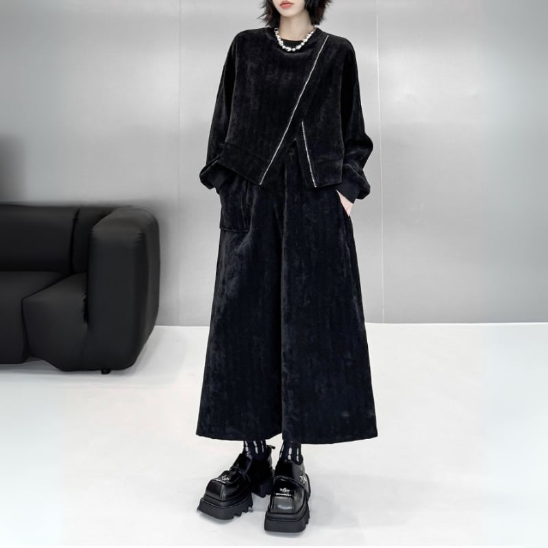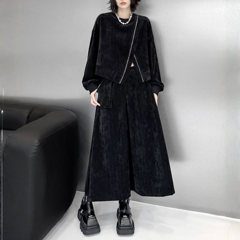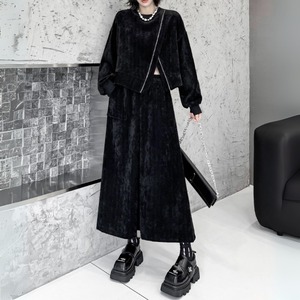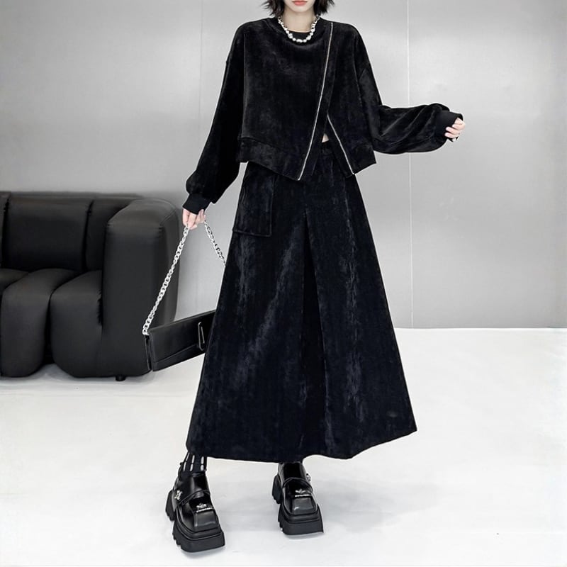 シンプルなロングスカートにクールな立体感を加え、実用性も兼ね備えています。