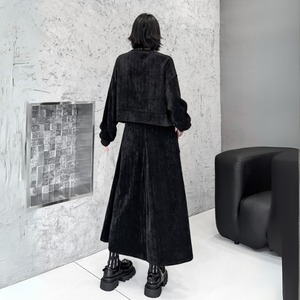 コーデュロイ調の生地が作り出す、ゆったりとしたAラインシルエット。