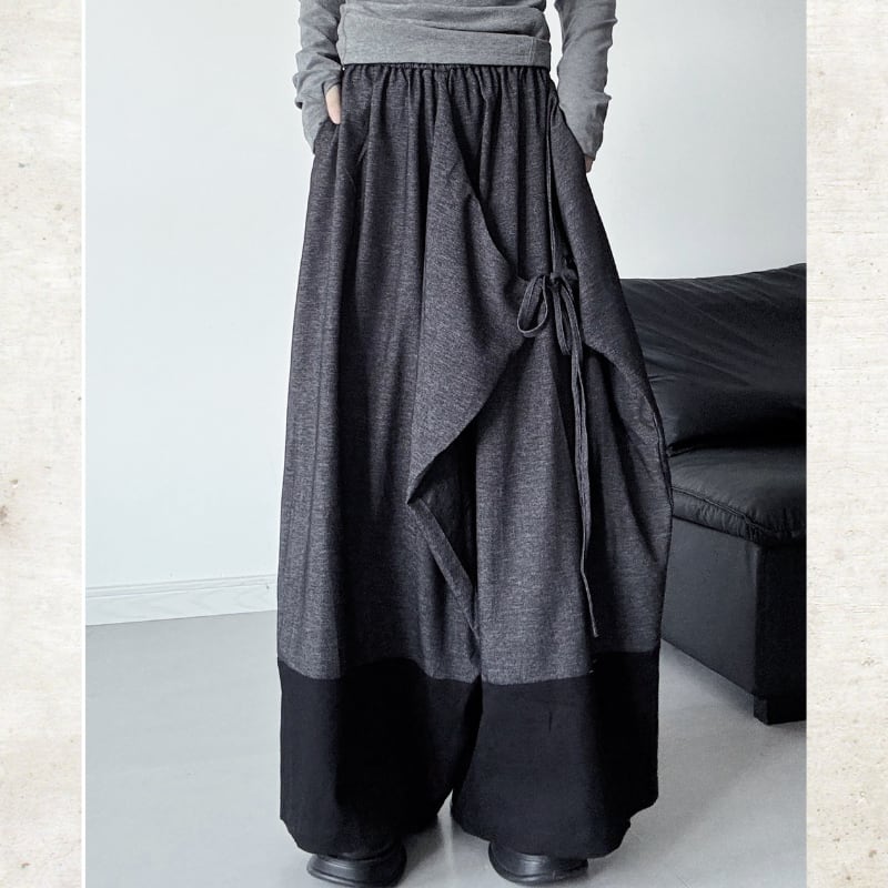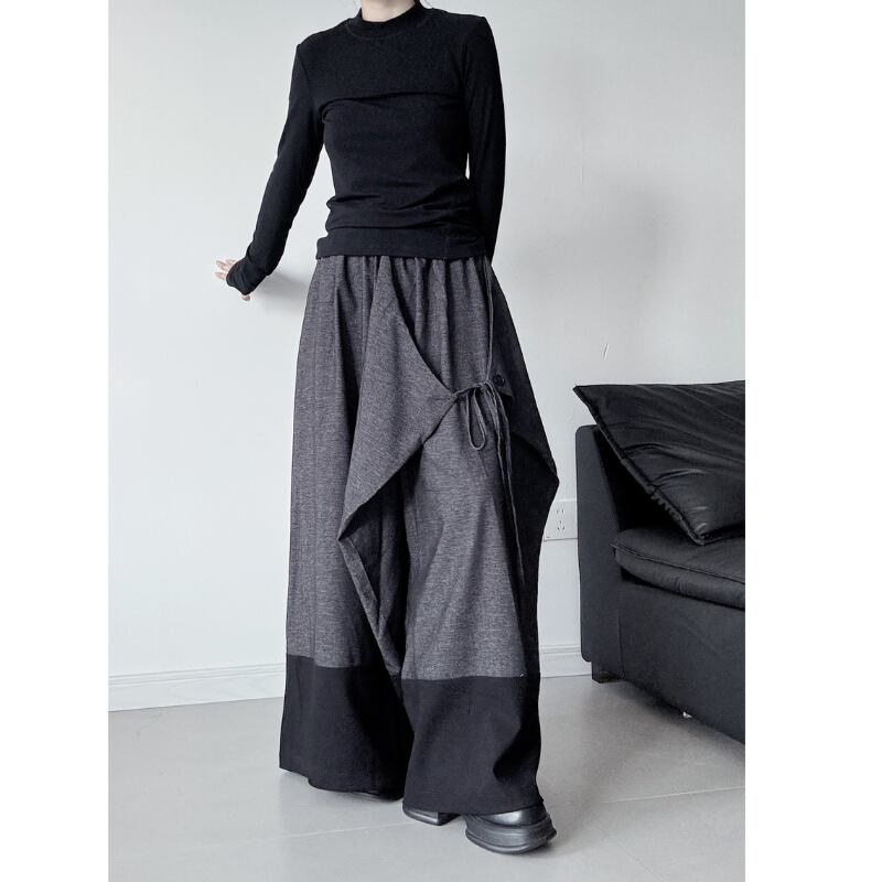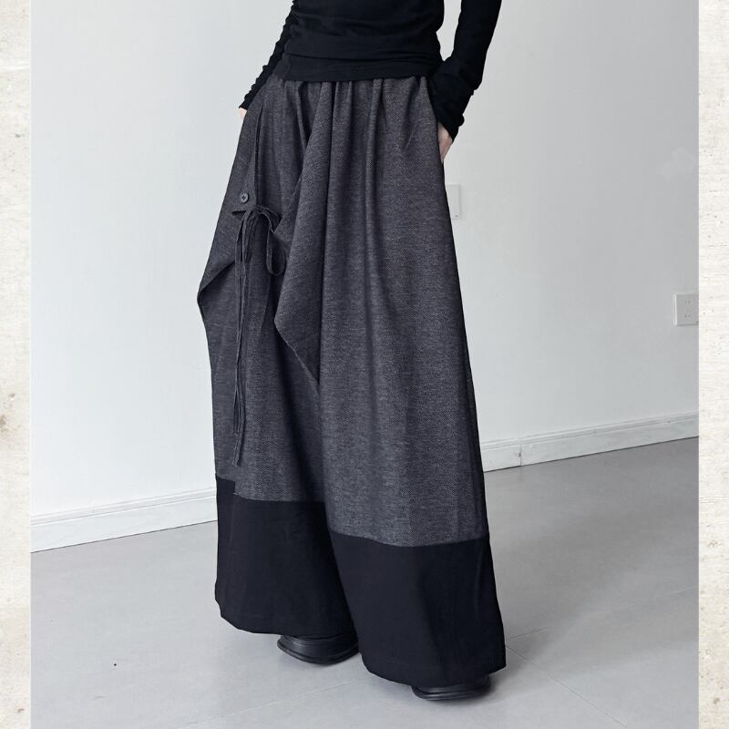 スカートのような優雅なドレープと、アバンギャルドなデザインを両立させたワイドパンツ。