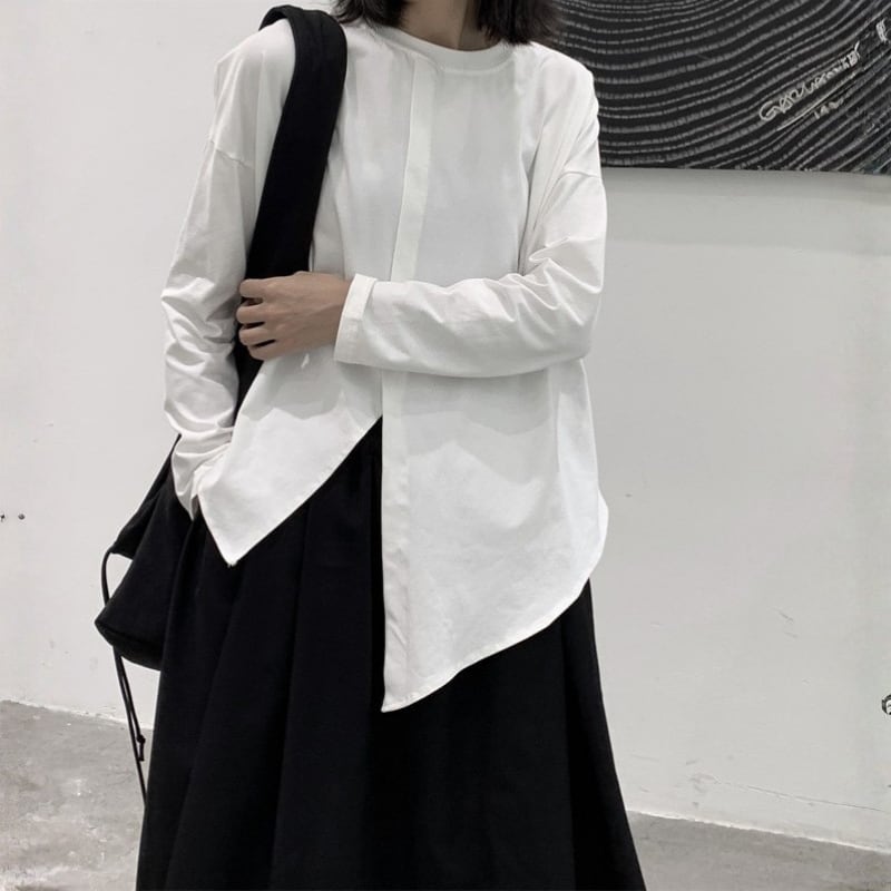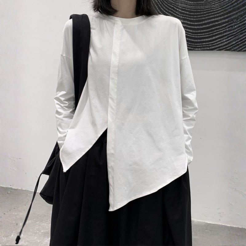 Asymmetrical Deformed Hem Long Sleeve Tee H0290
