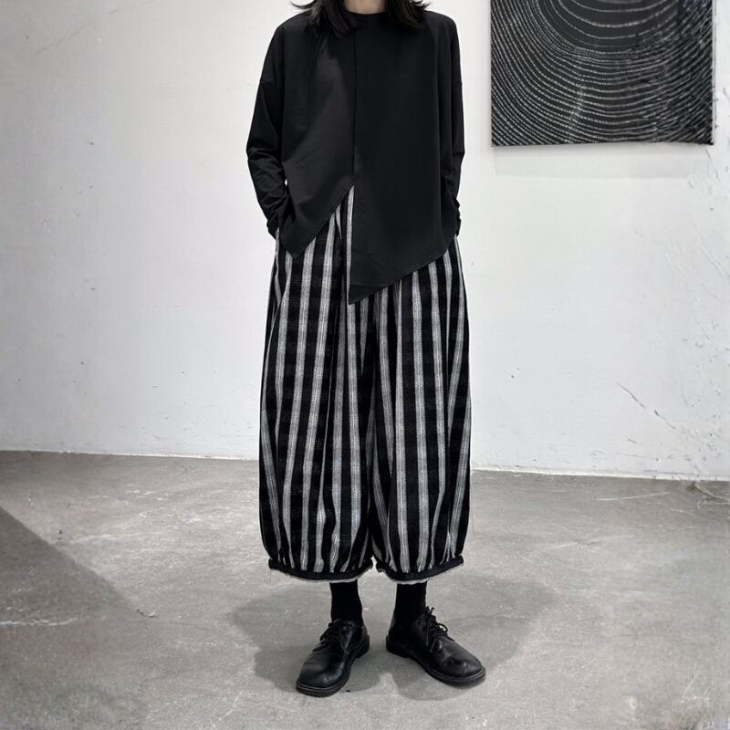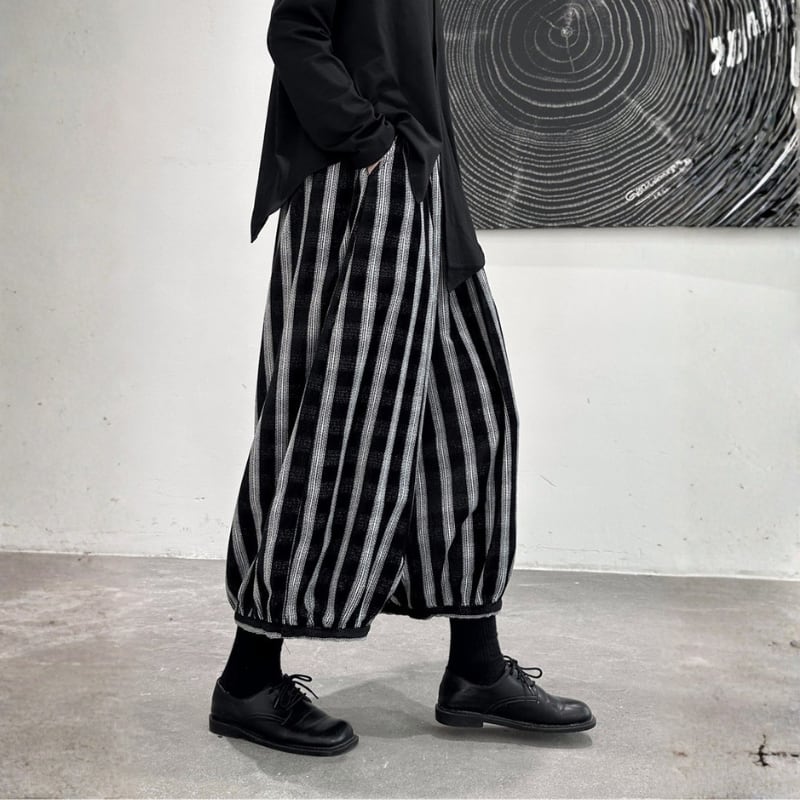 大胆な変形シルエットながらも、洗練された斜め切替のディテールがモードな佇まいをキープ。