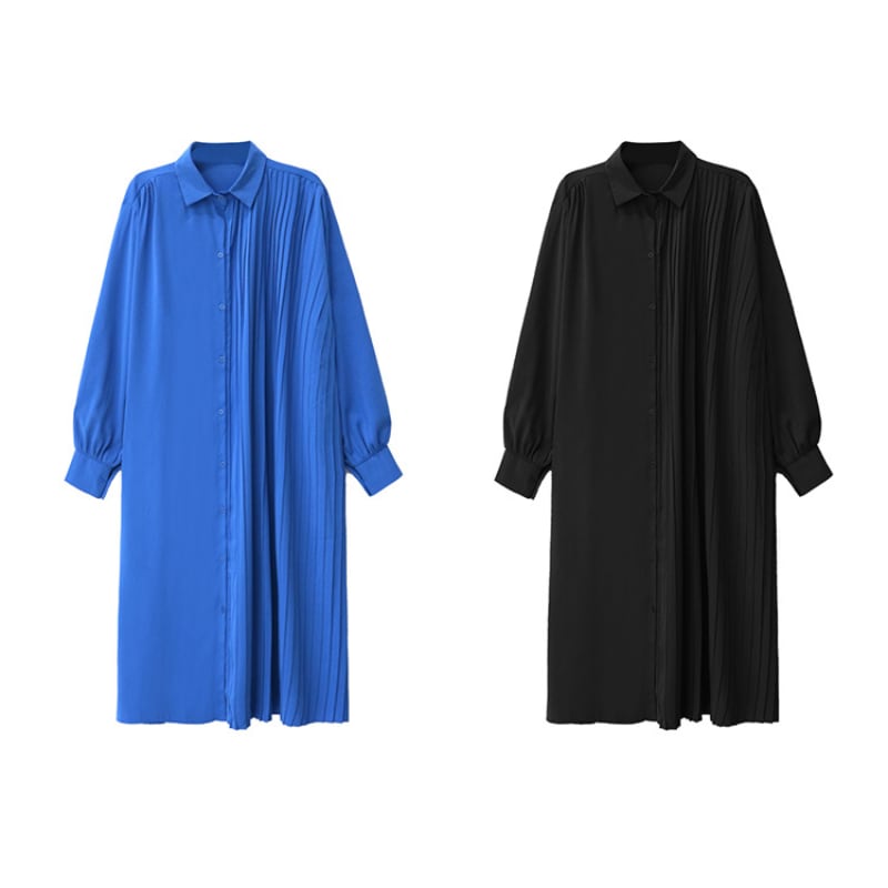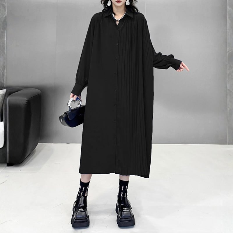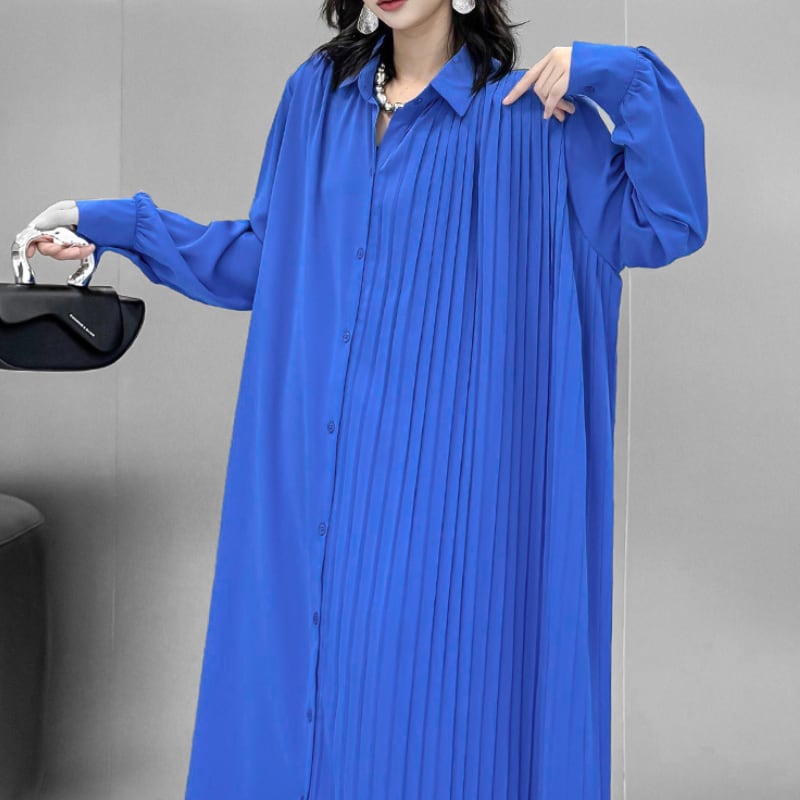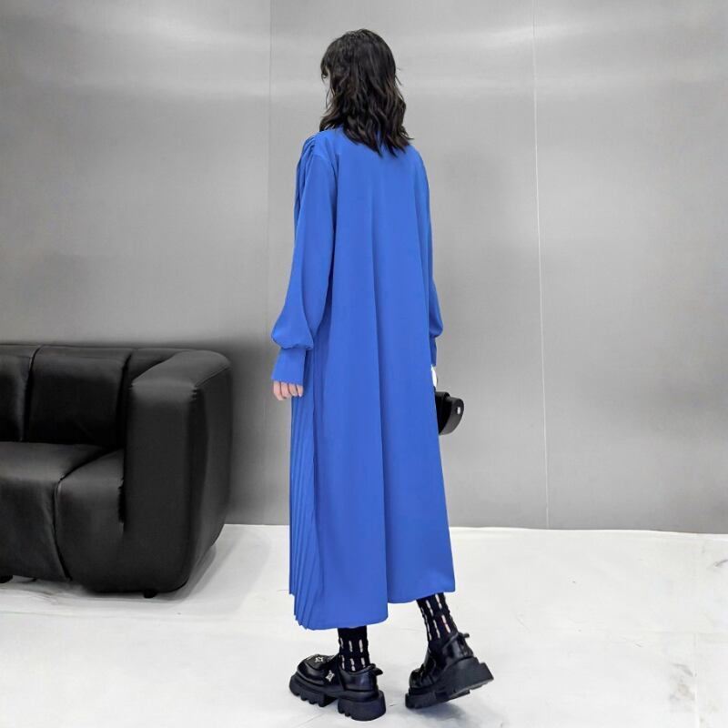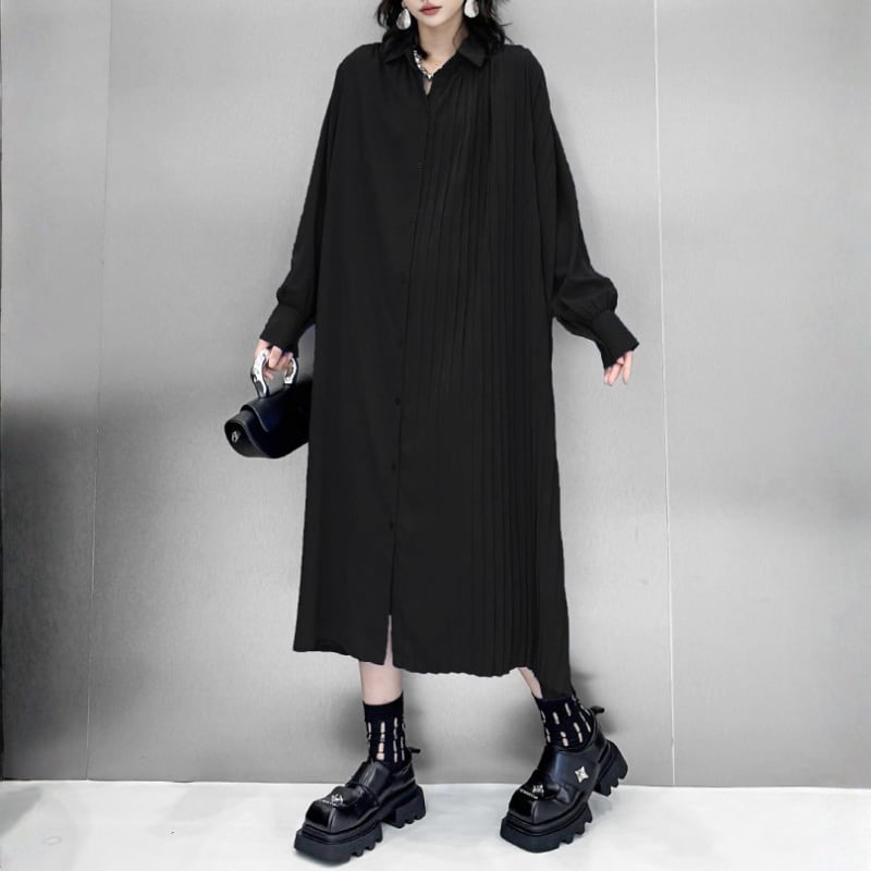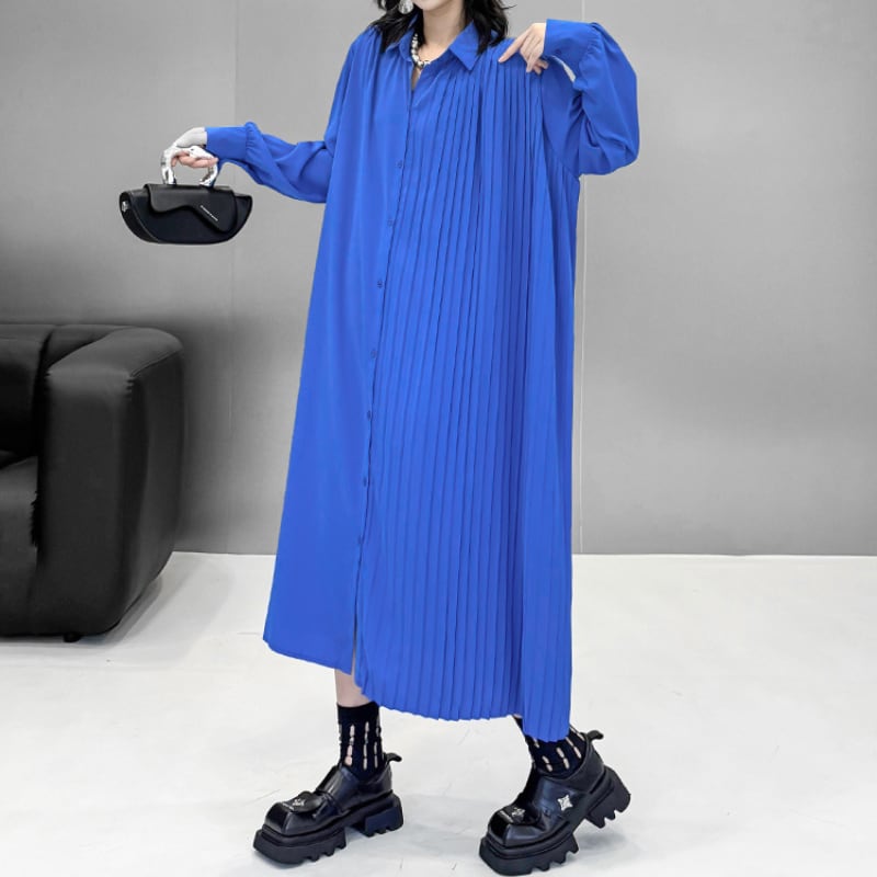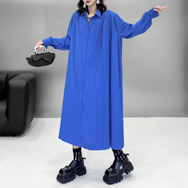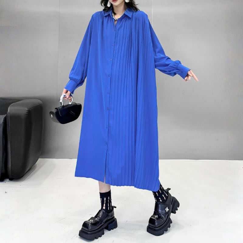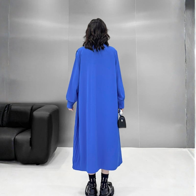 Asymmetric Pleated Long Shirt Dress H0299