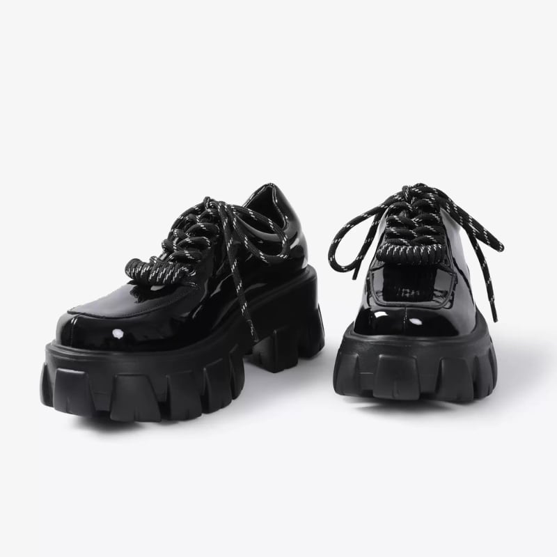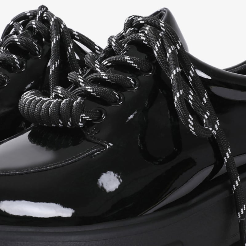 クラシックなダービーシューズのフォルムを、ソリッドなボリュームで再定義したモードな一足。