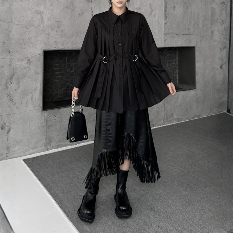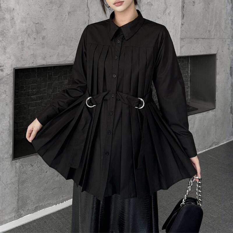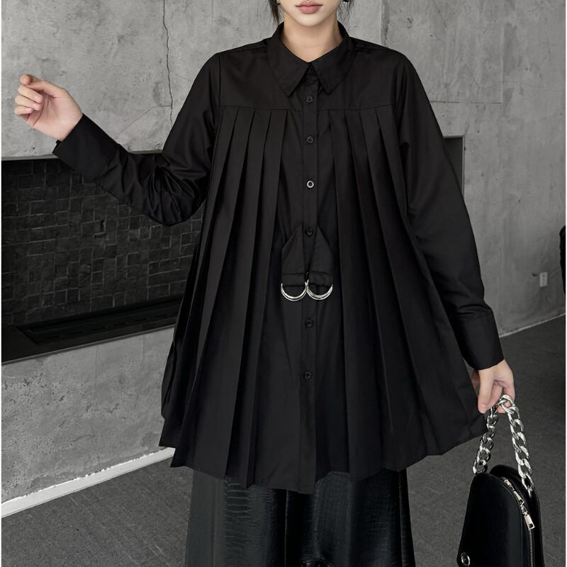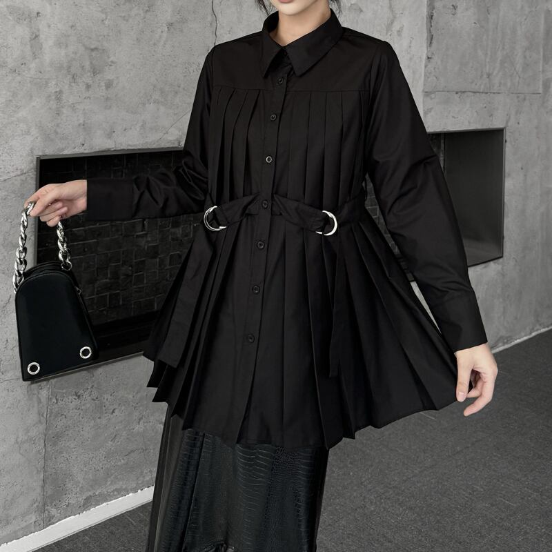クラシックなシャツに、モードな構築美を吹き込んだデザインブラウス。
