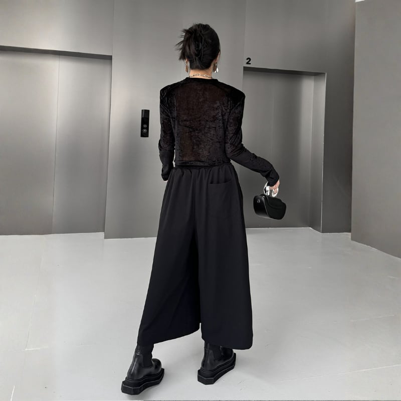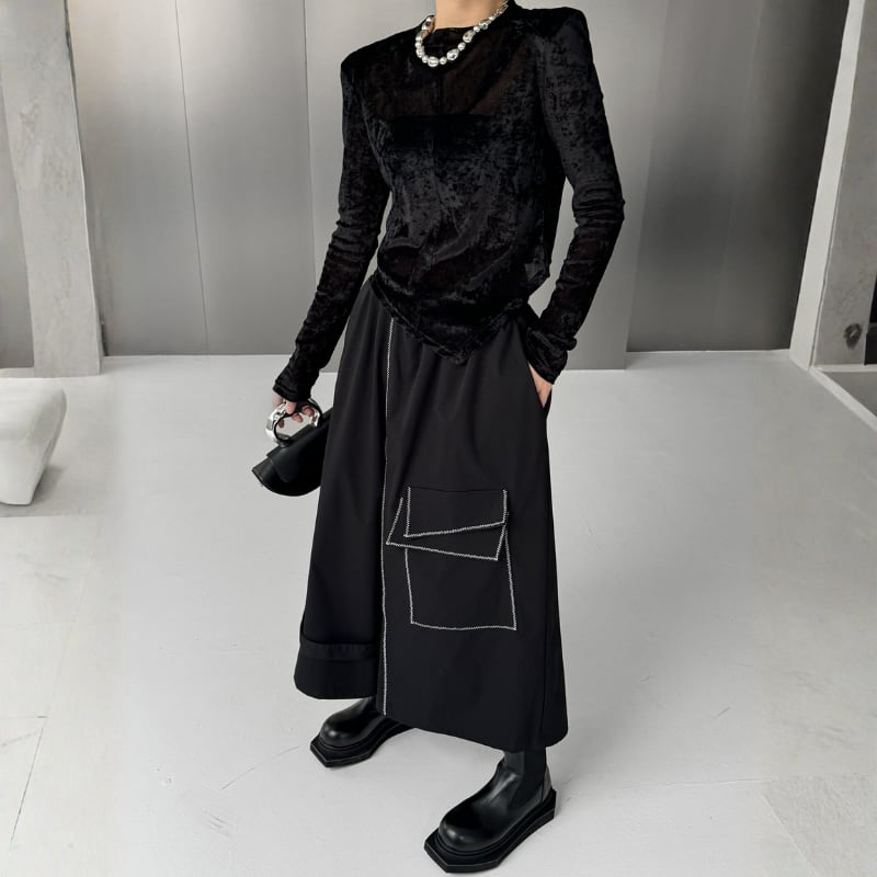 Velour-Like Asymmetrical Long Sleeve Top H0180