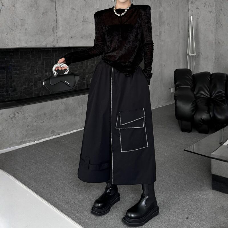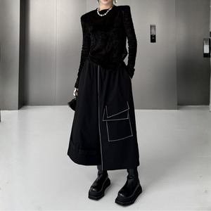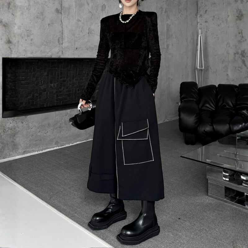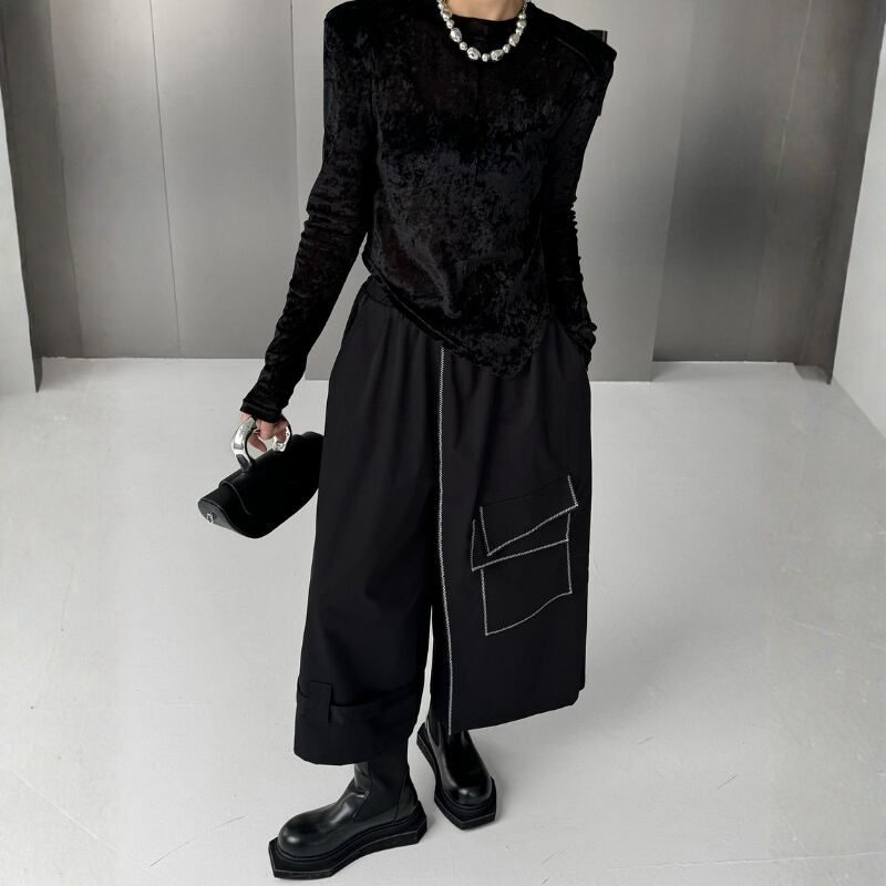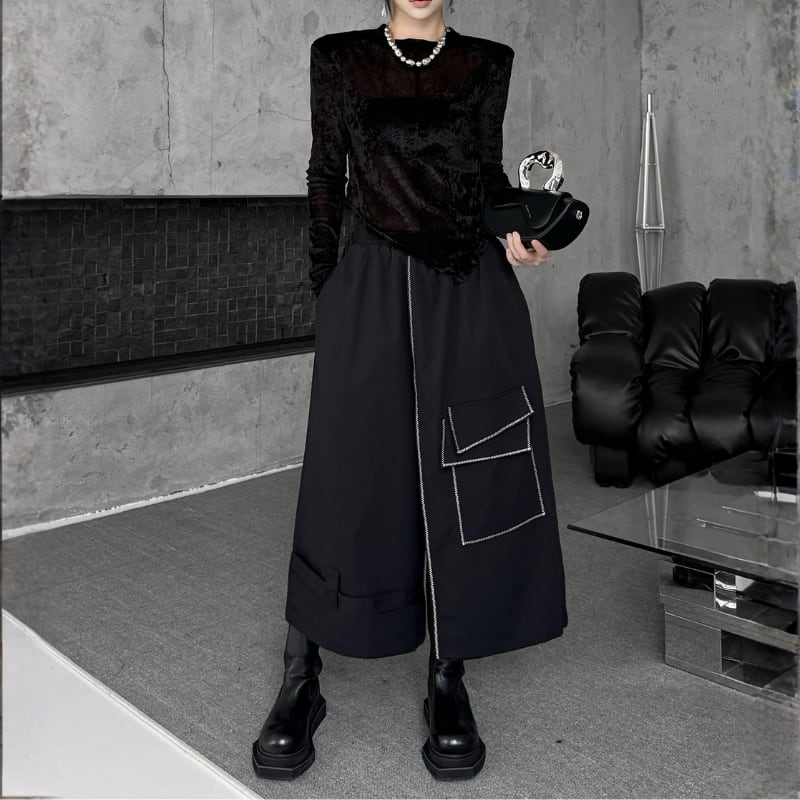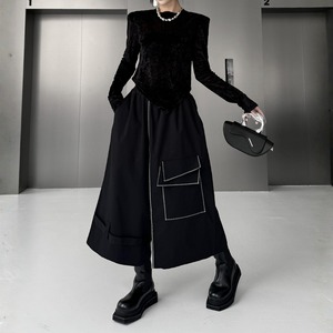 ボトムスからモードな個性を主張する、テクニカルなワイドパンツ。