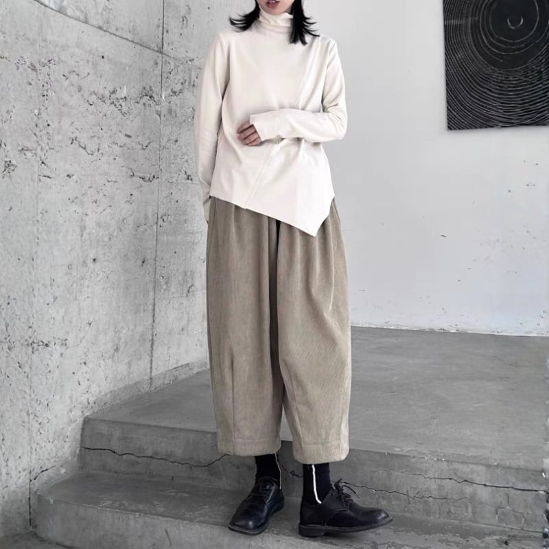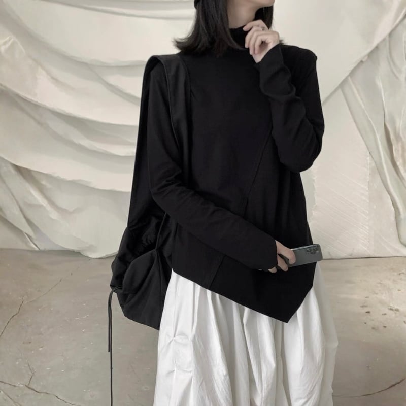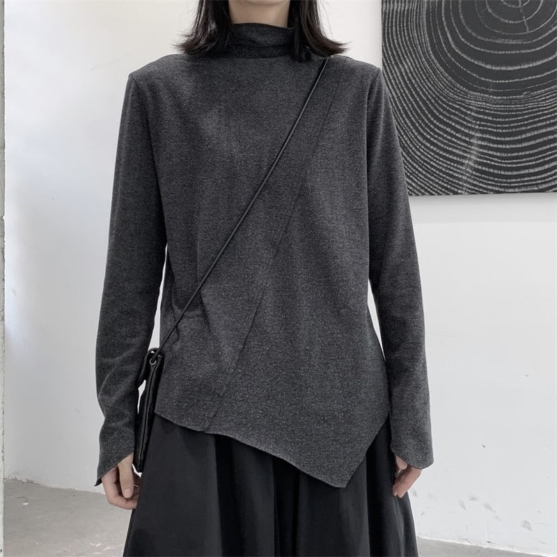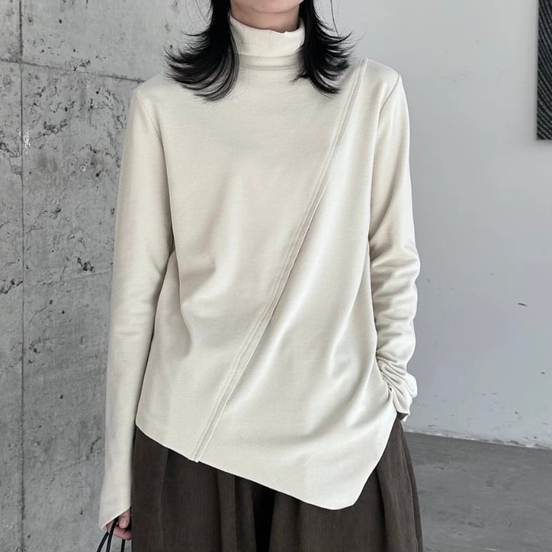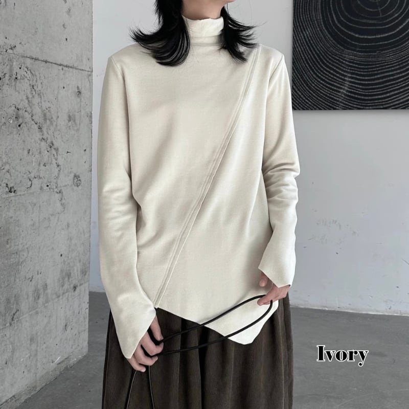 Asymmetric Seam Mock Neck Cut-Sewn H0309