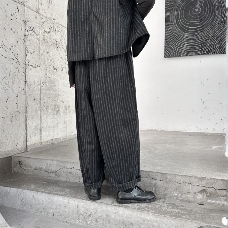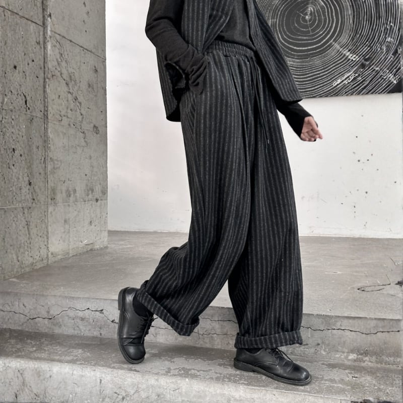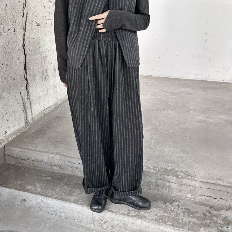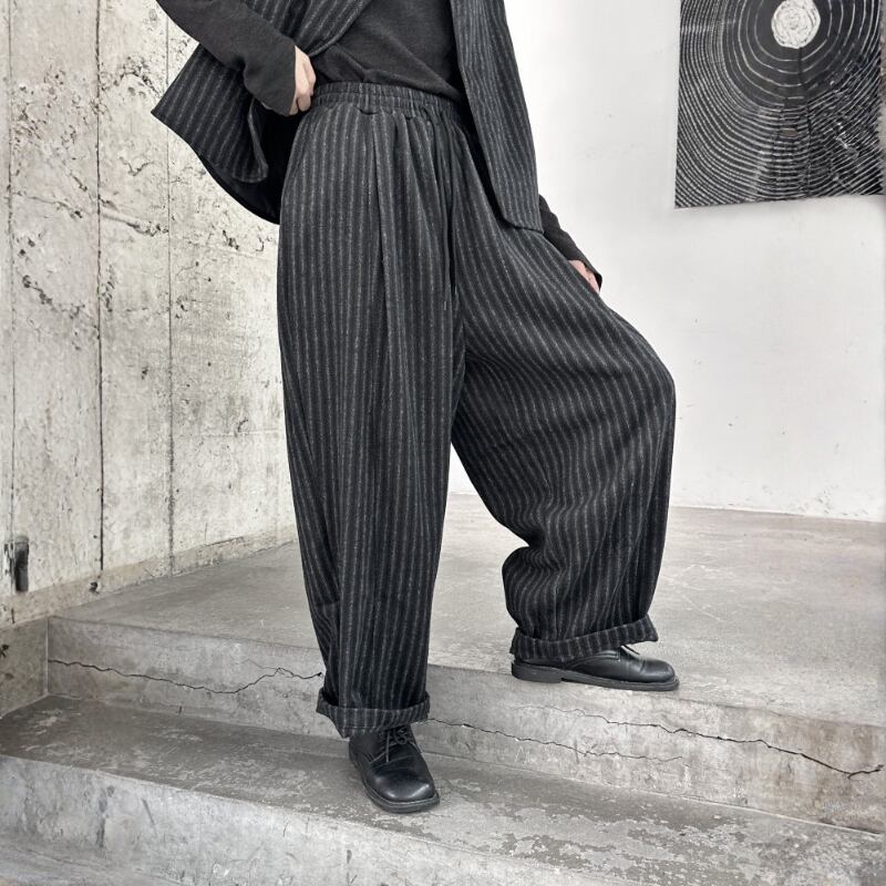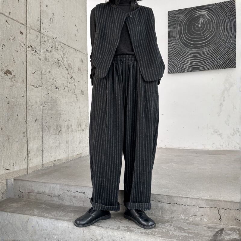 リラックスしたムードの中に、シャープな知性を宿したワイドボトムス。