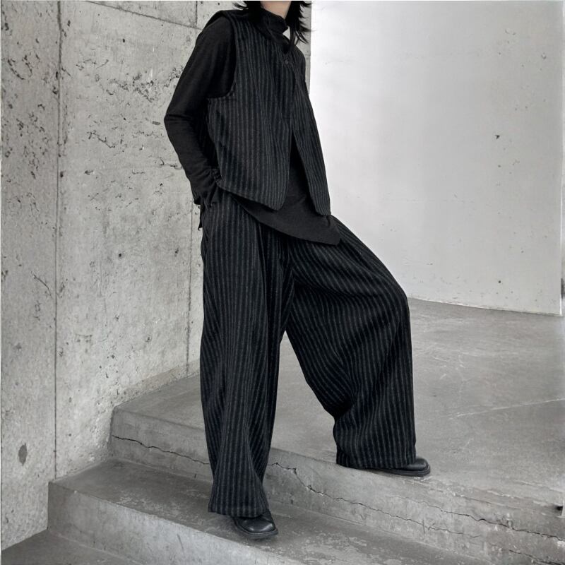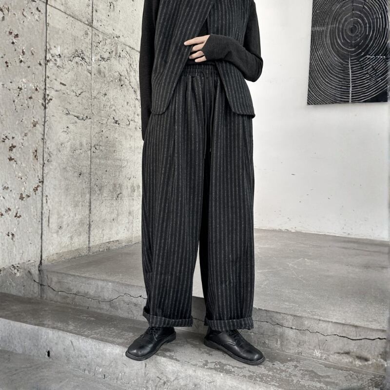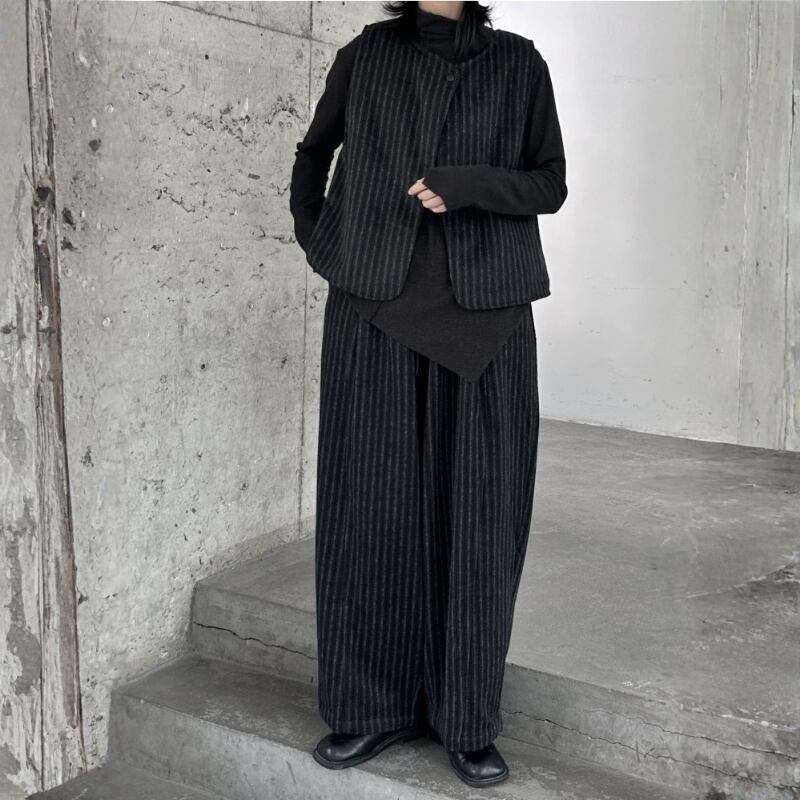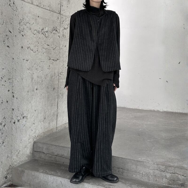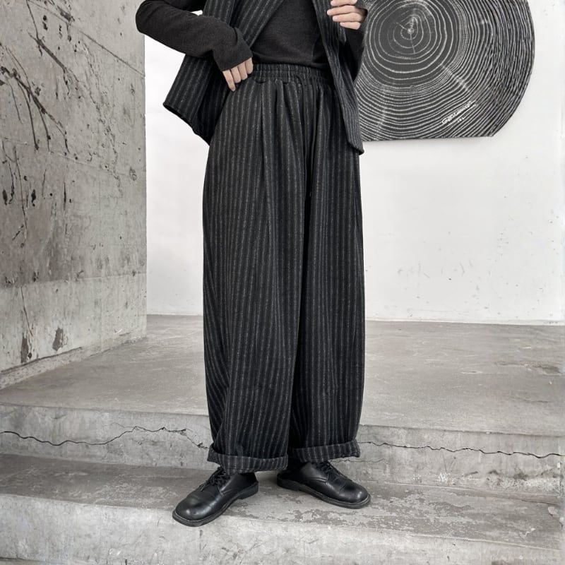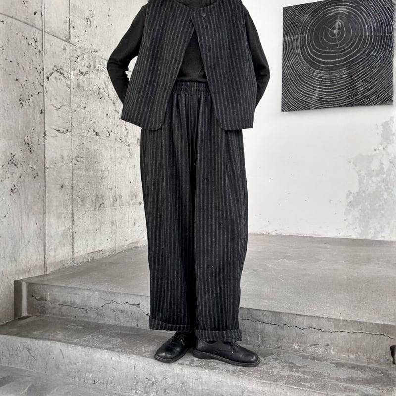 リラックスしたムードの中に、シャープな知性を宿したワイドボトムス。