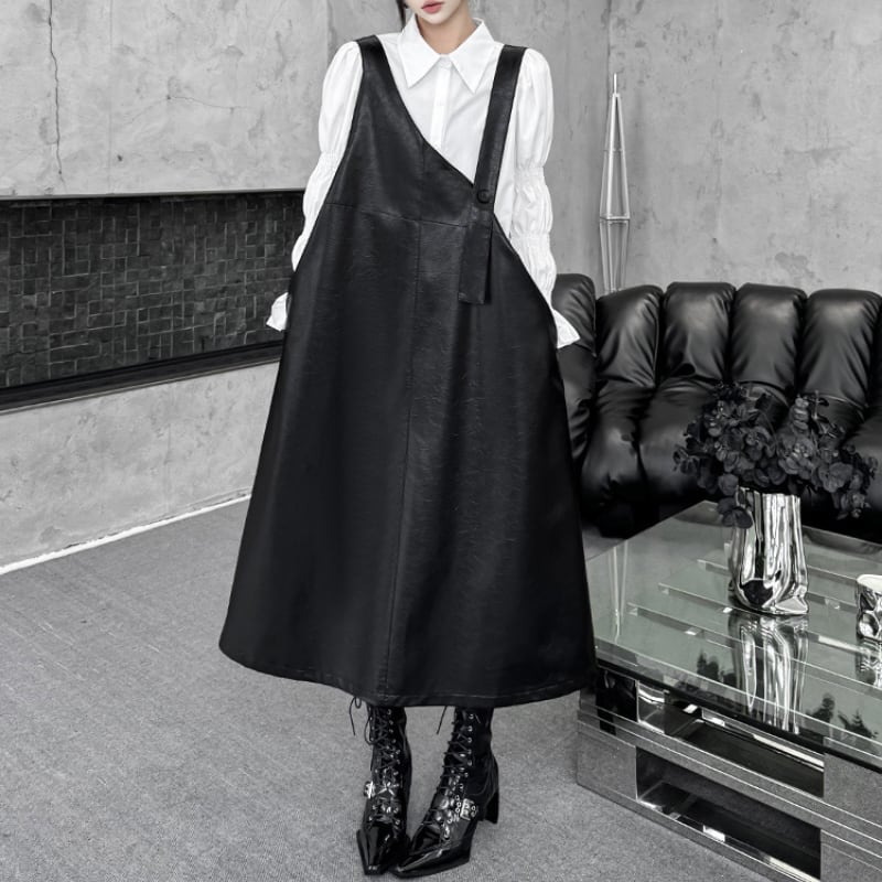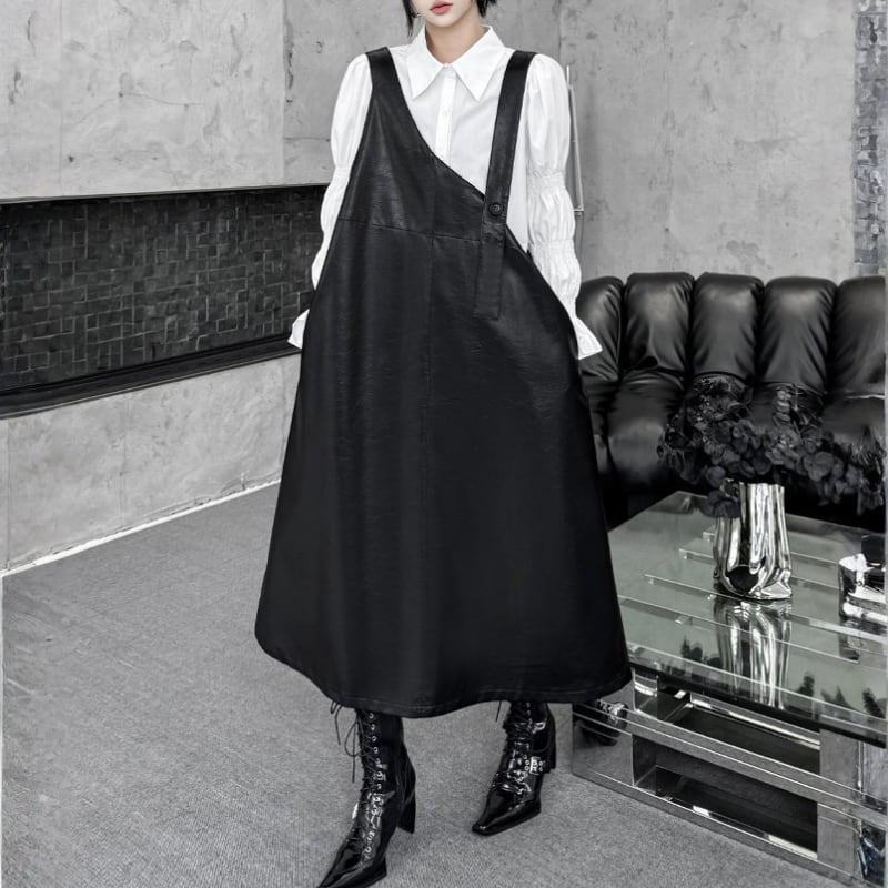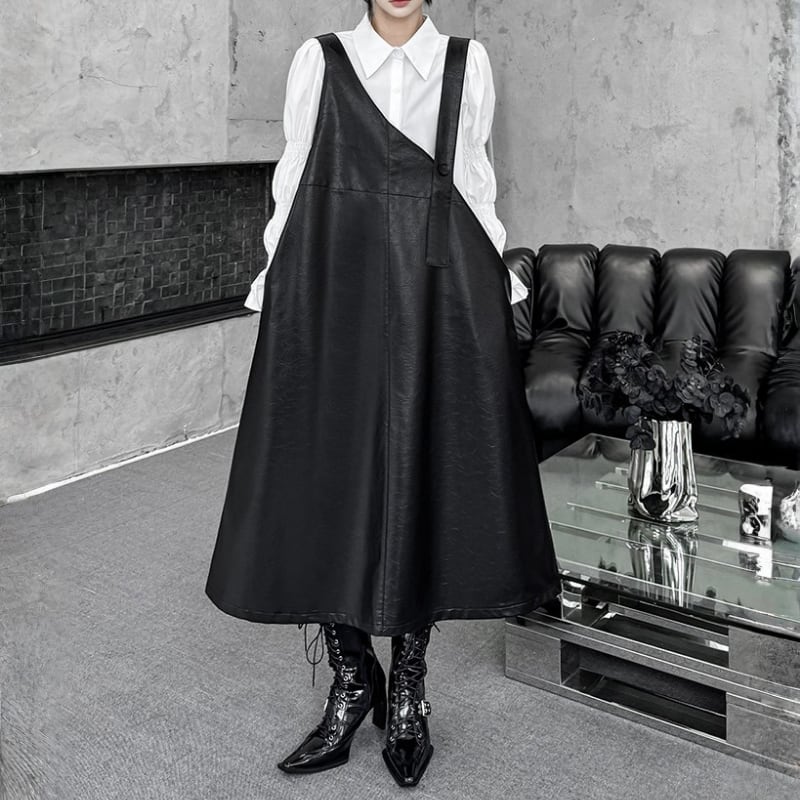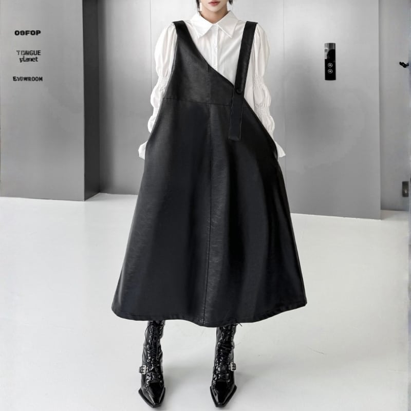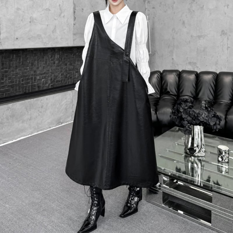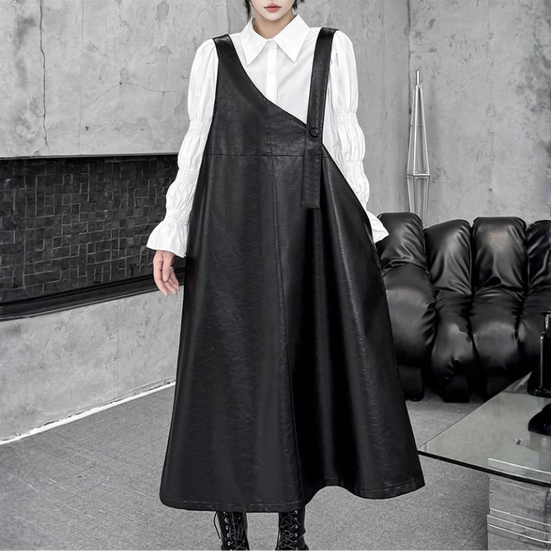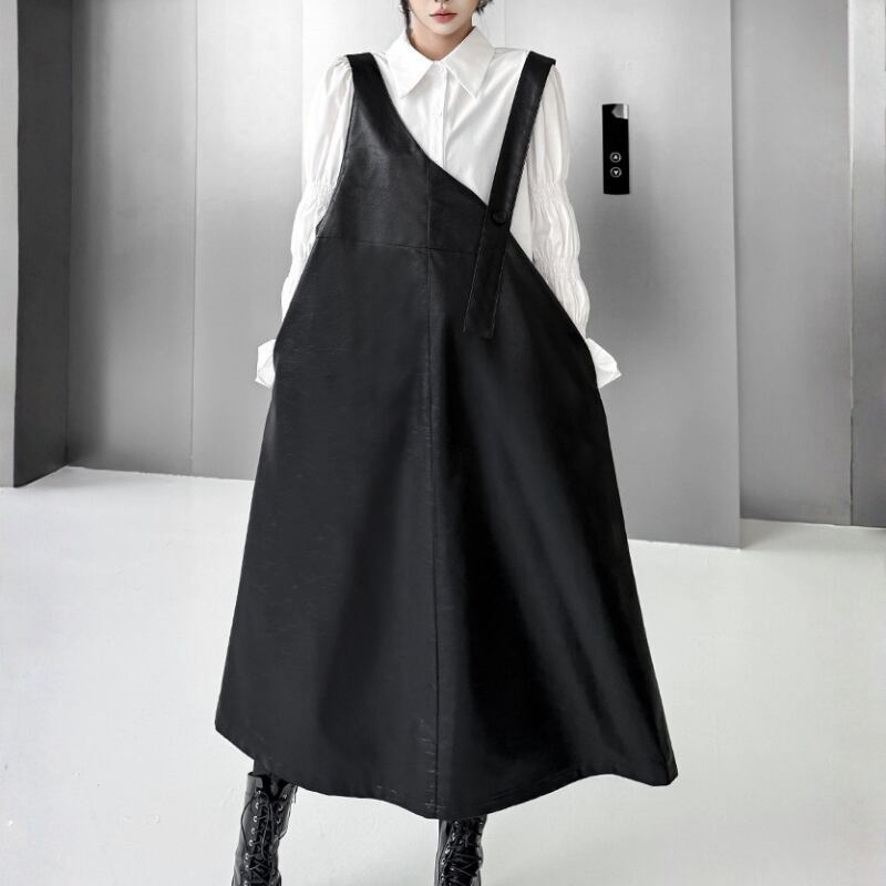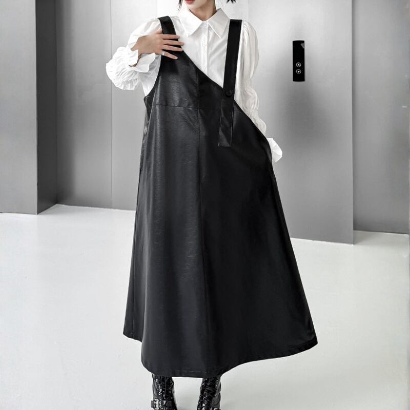 モードな構築性が際立つ、ロング丈のAラインスカート。