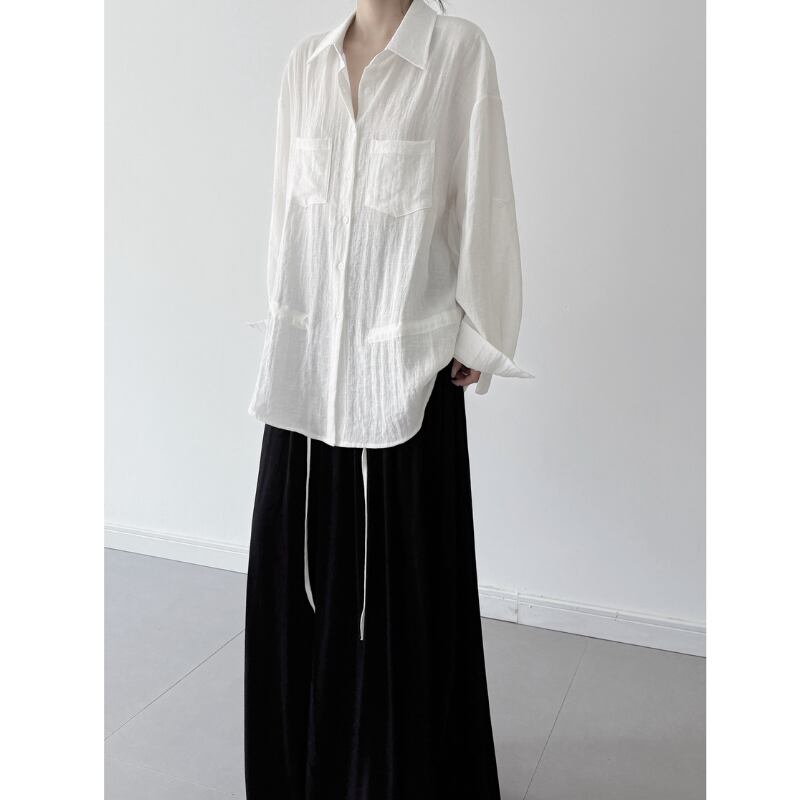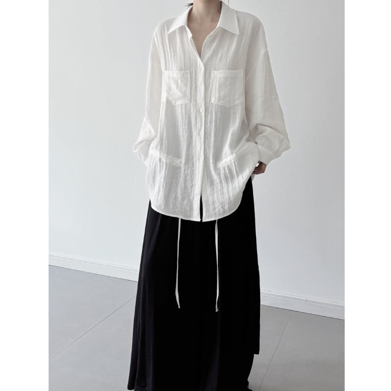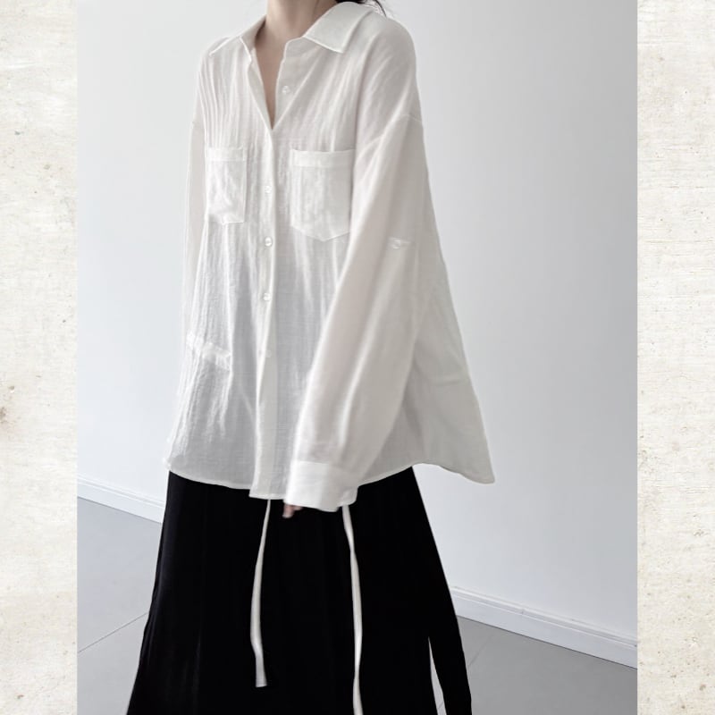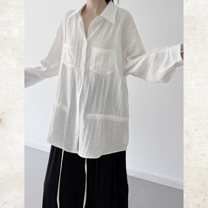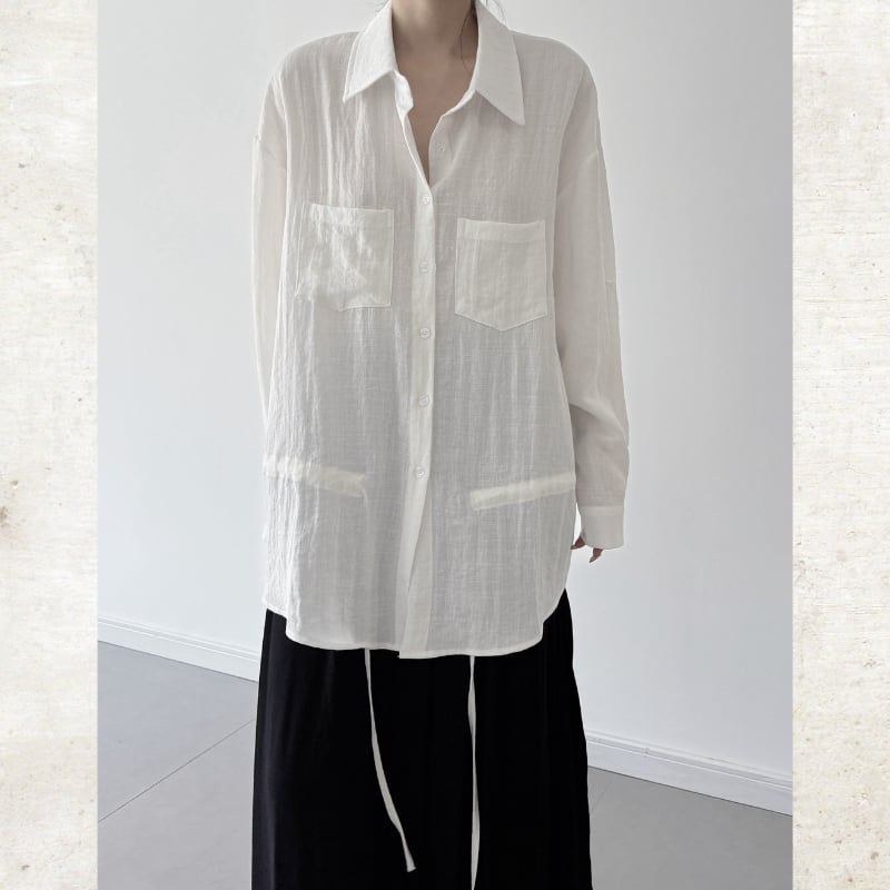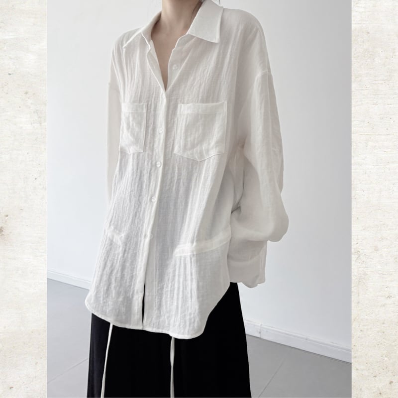 透け感のある軽やかな素材が、スタイルに洗練されたニュアンスを加えるオーバーサイズシャツ。