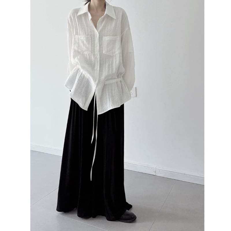 羽織りとしてもトップスとしても、モードな抜け感を演出するアイテムです。