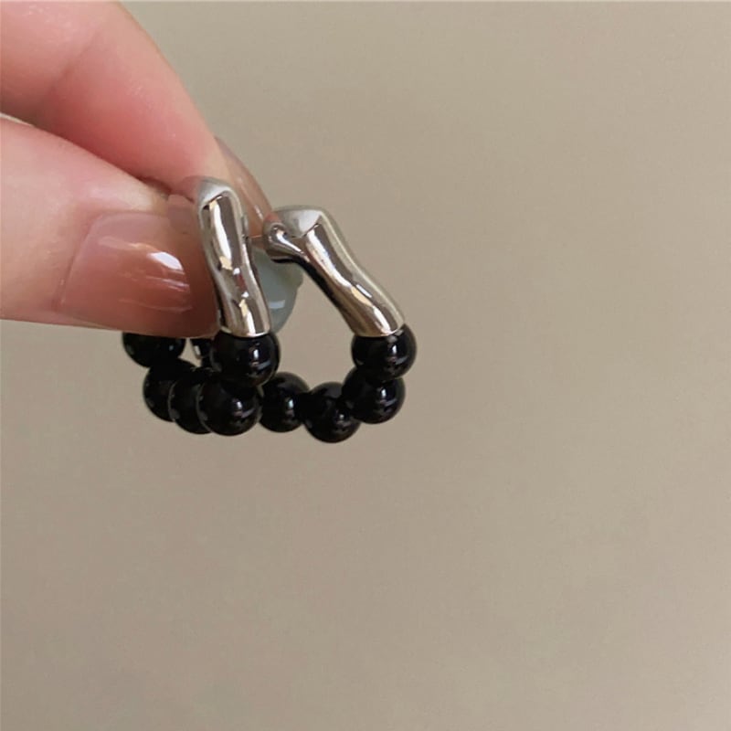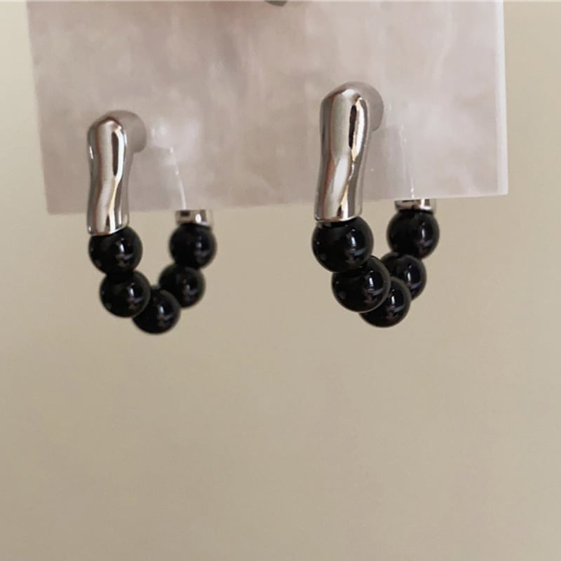 ブラックビーズ フープピアス