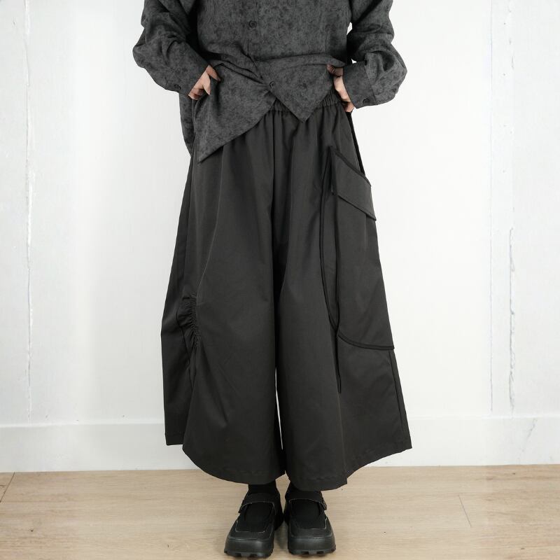 構築的なボリュームとテクニカルなディテールを融合させた、モードなワイドパンツ。