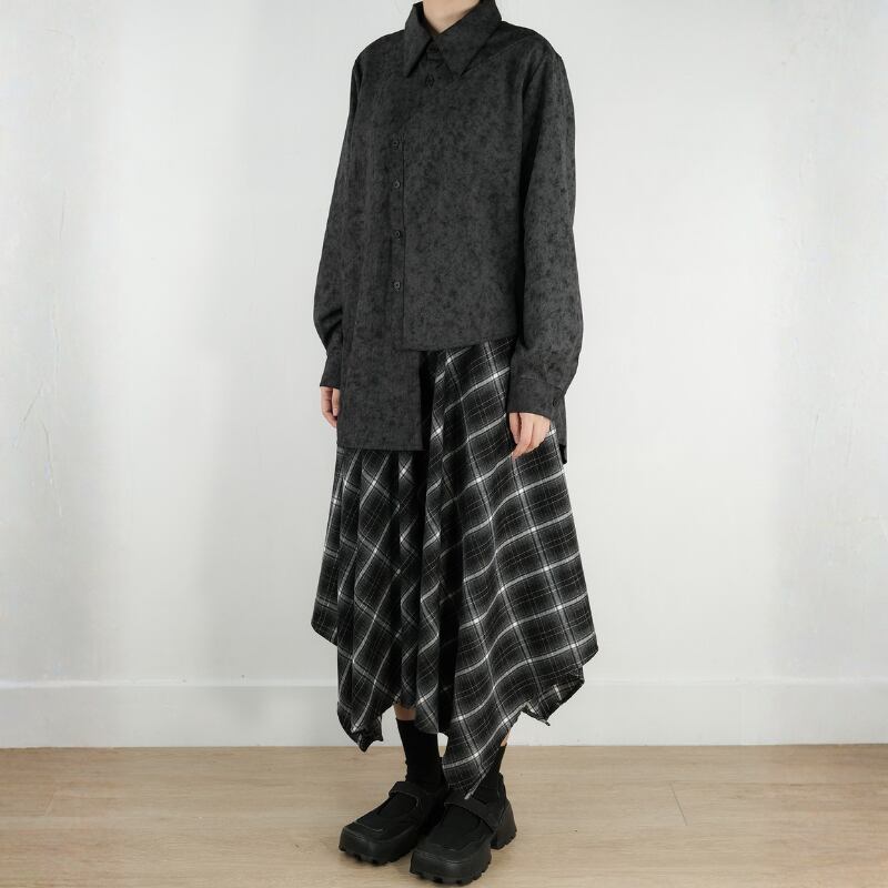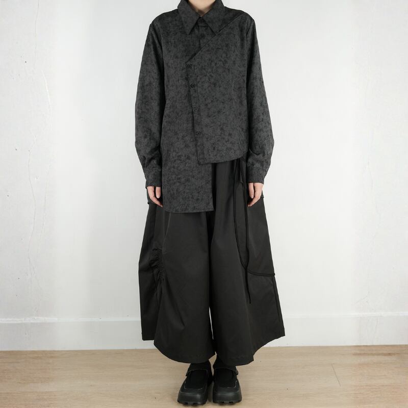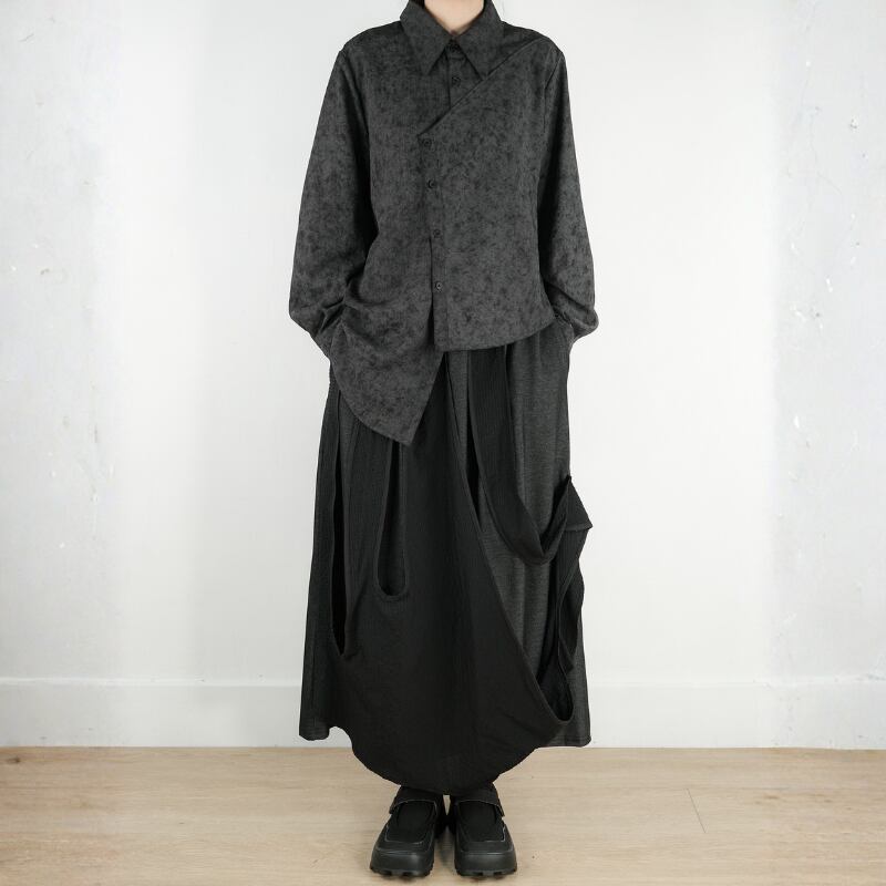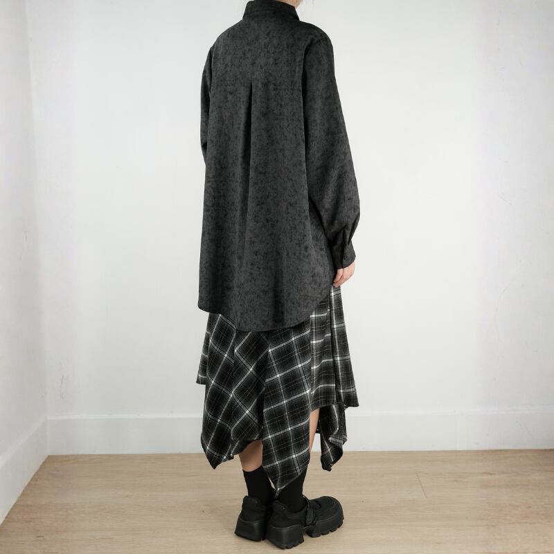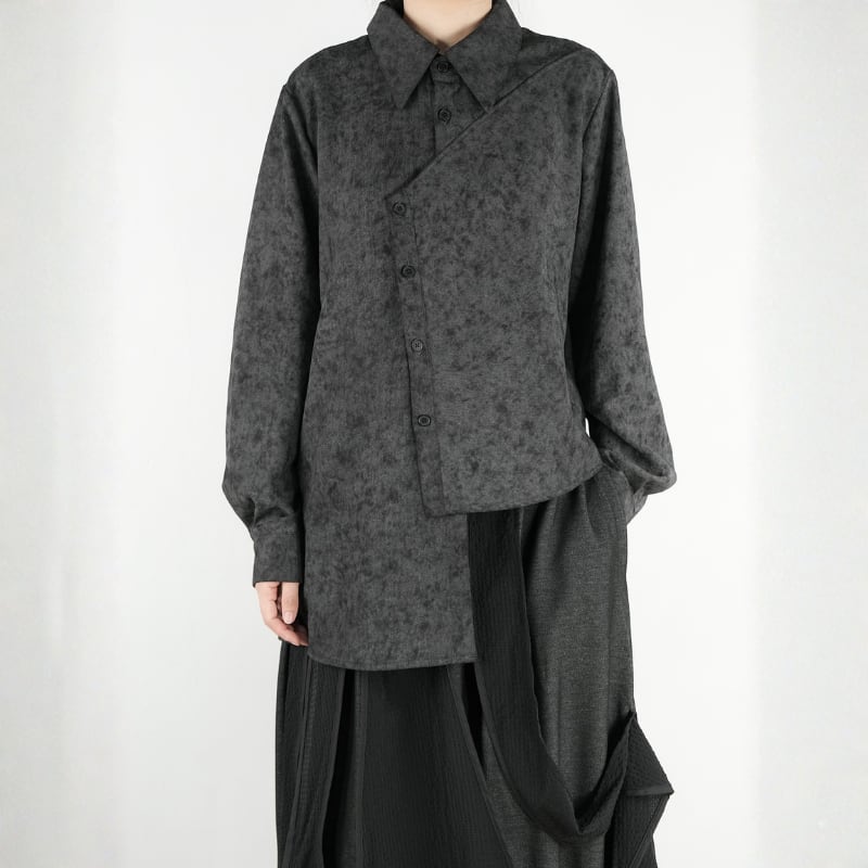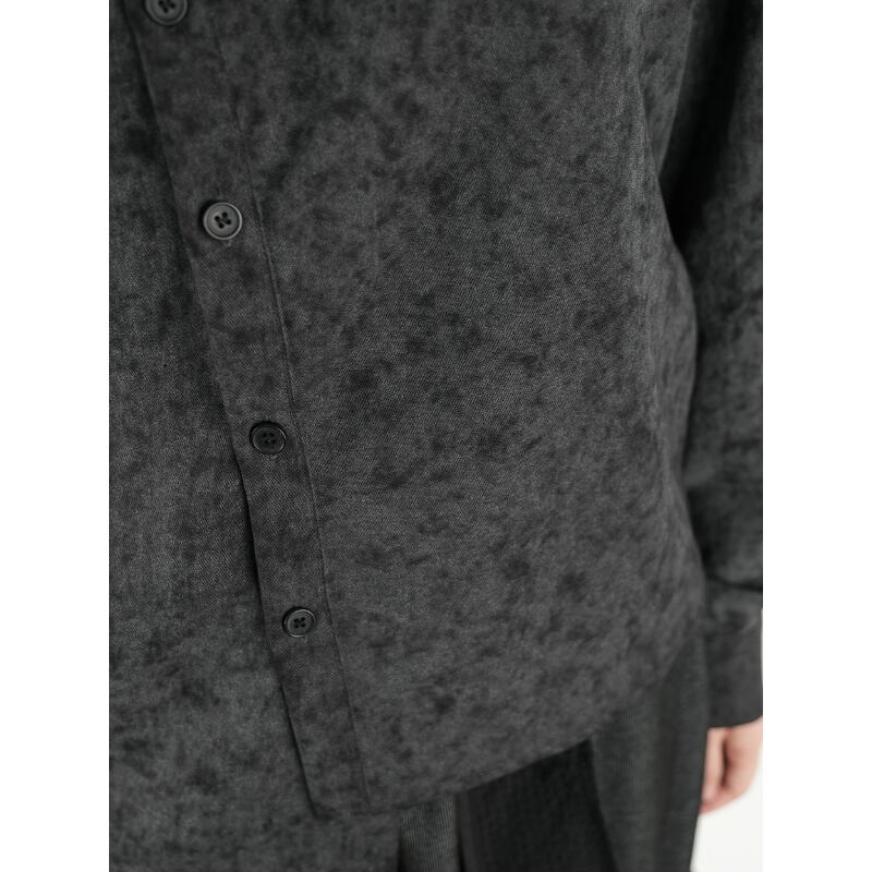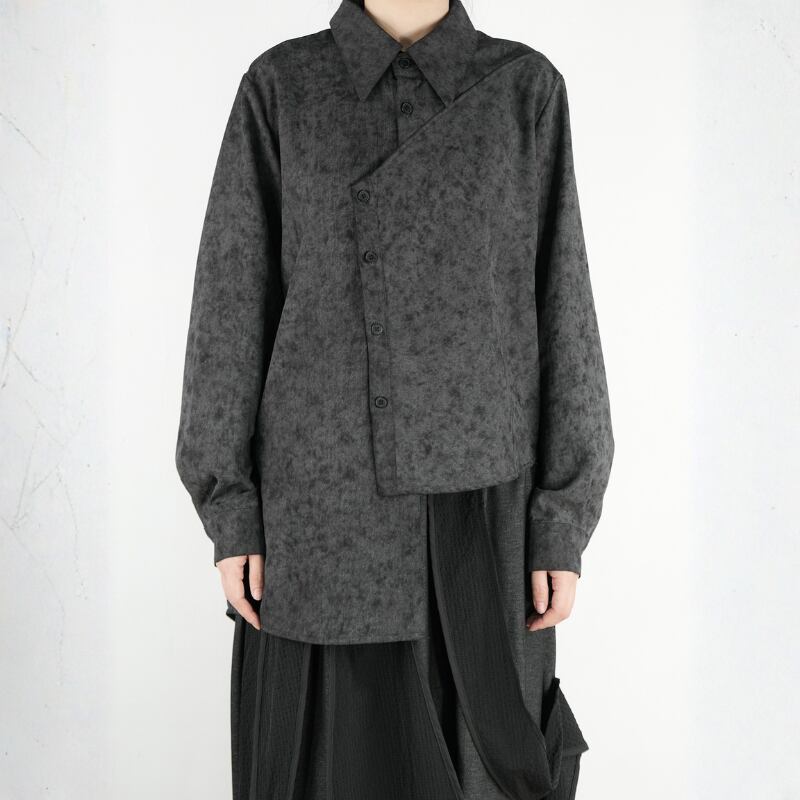 モノトーンのタイダイ柄に、モードな構築性を融合させたオーバーサイズシャツ。