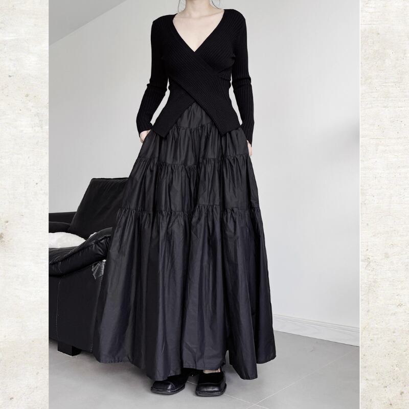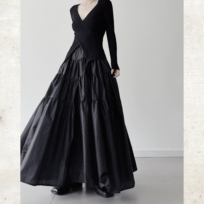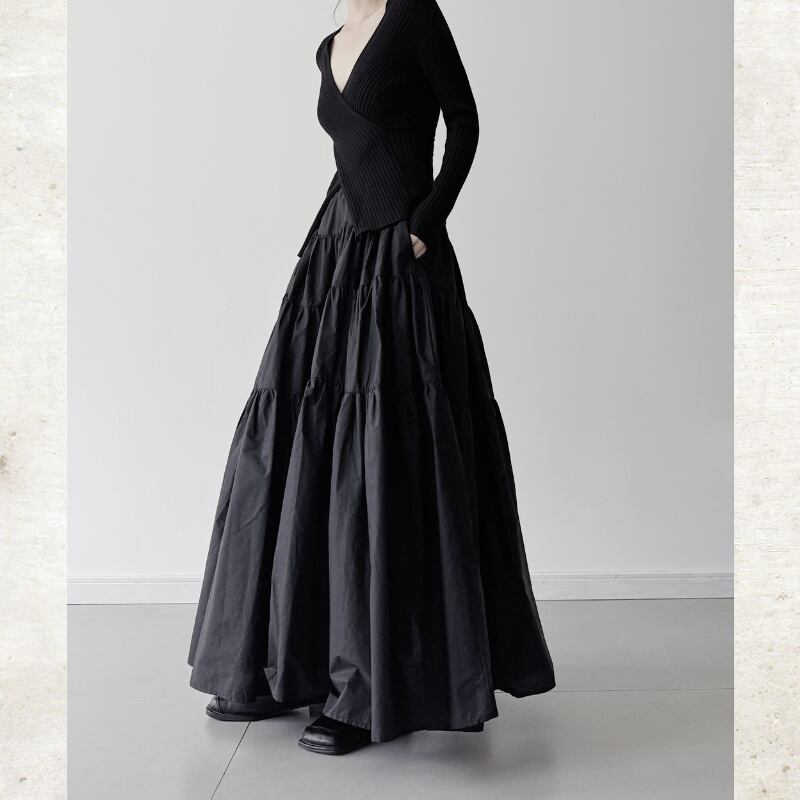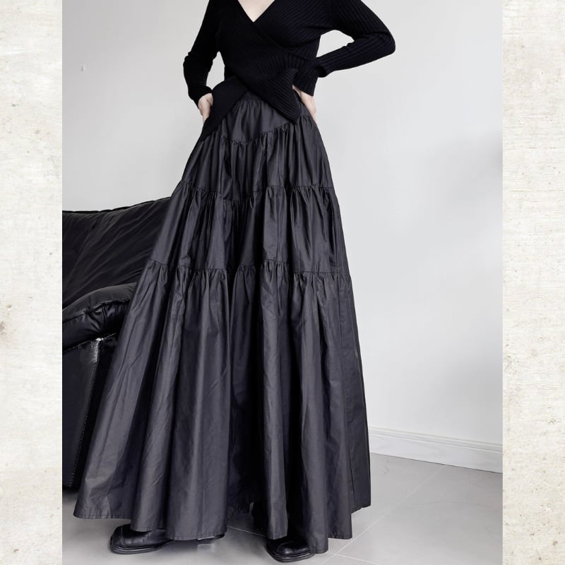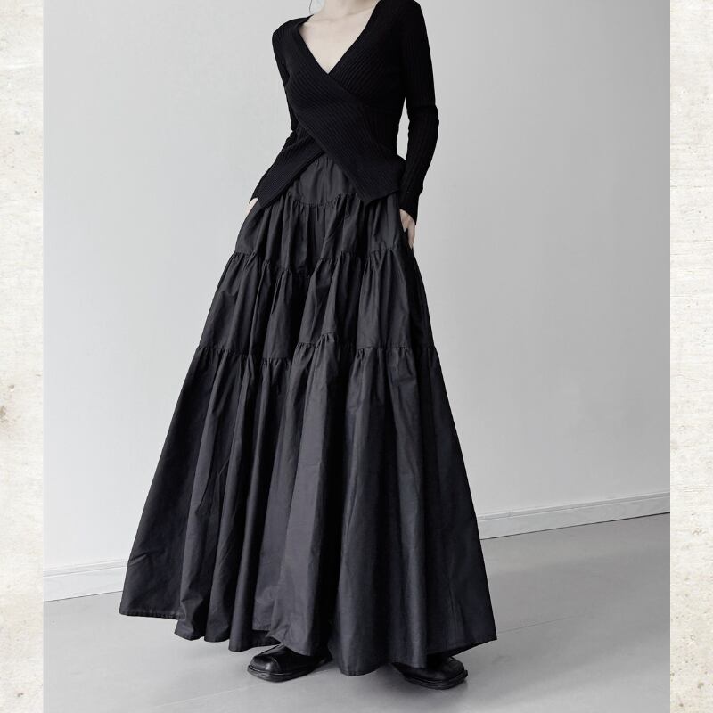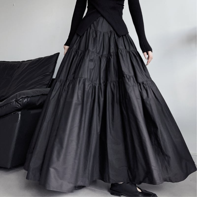 ボリュームティアード マキシ丈スカート