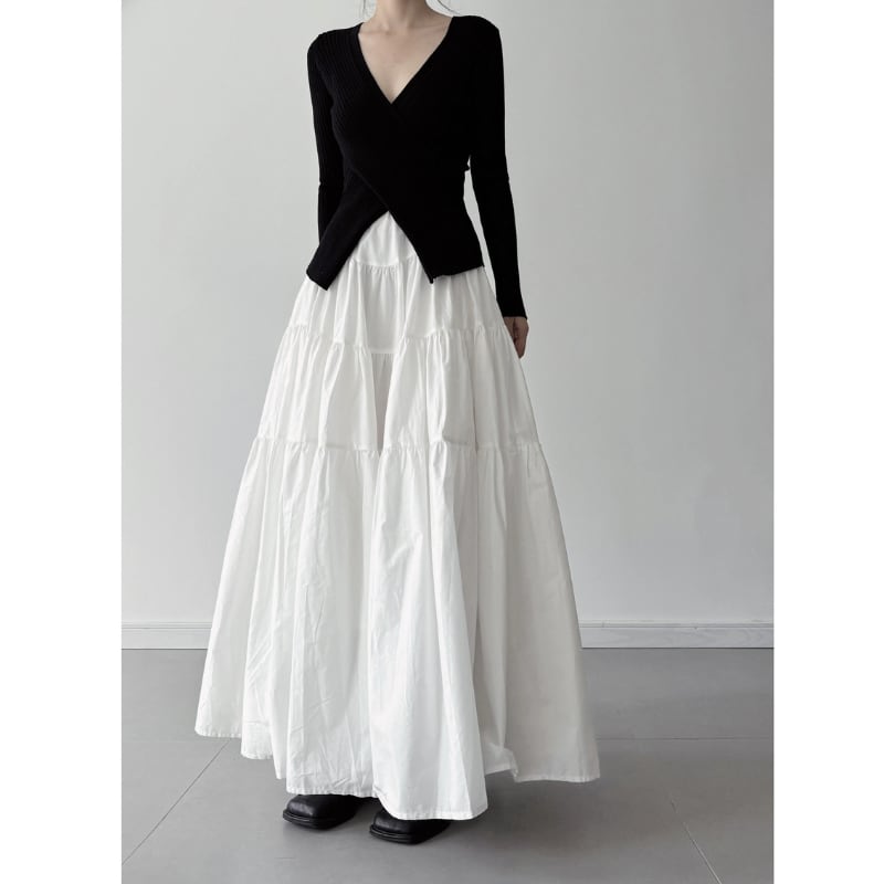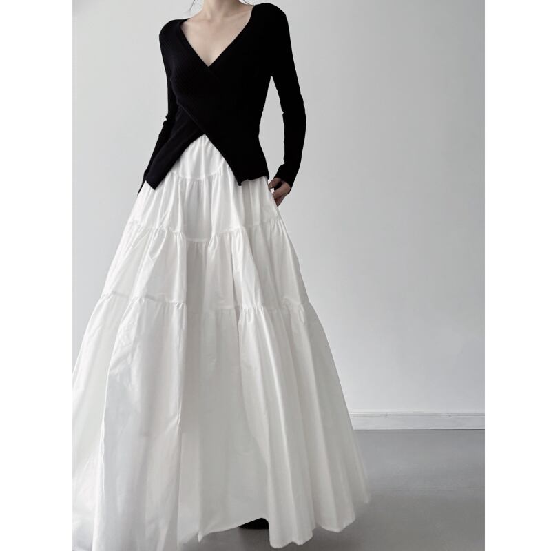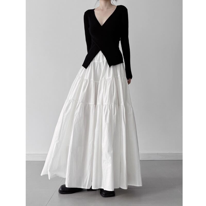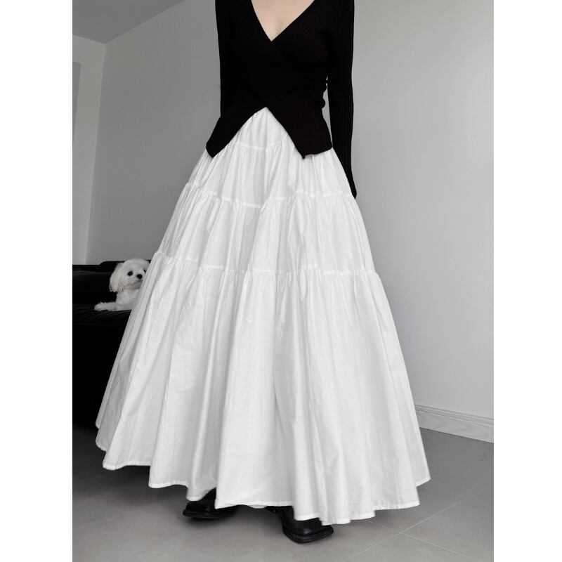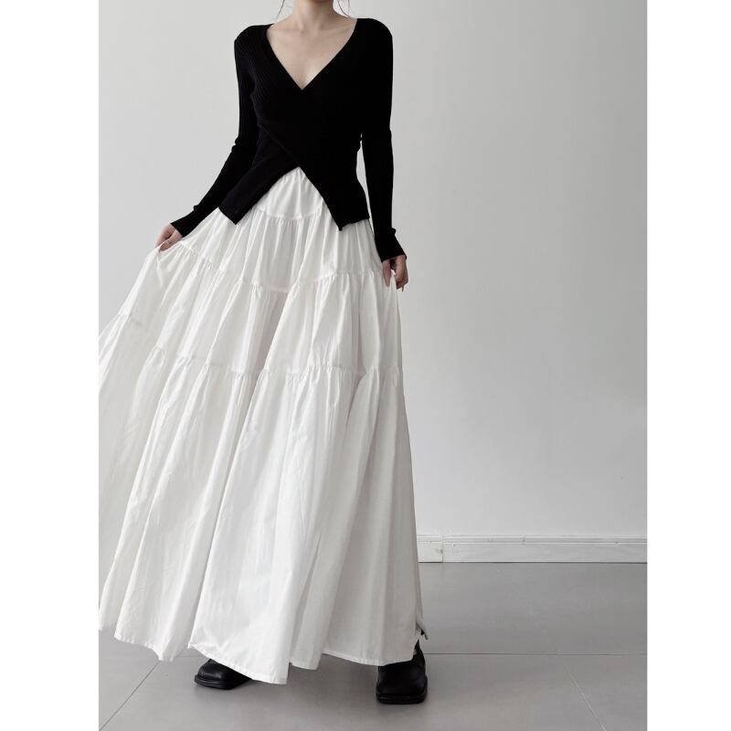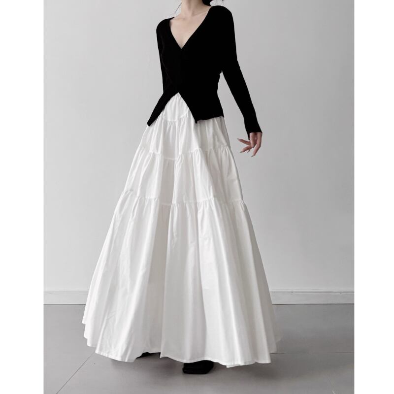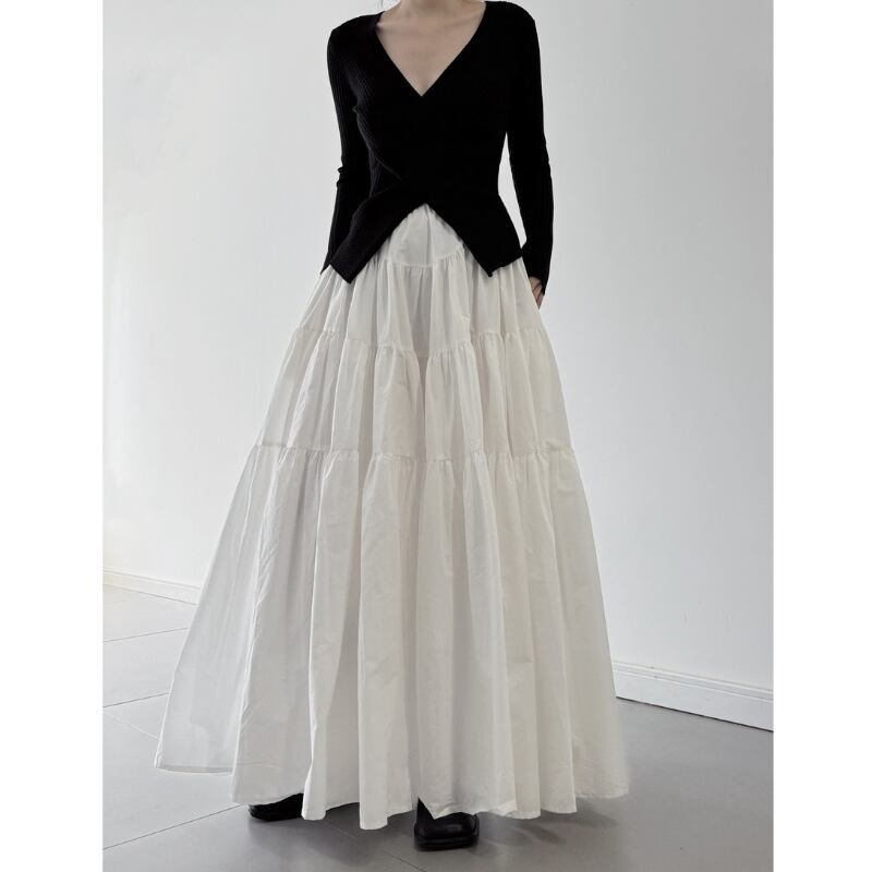 ボリュームティアード マキシ丈スカート