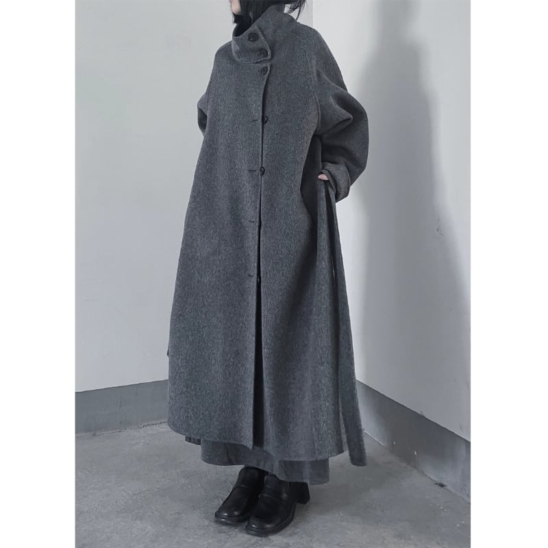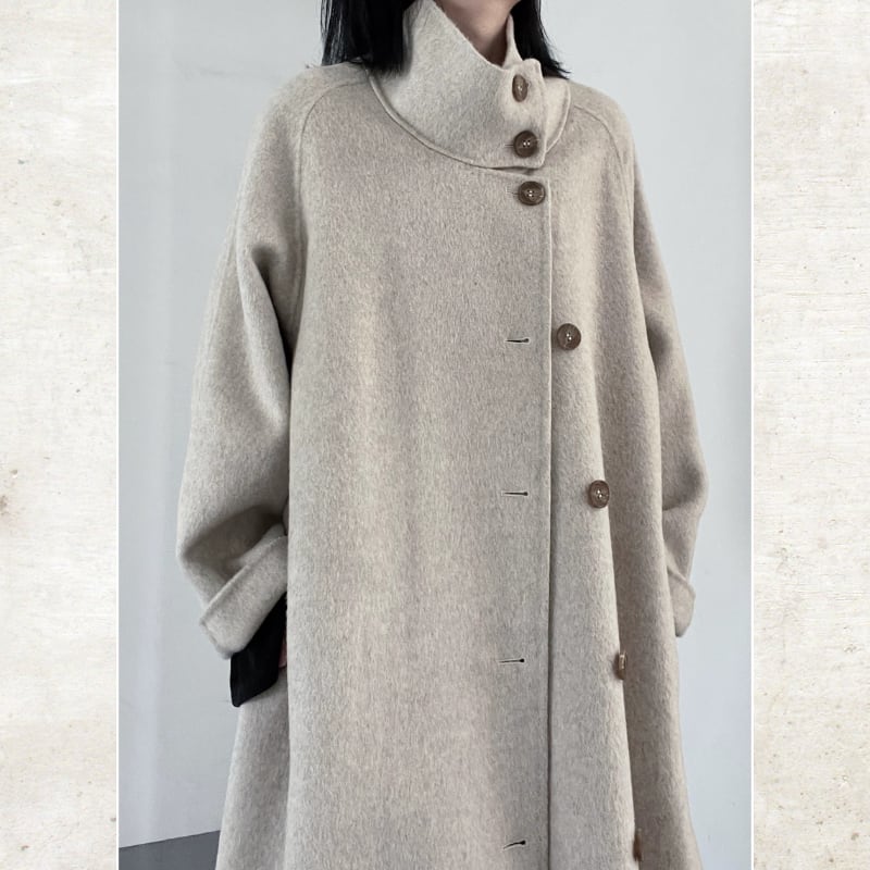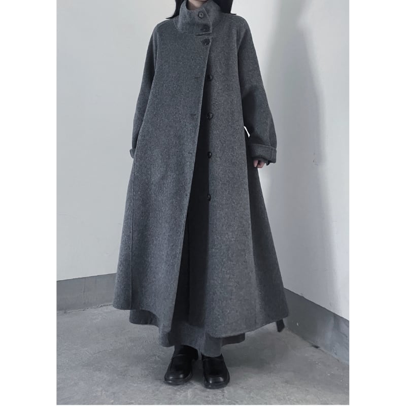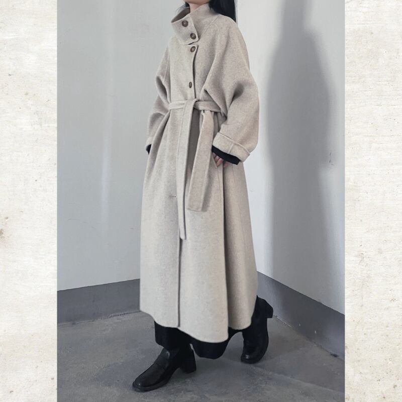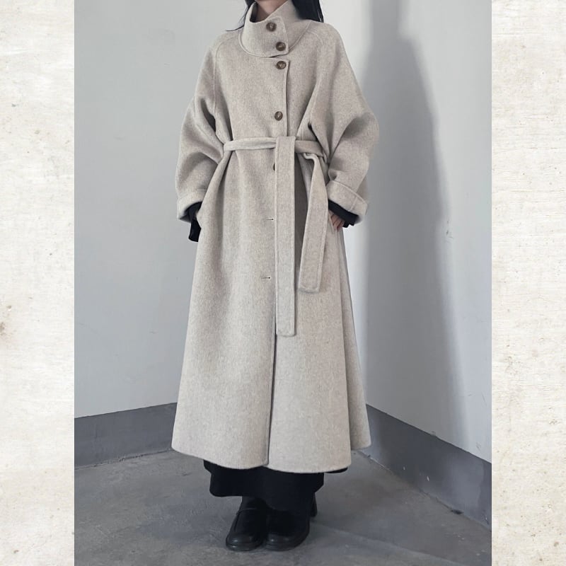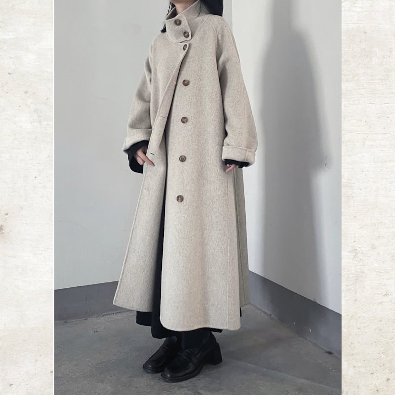 凛としたスタンドカラーがスタイルを洗練させるロングコート。