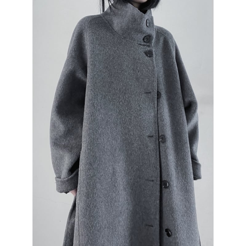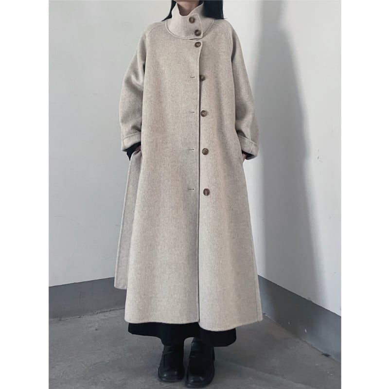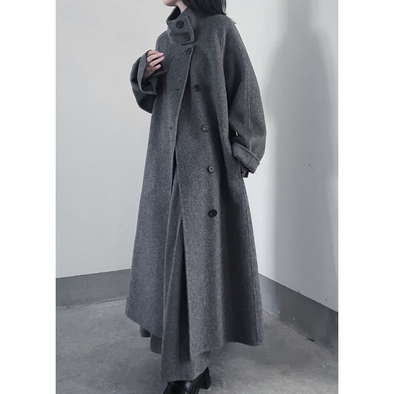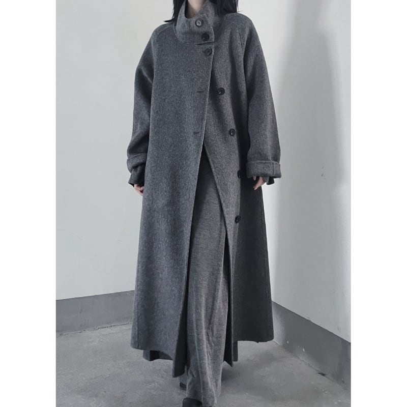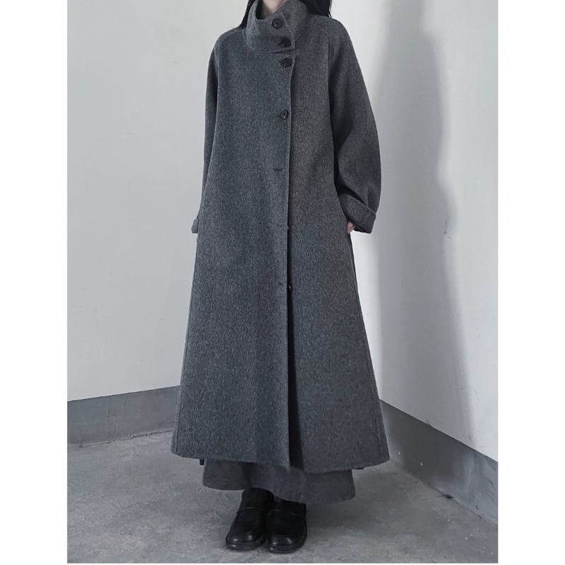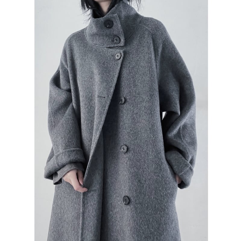 凛としたスタンドカラーがスタイルを洗練させるロングコート。