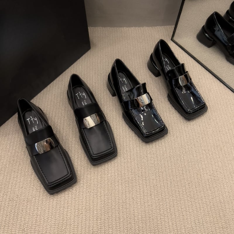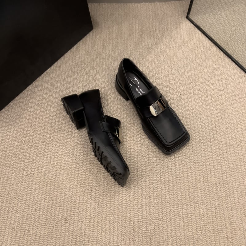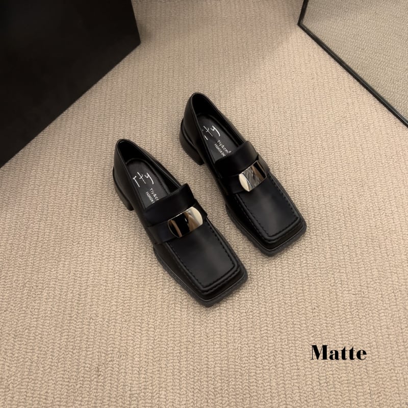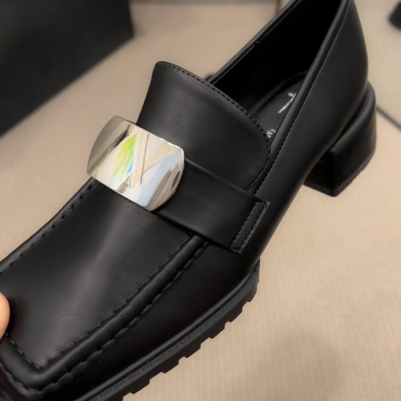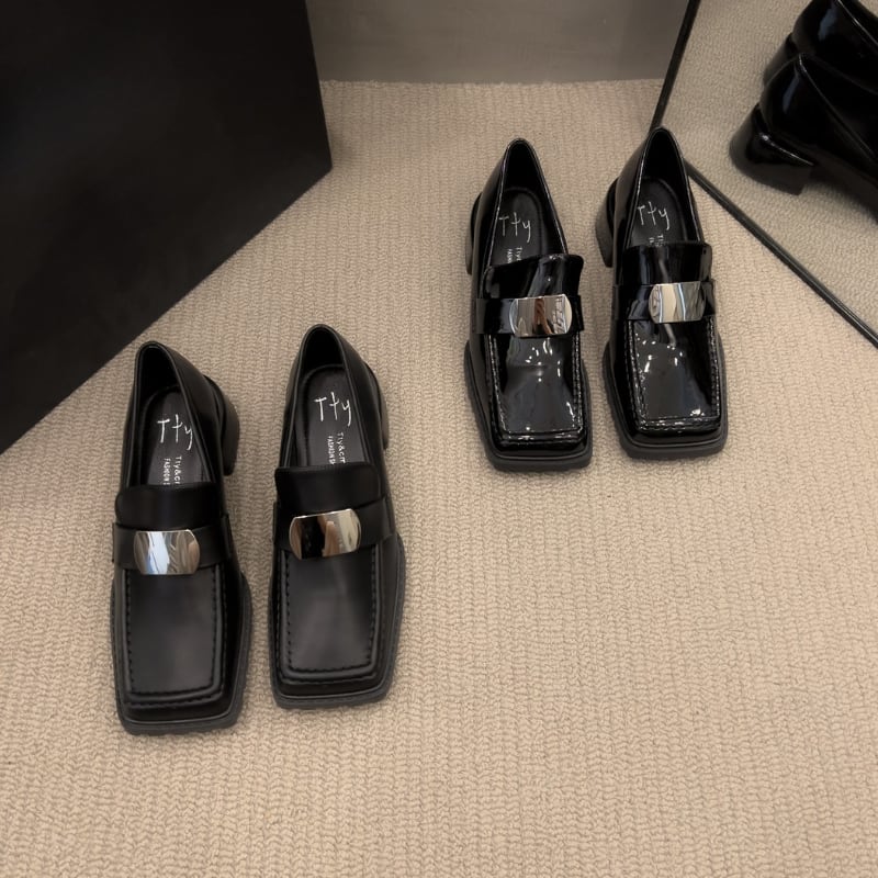 スクエアトゥ メタルパーツ チャンキーローファー
