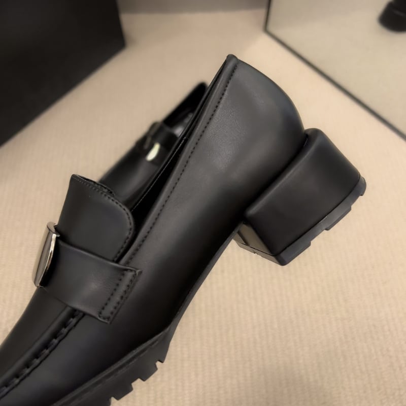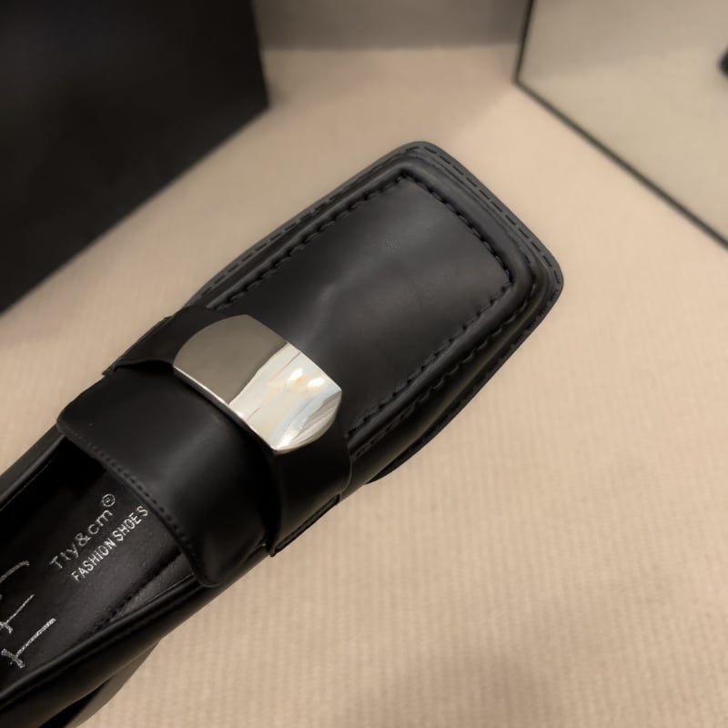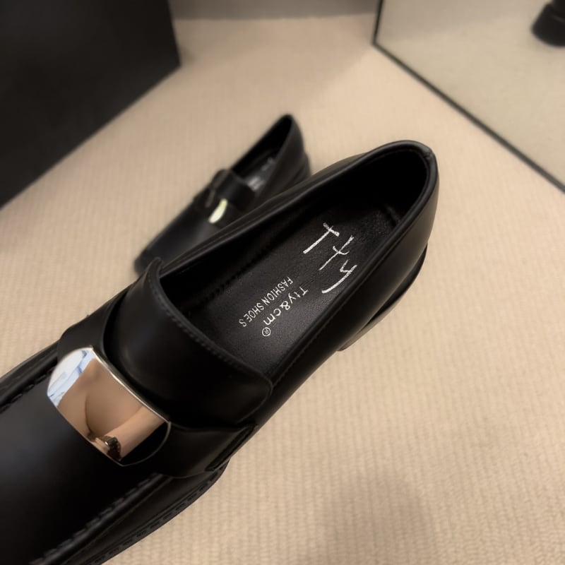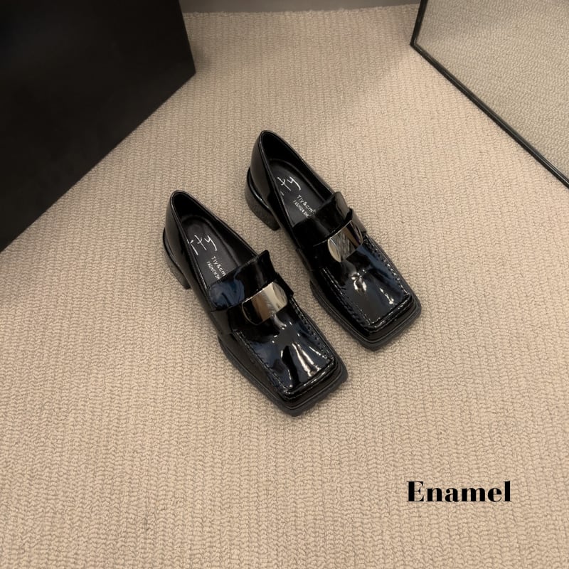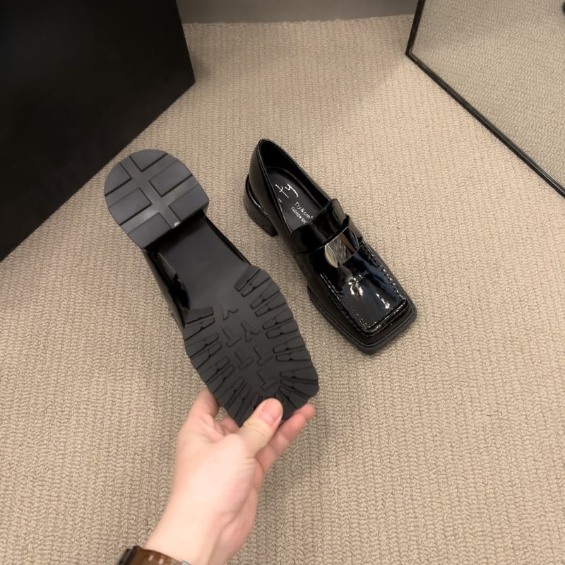 スクエアトゥ メタルパーツ チャンキーローファー