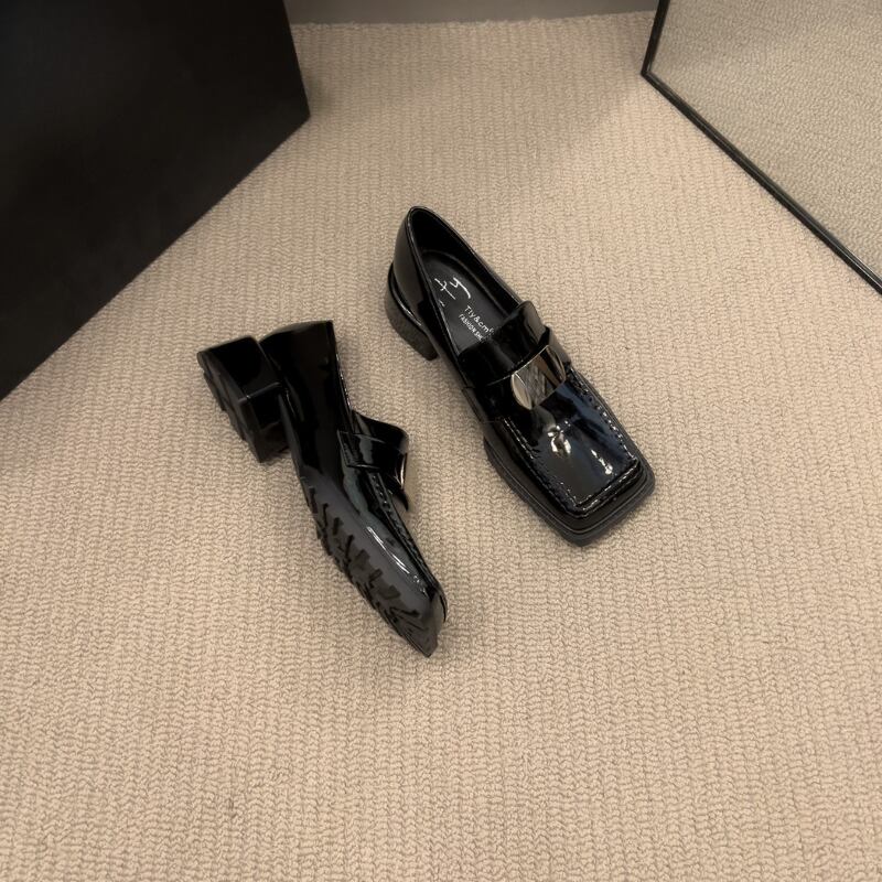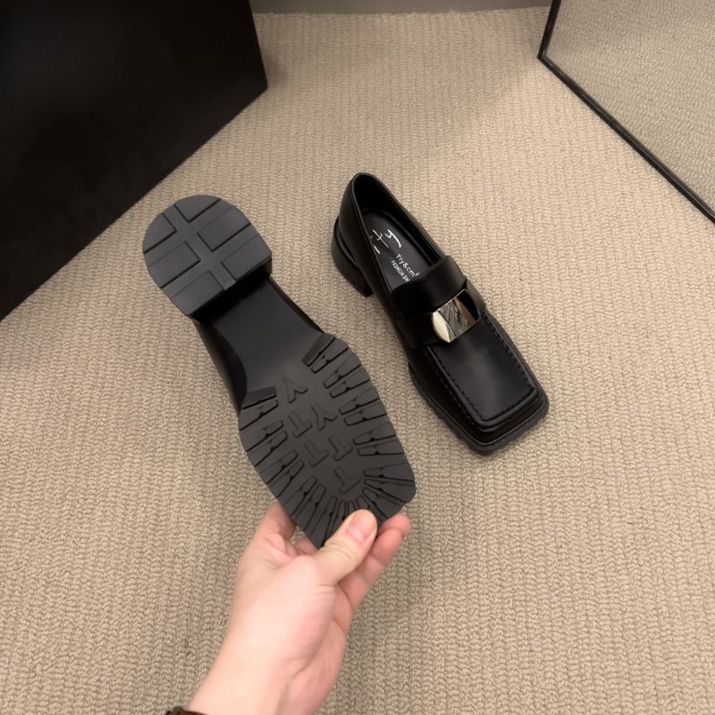Square Toe Metal Part Chunky Loafers H0336