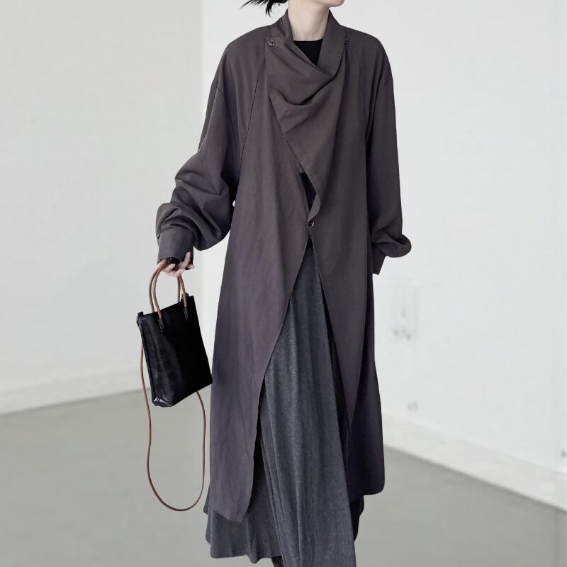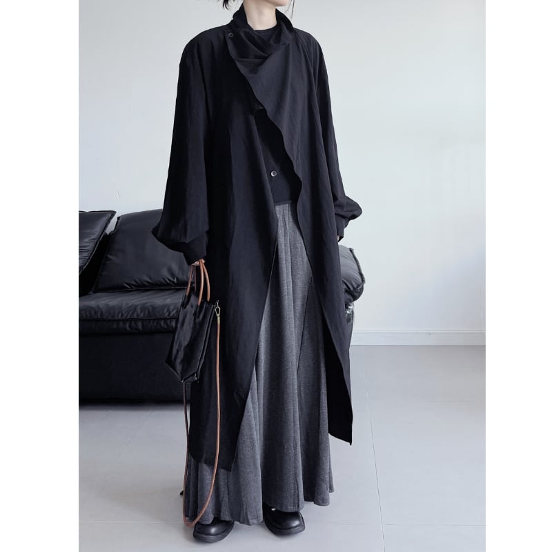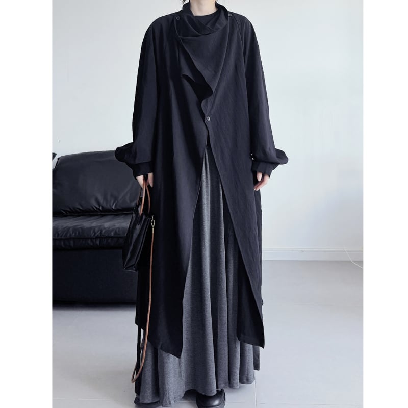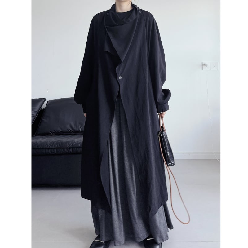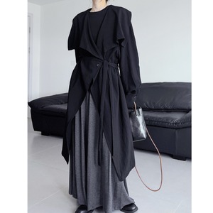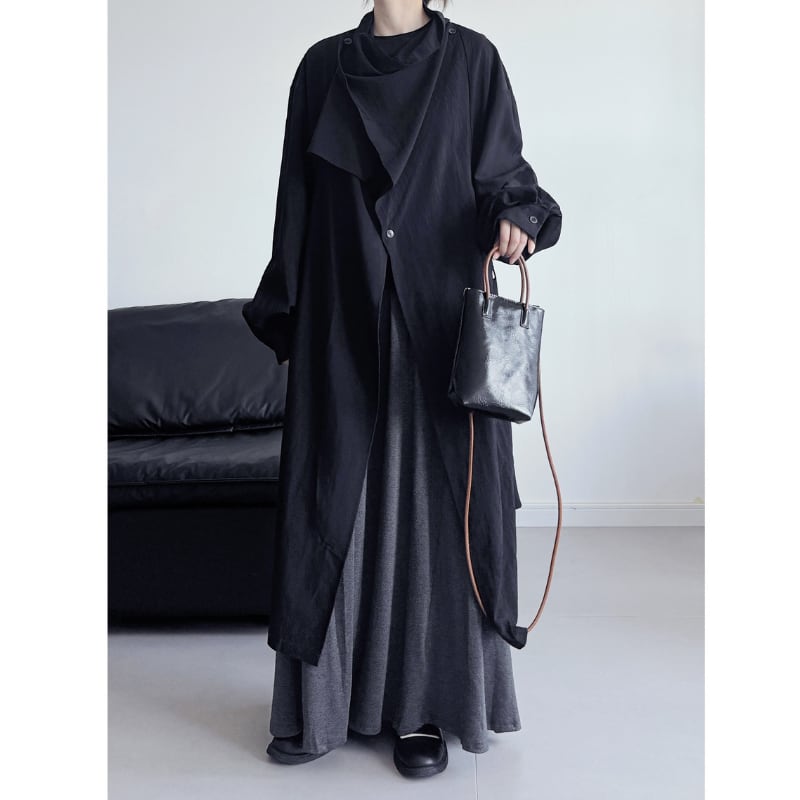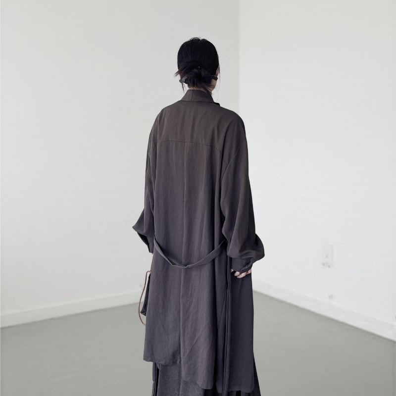 共布ベルトでシルエットを調節すれば、オーバーサイズながらも洗練されたムードを演出できます。
