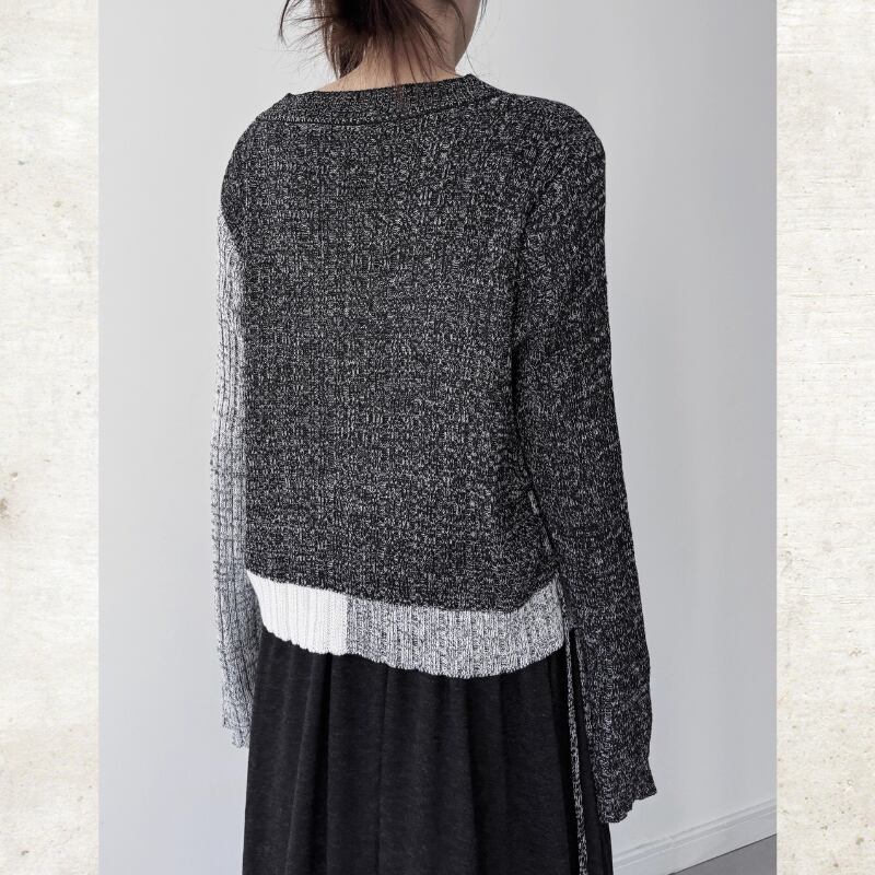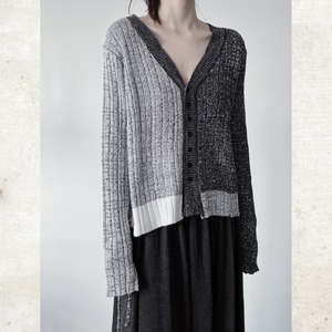 バイカラーミックスニットVネックカーディガン