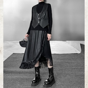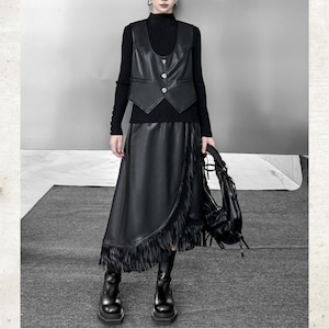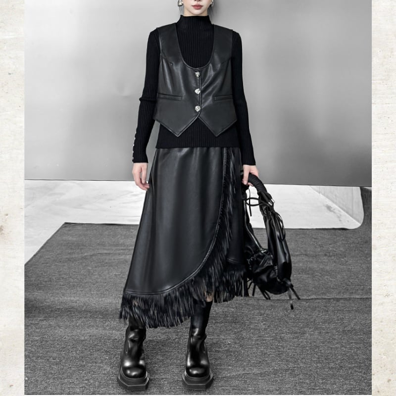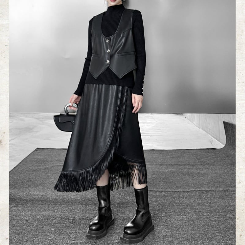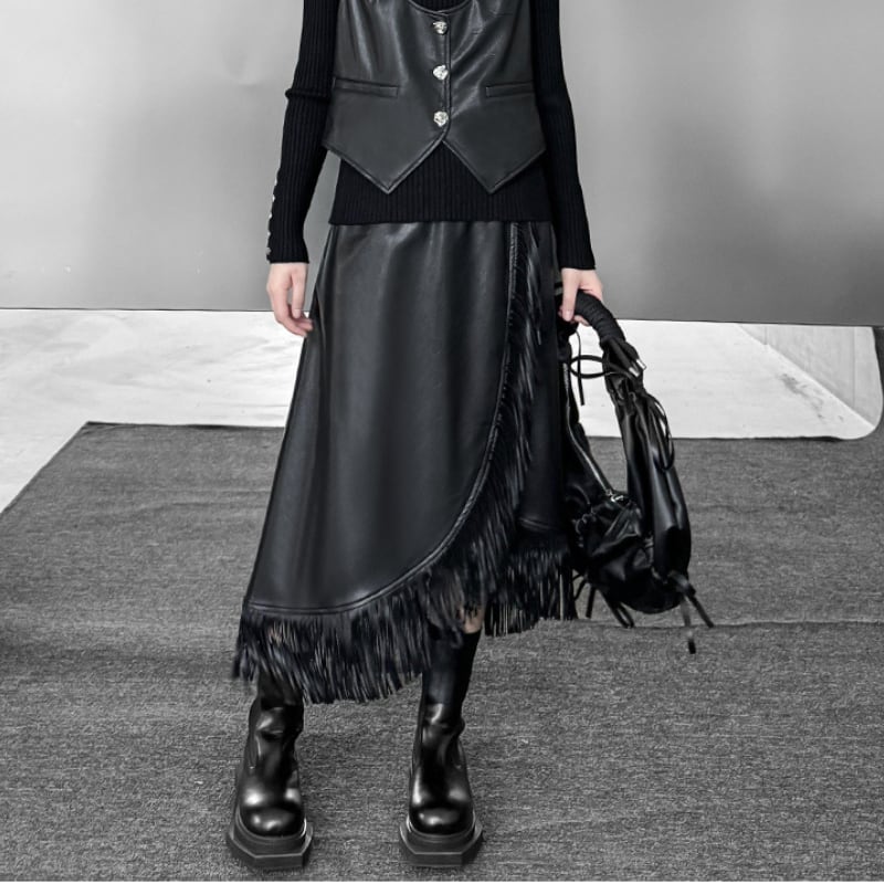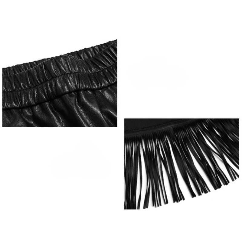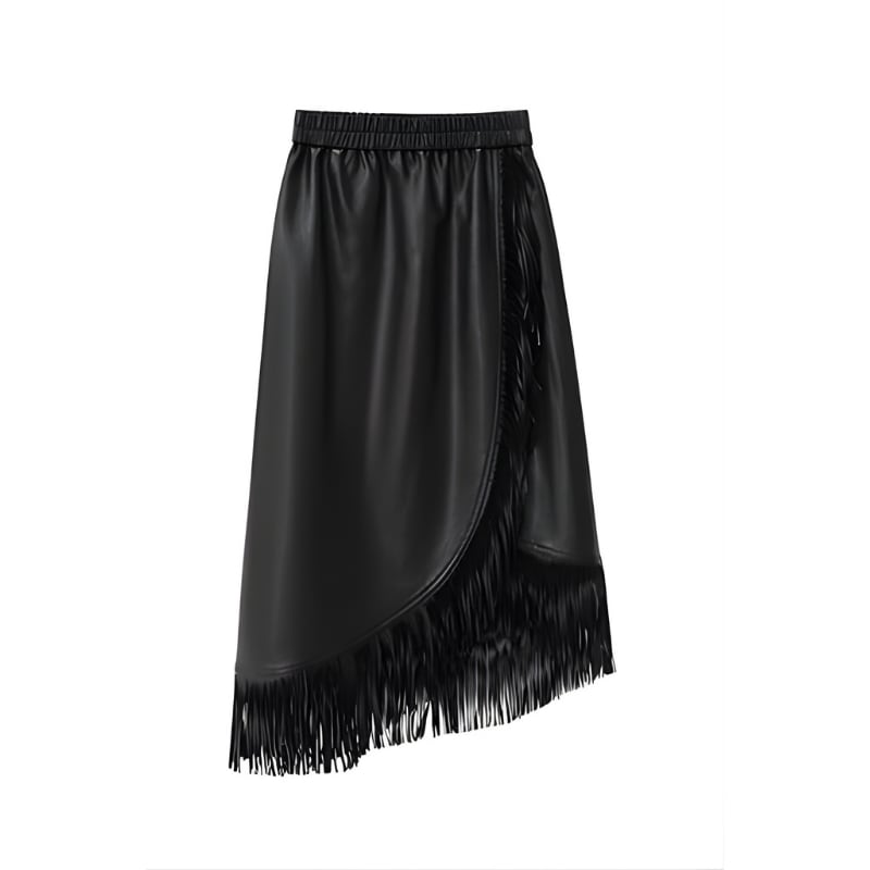 Eco-Leather Fringe Asymmetrical Skirt H0373