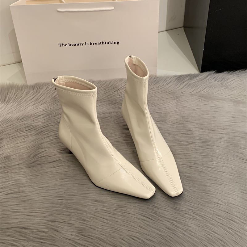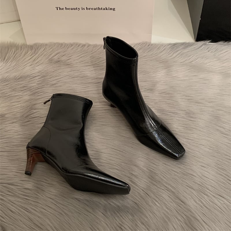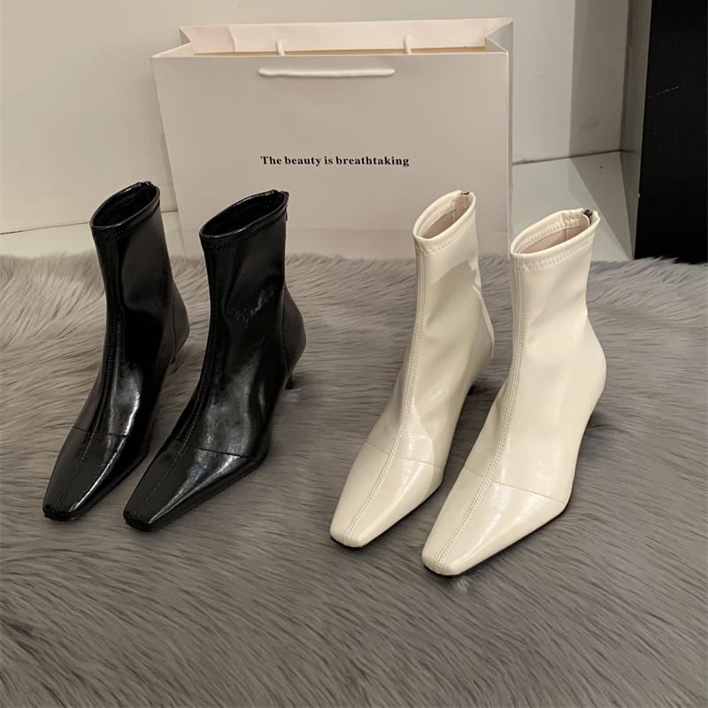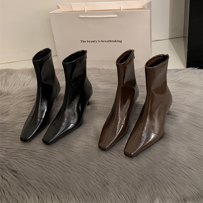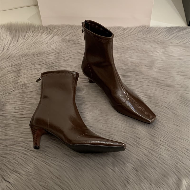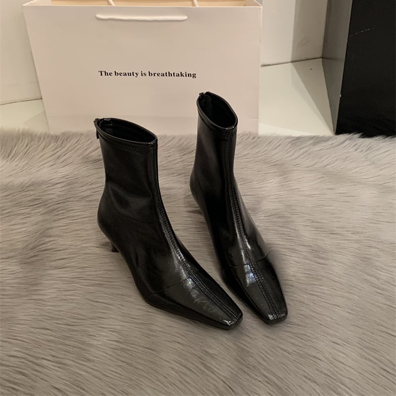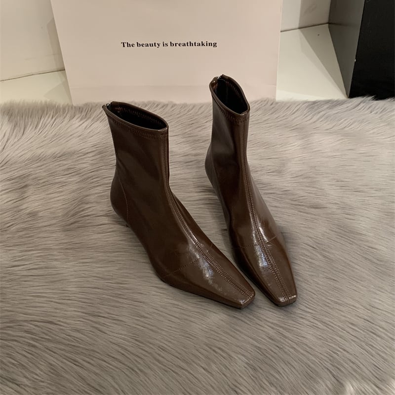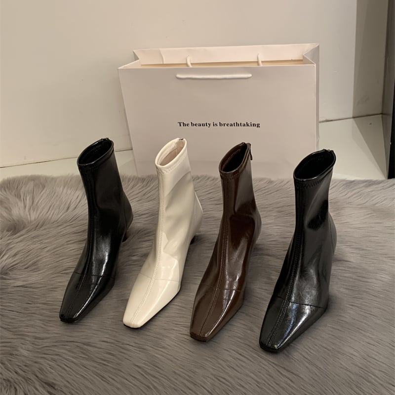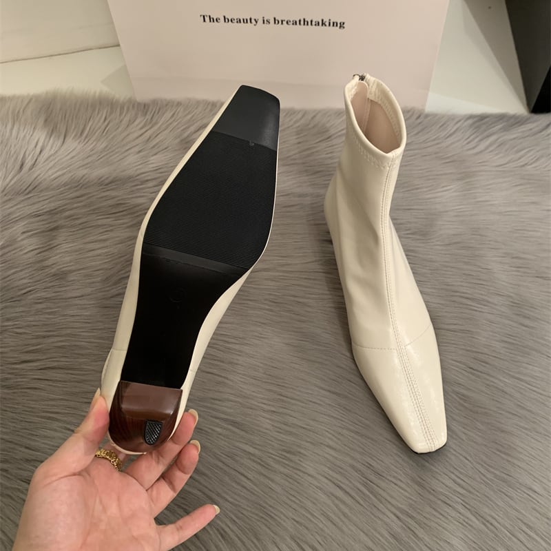 装飾を省いたミニマルなデザインが際立つショートブーツ。