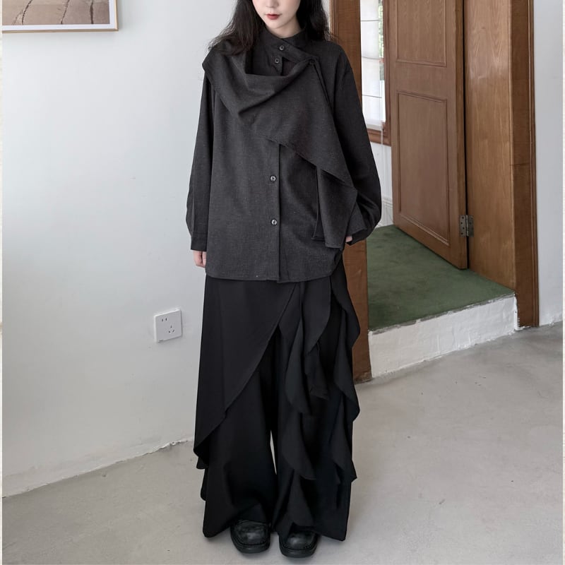 Asymmetric Wrap Ruffle Wide Pants H0377