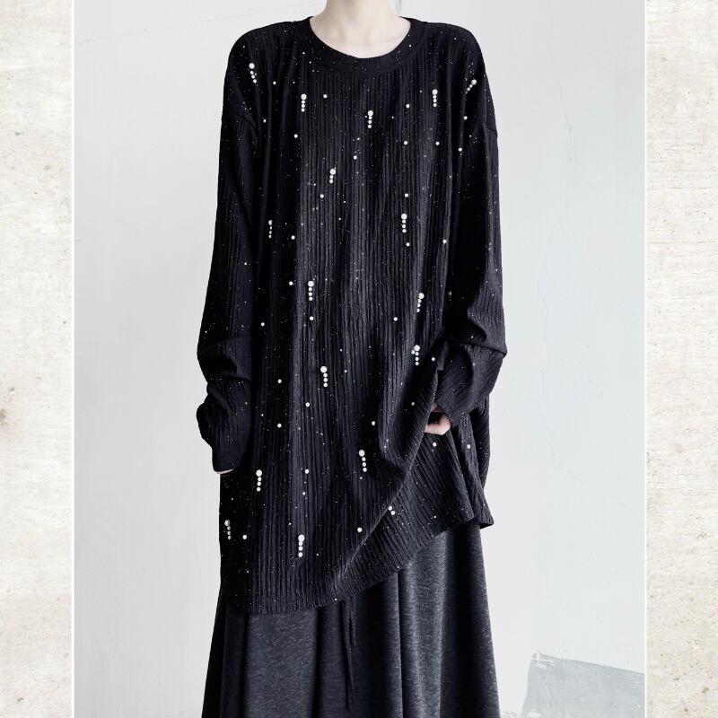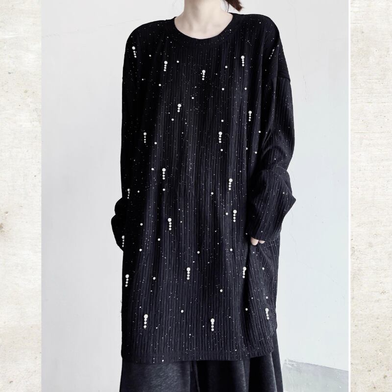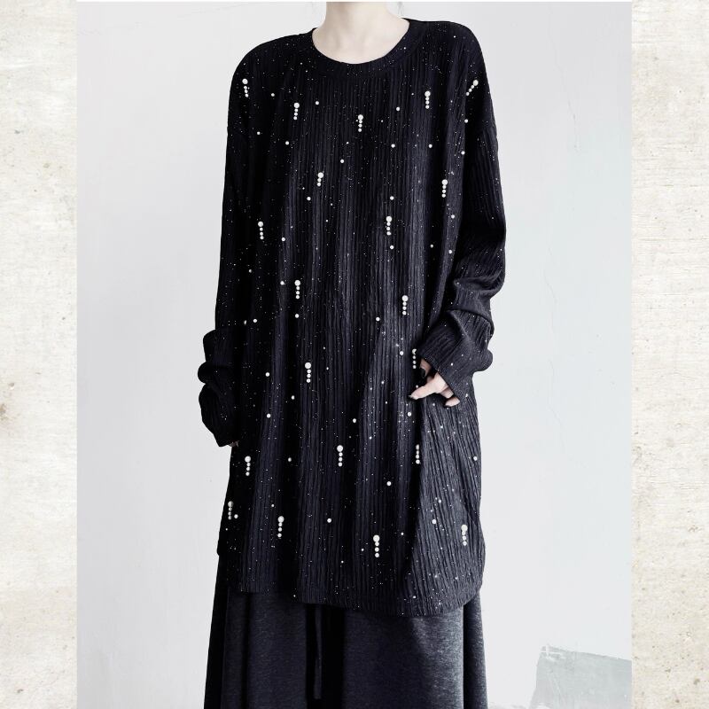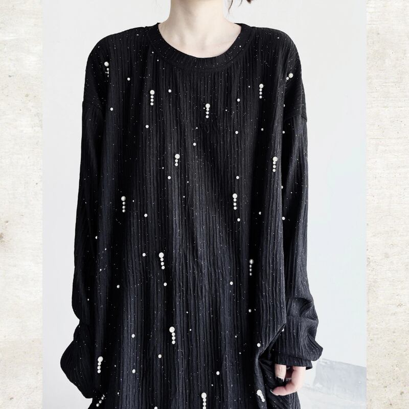 散りばめられたパールの装飾が、ソリッドなブラックにモダンな輝きを放ちます。