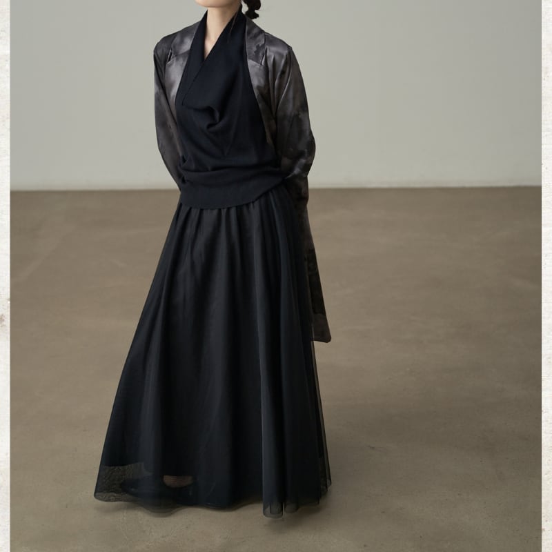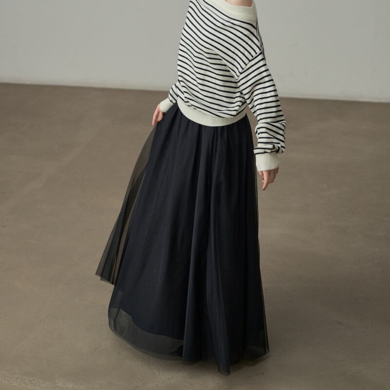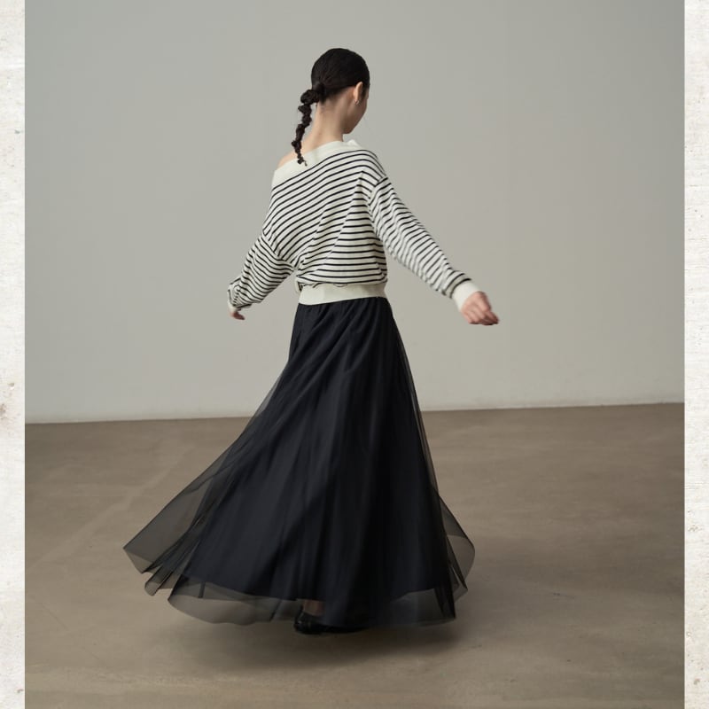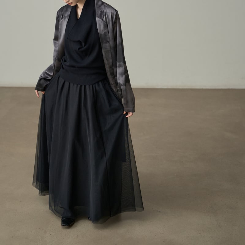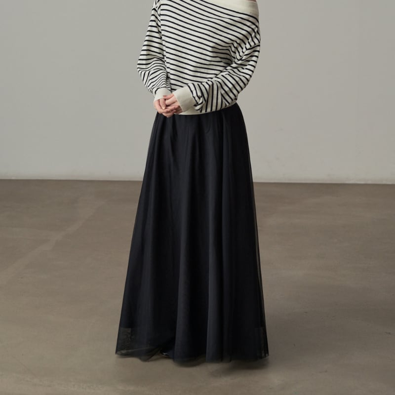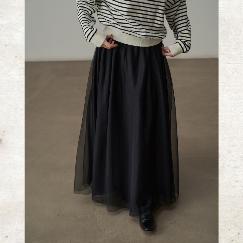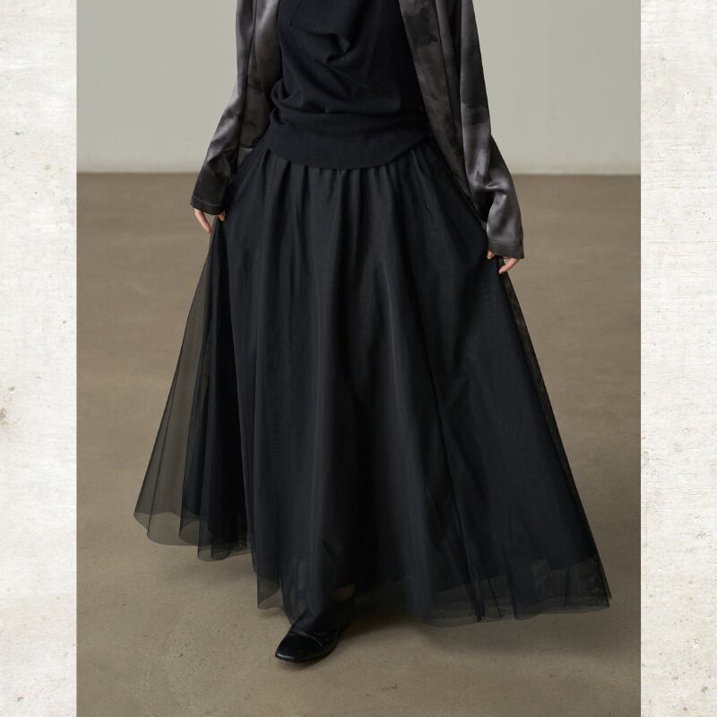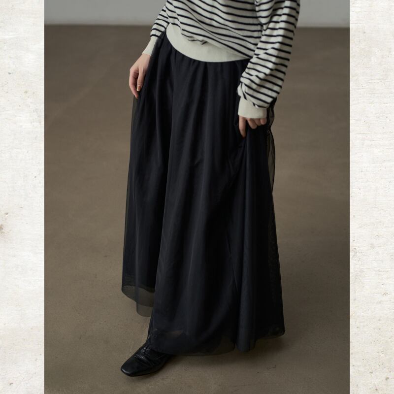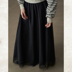シアーで軽やかなチュール素材を贅沢に使用し、ボリューム感を表現したロングスカート。