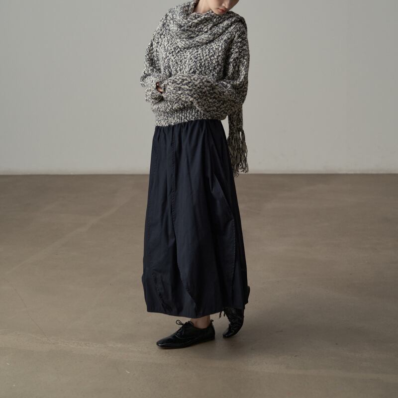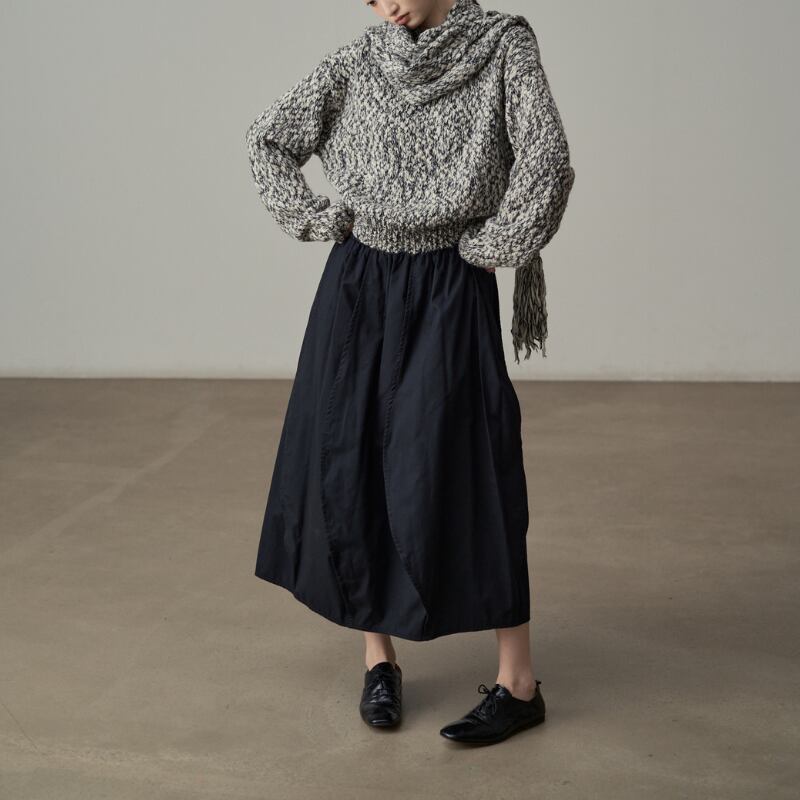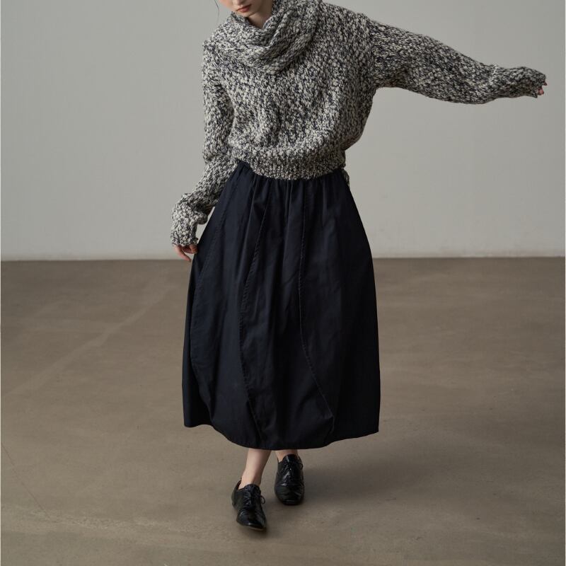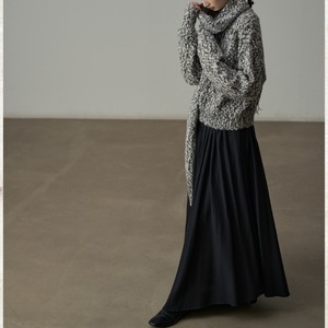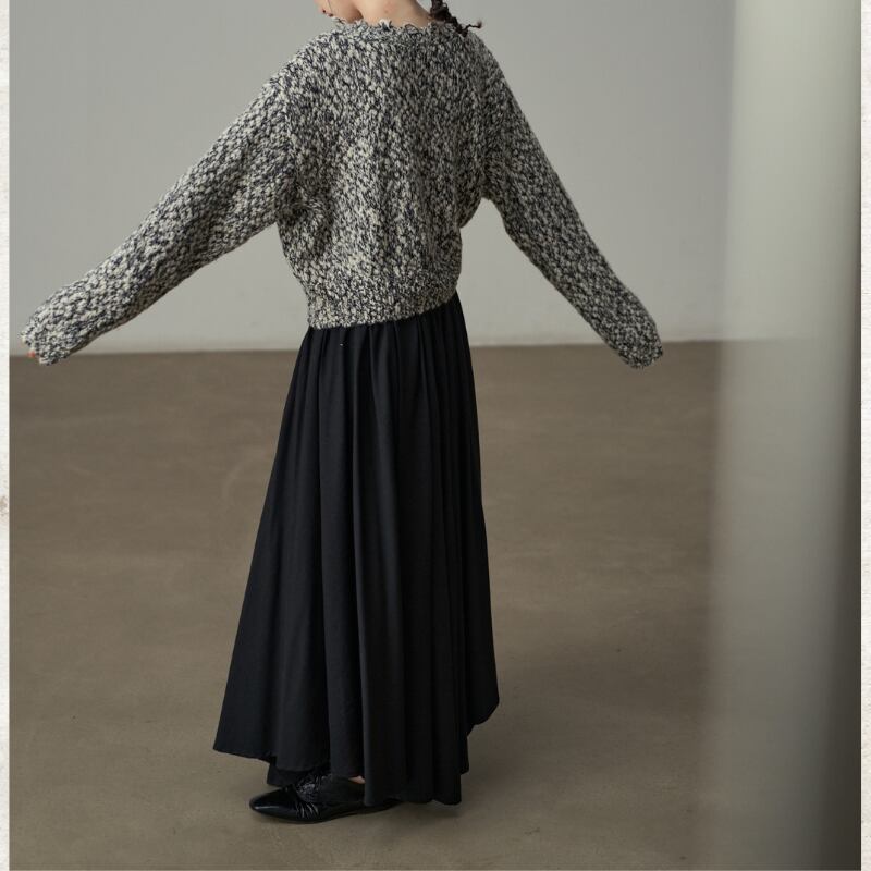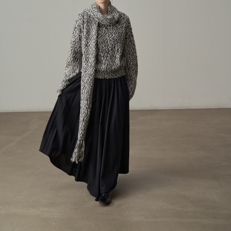 白と黒のミックスヤーンがシックな表情を見せる、ざっくりとした編み地のルーズニット。