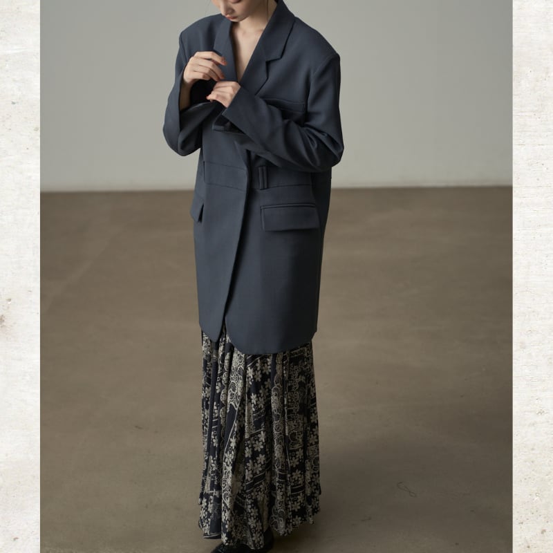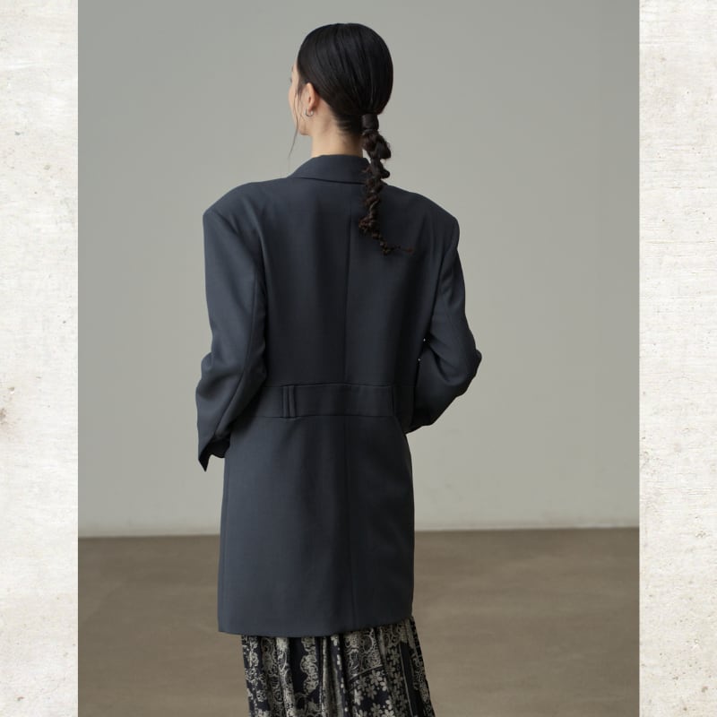 ベルトディテールダブルブレストロングジャケット