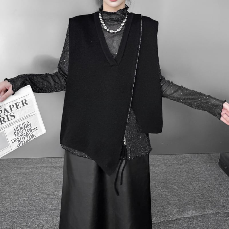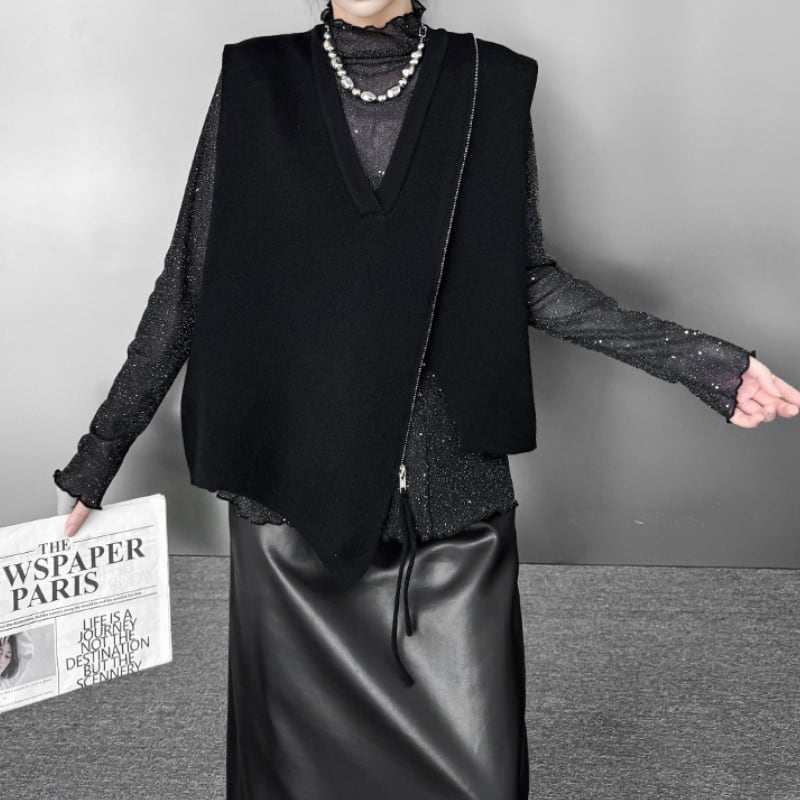 アシンメトリージップ Vネックニットベスト