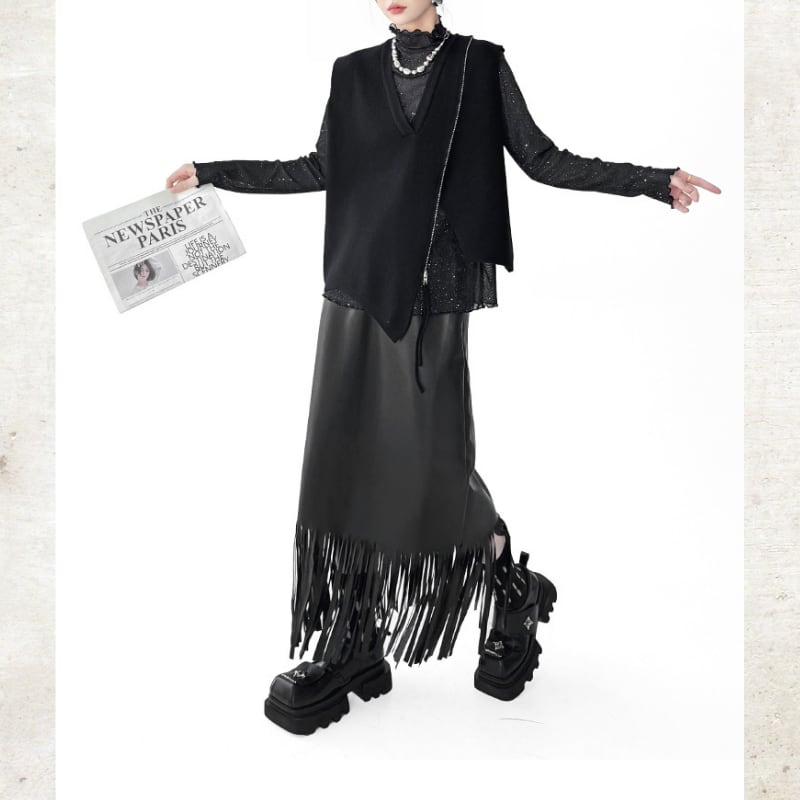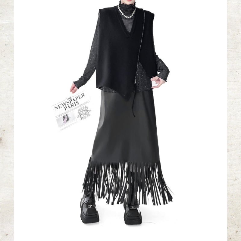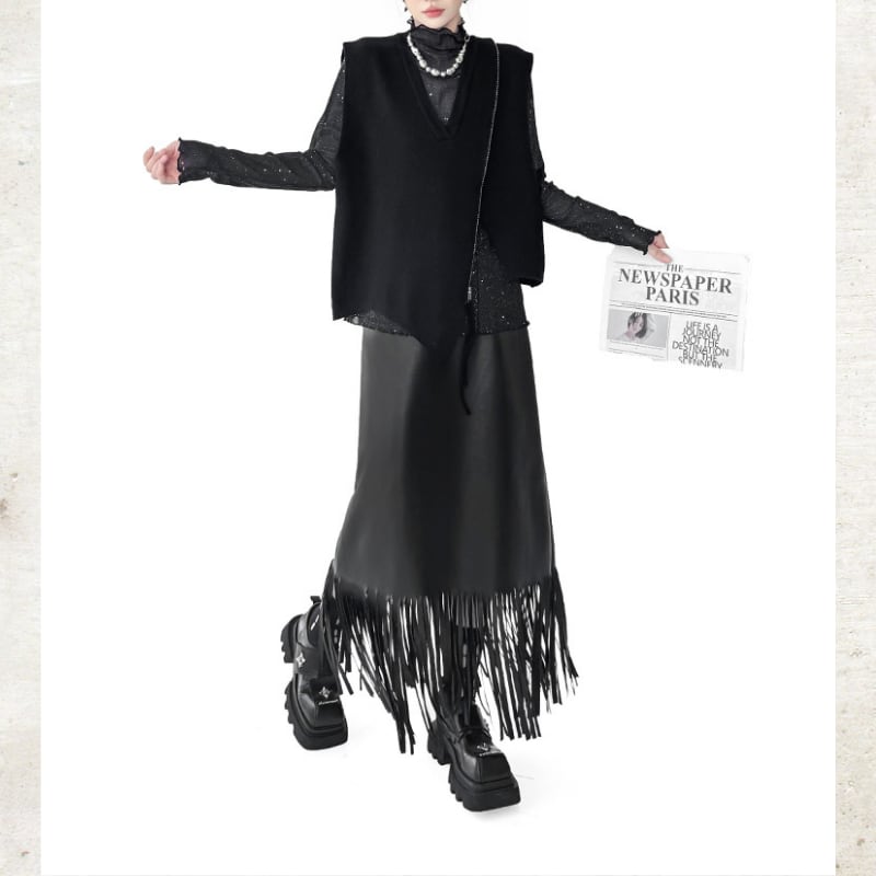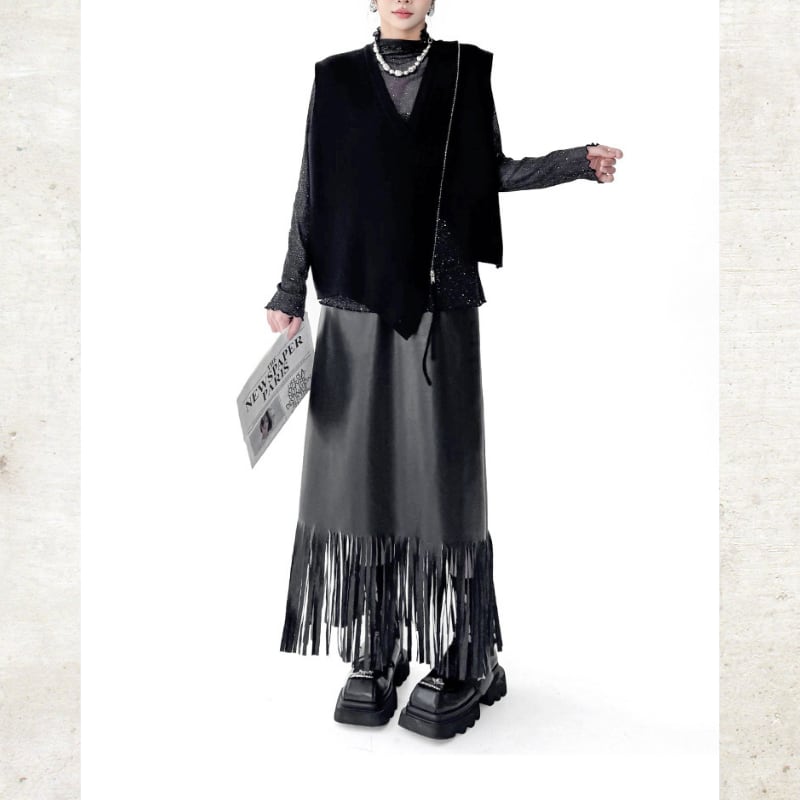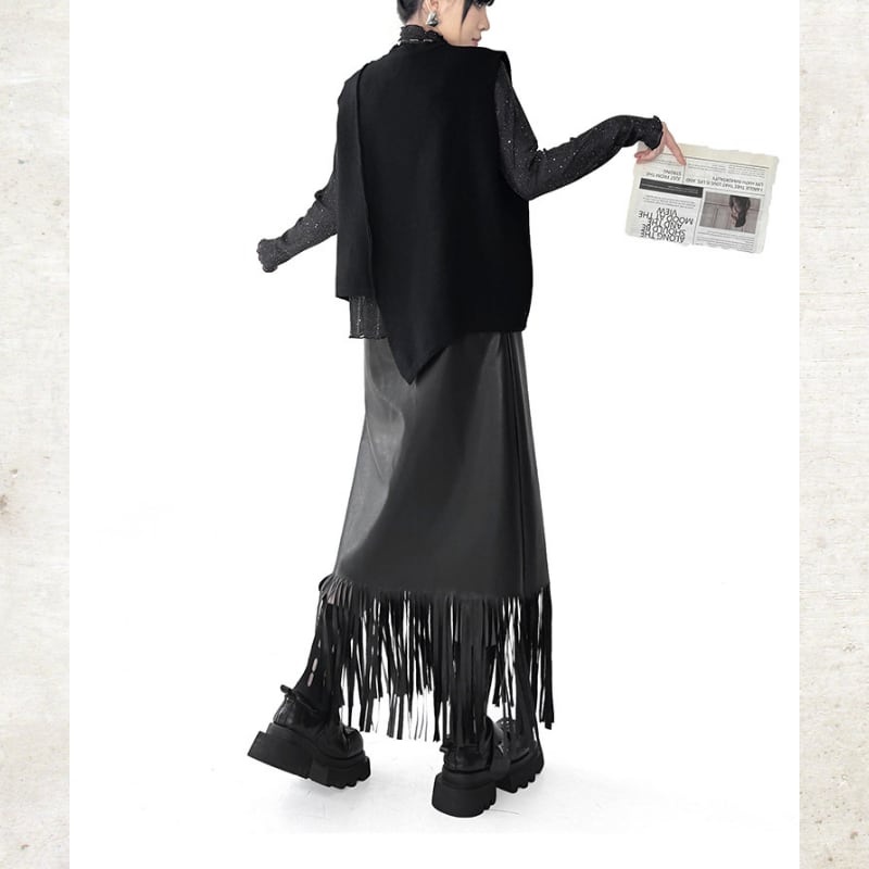 Long Fringe Eco-Leather Skirt H0187