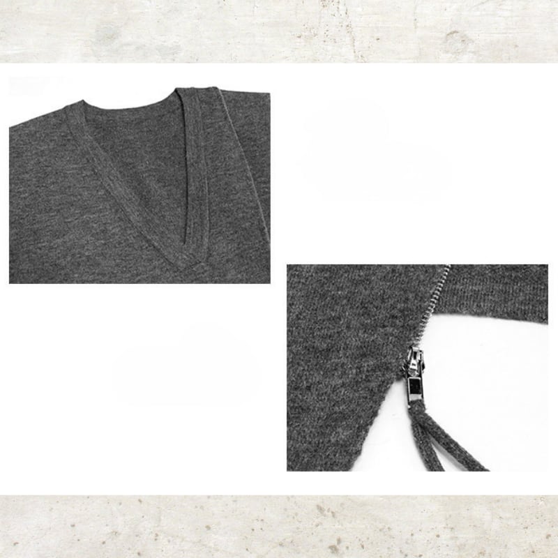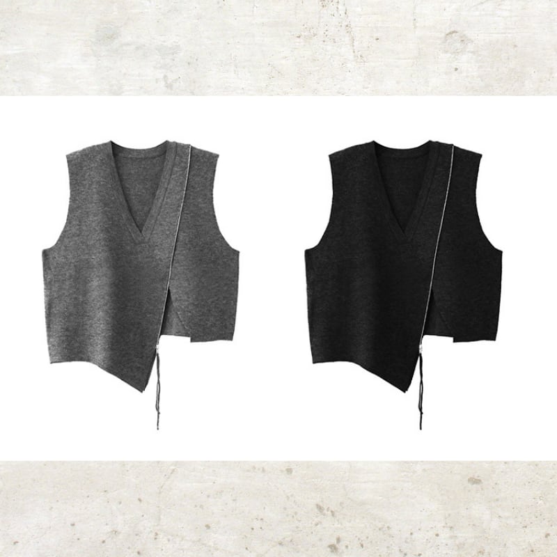 Asymmetric Zip V-Neck Knit Vest H0399
