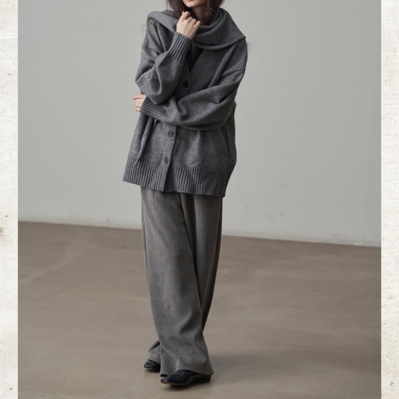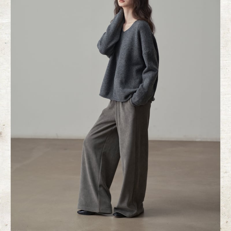 股上を深く取り、裾までゆったりと落ちるルーズフィットのワイドシルエットが特徴。