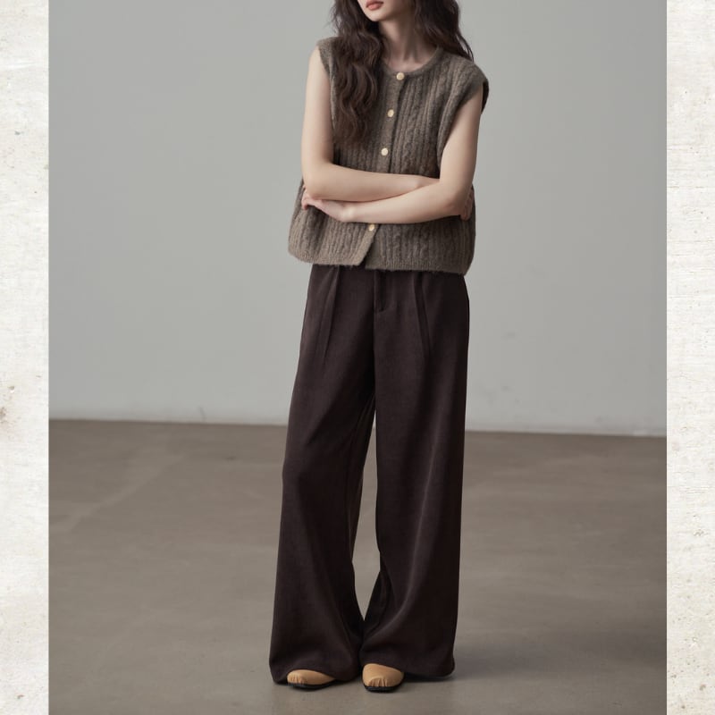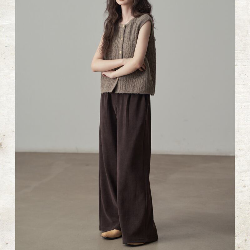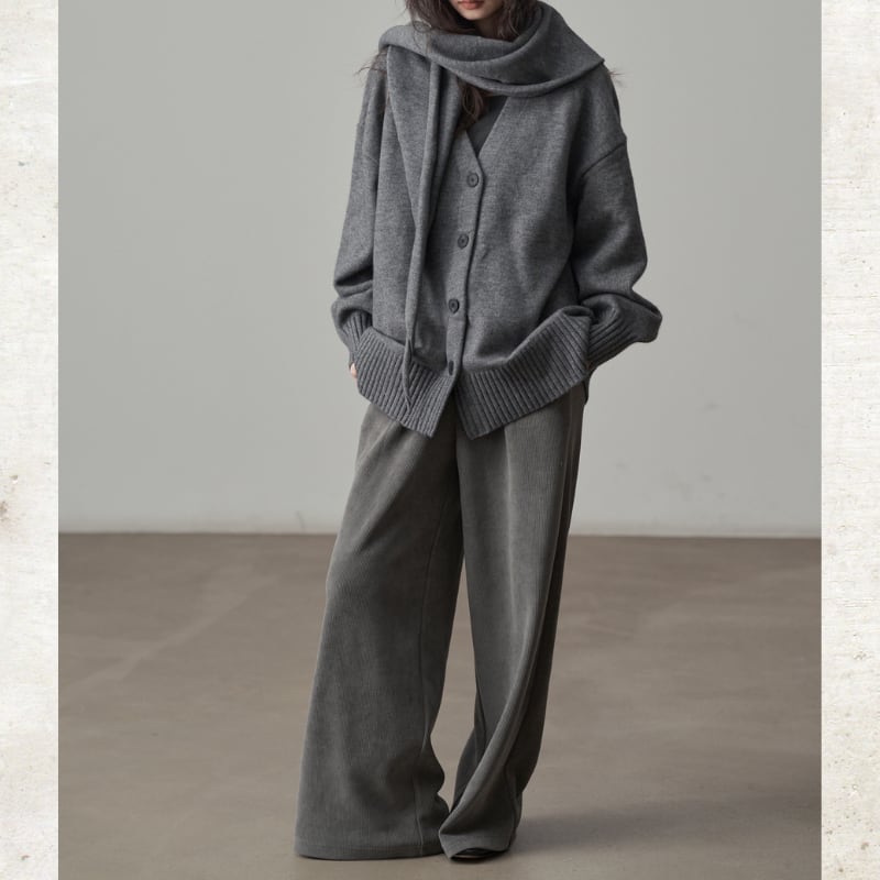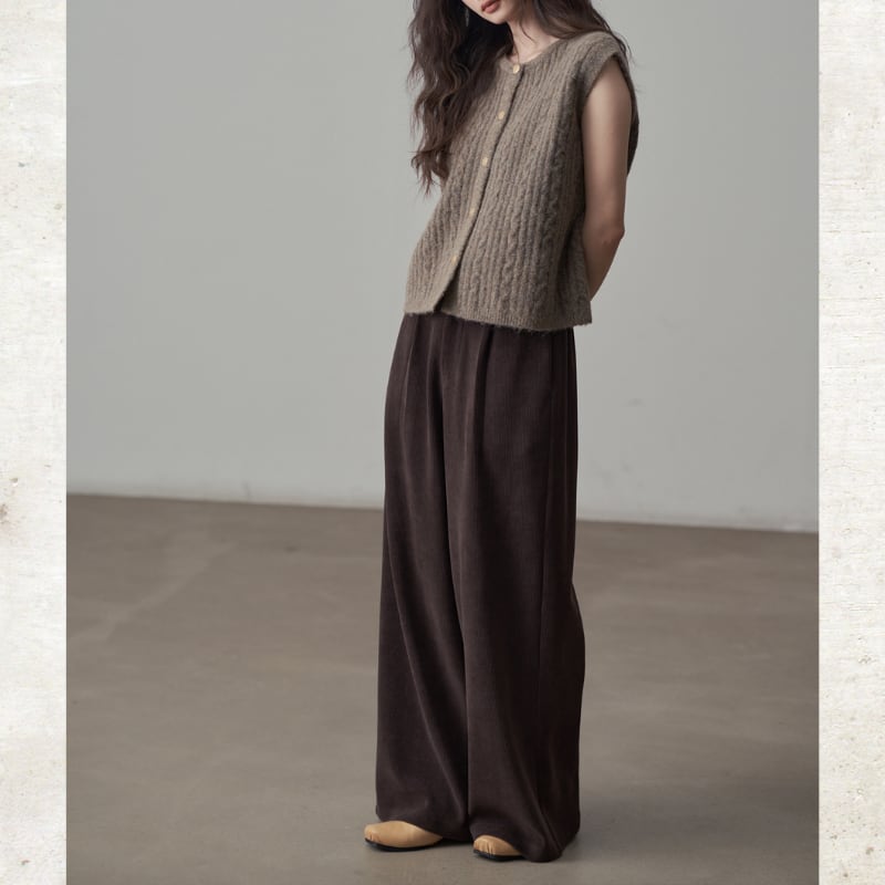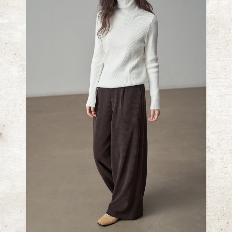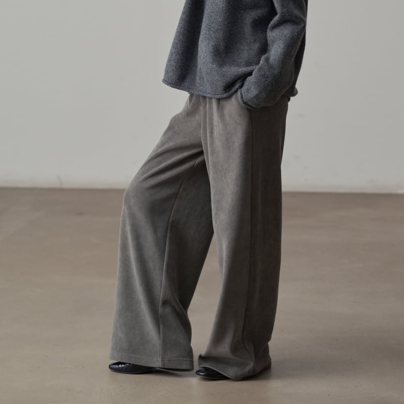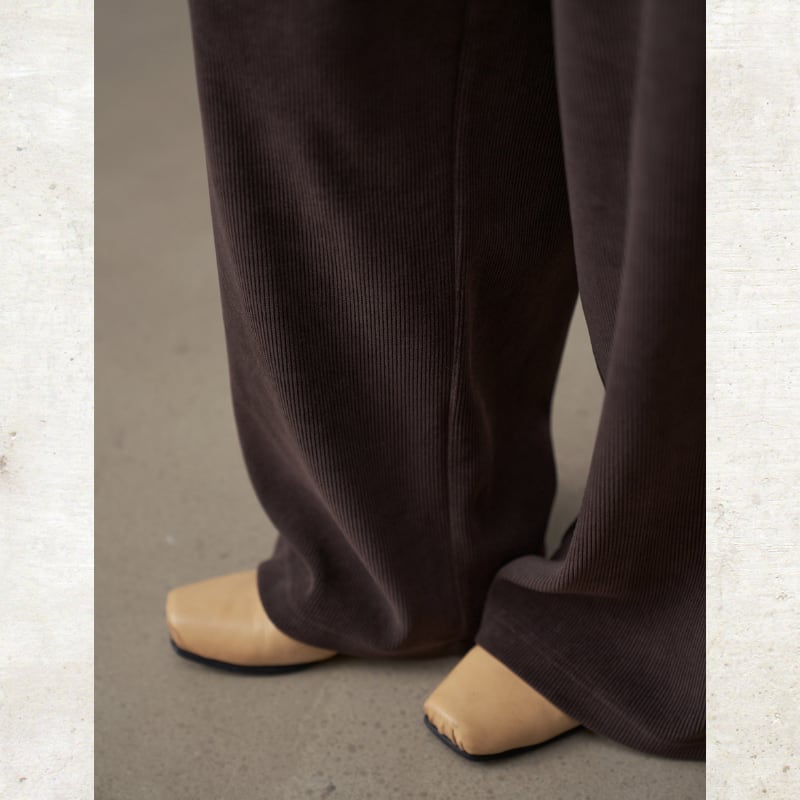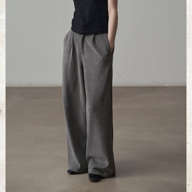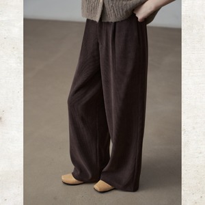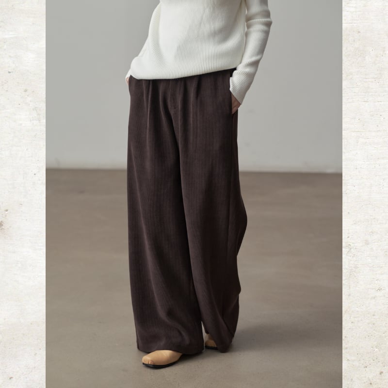 コーデュロイ素材がレトロでありながらモダンなムードを演出するパンツ。