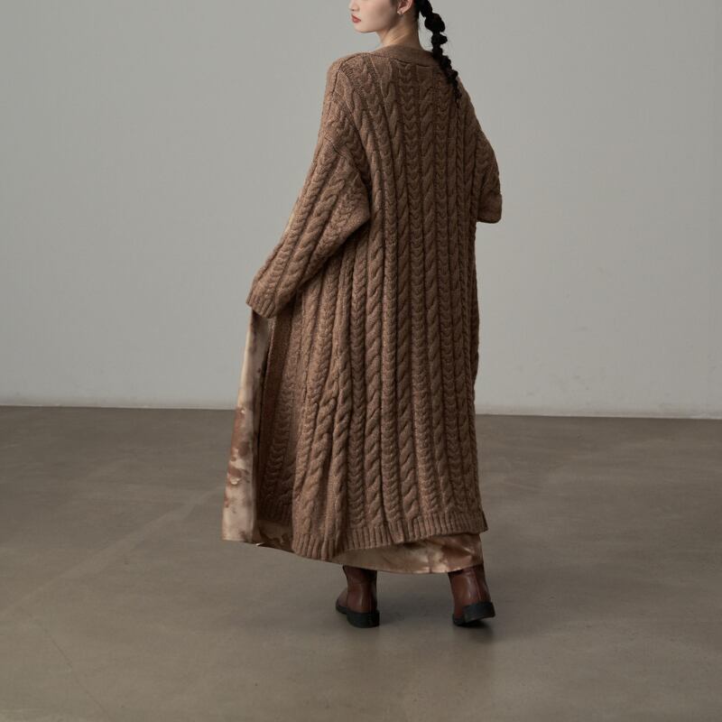 Volume Cable Long Knit Coat H0404