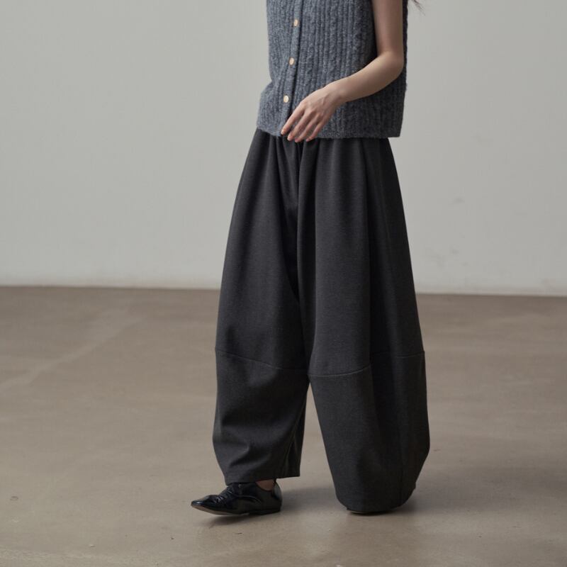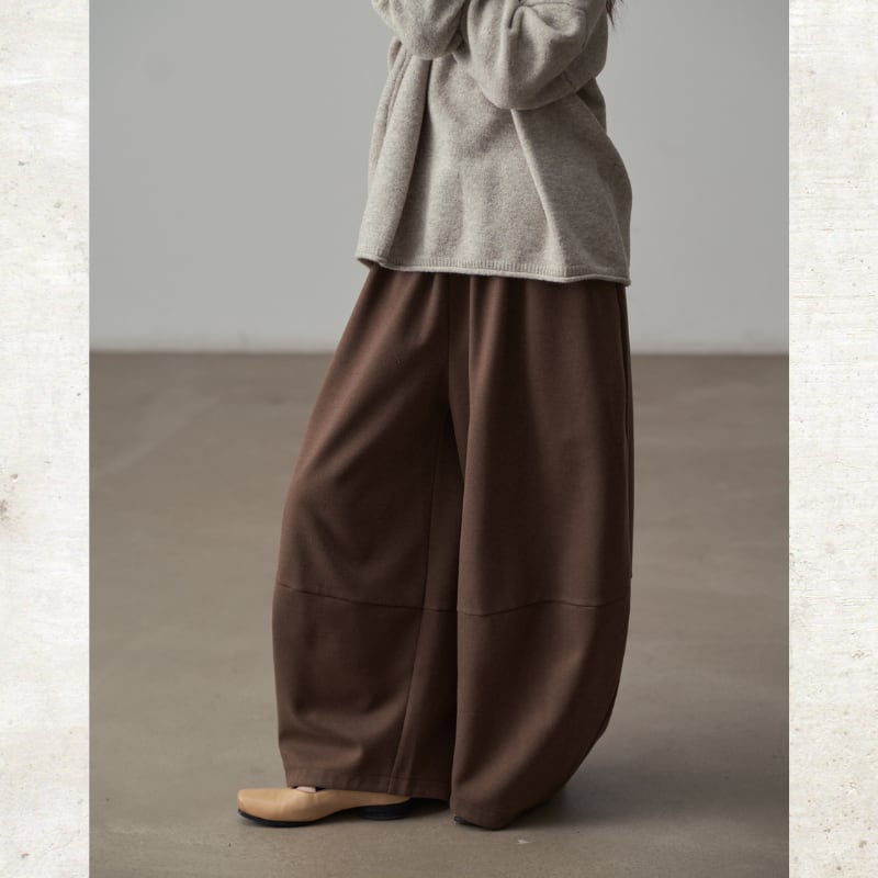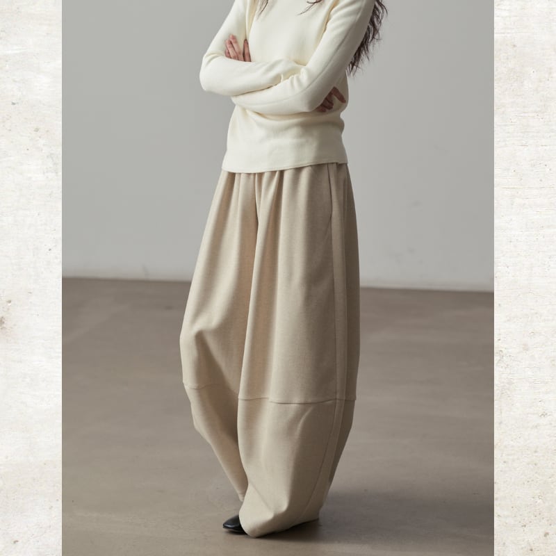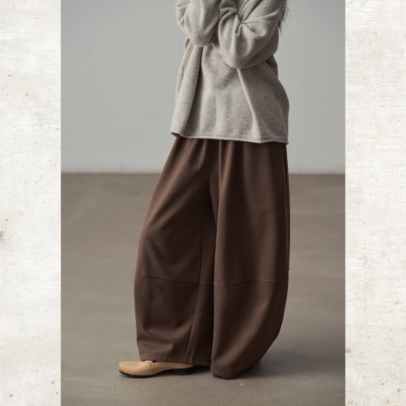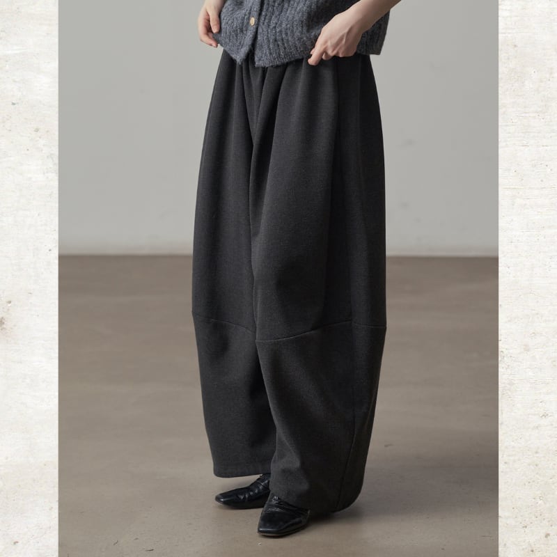 丸みを帯びたバルーンシルエットが、足元にボリュームをもたらすワイドパンツ。
