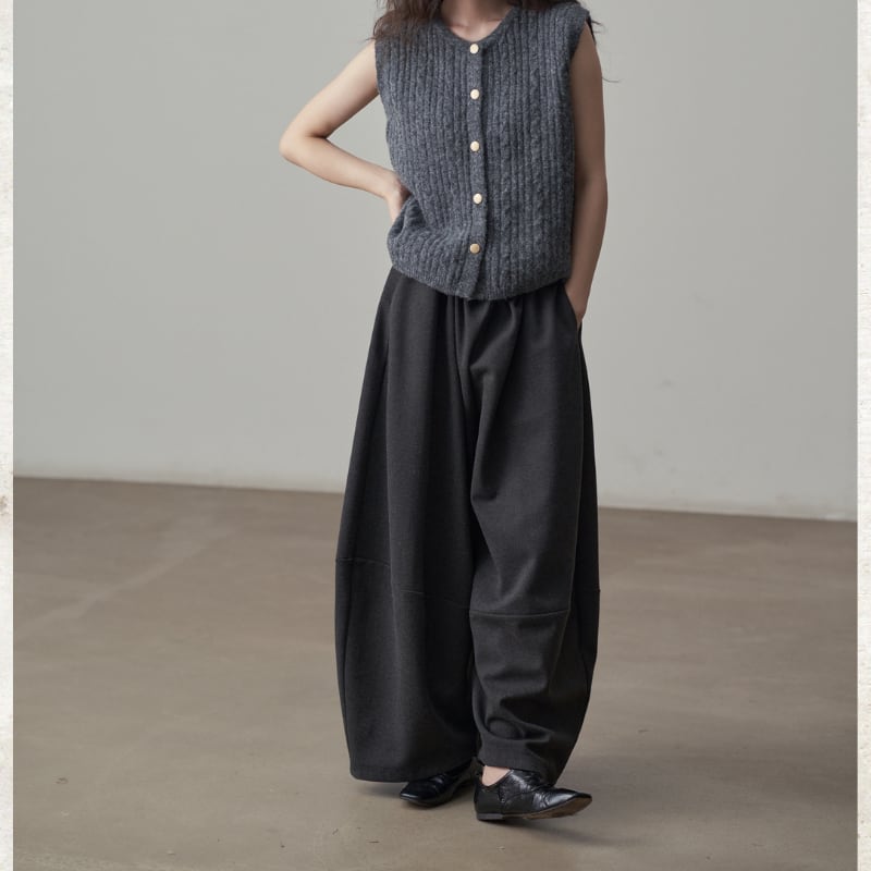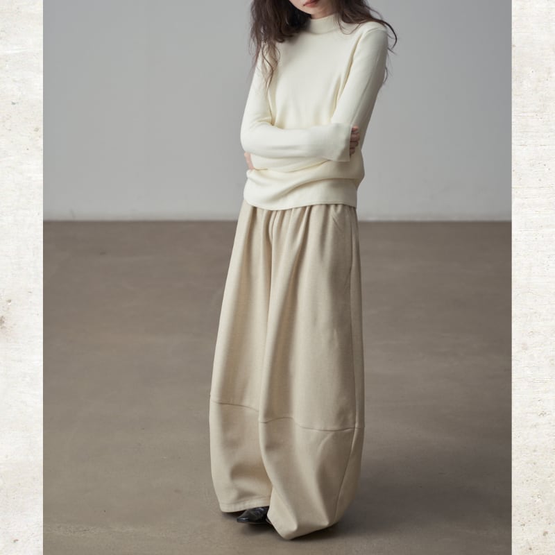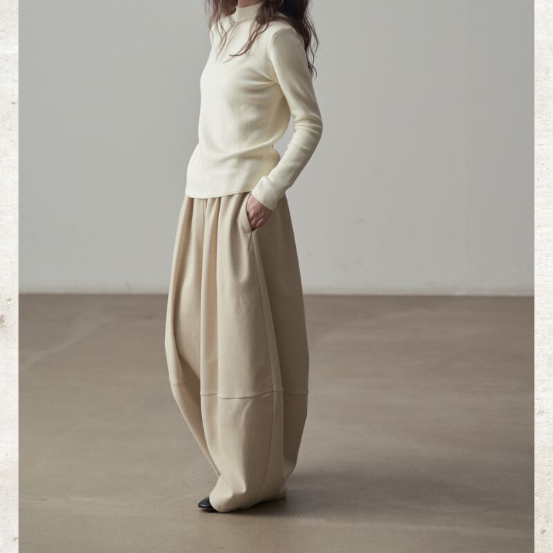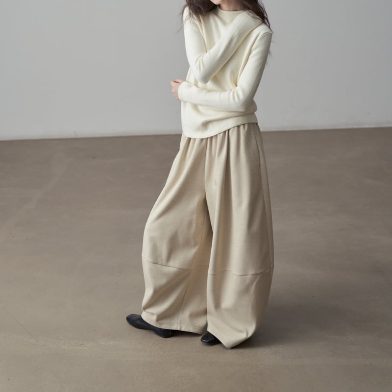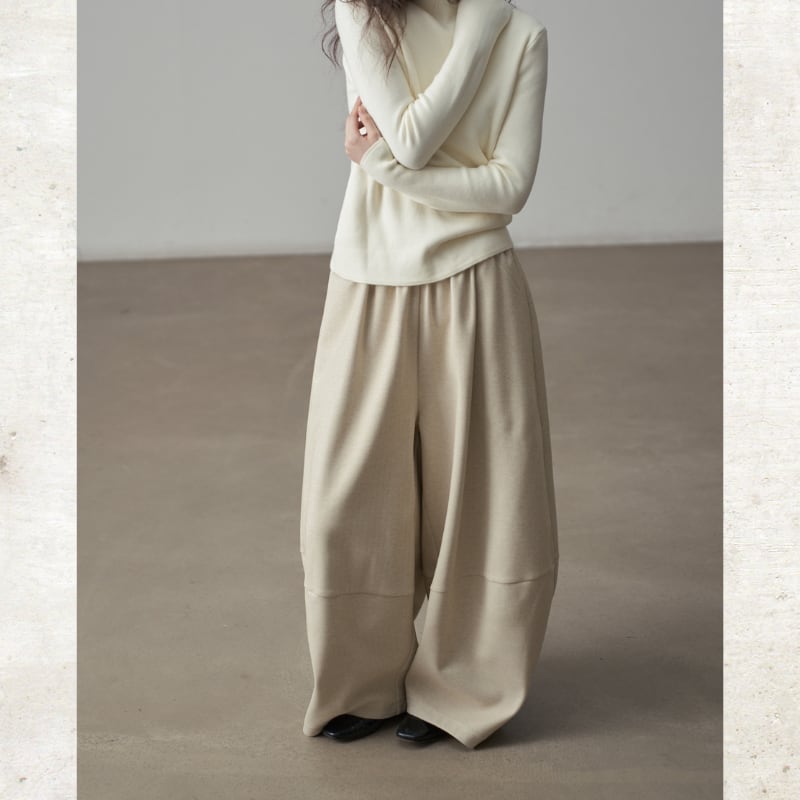 丸みを帯びたバルーンシルエットが、足元にボリュームをもたらすワイドパンツ。