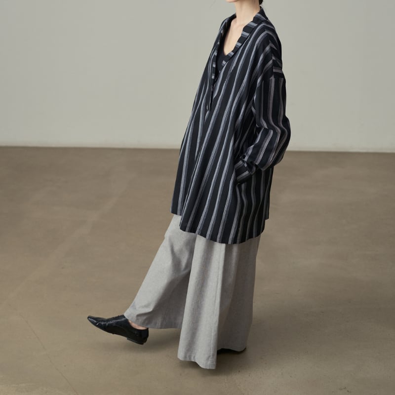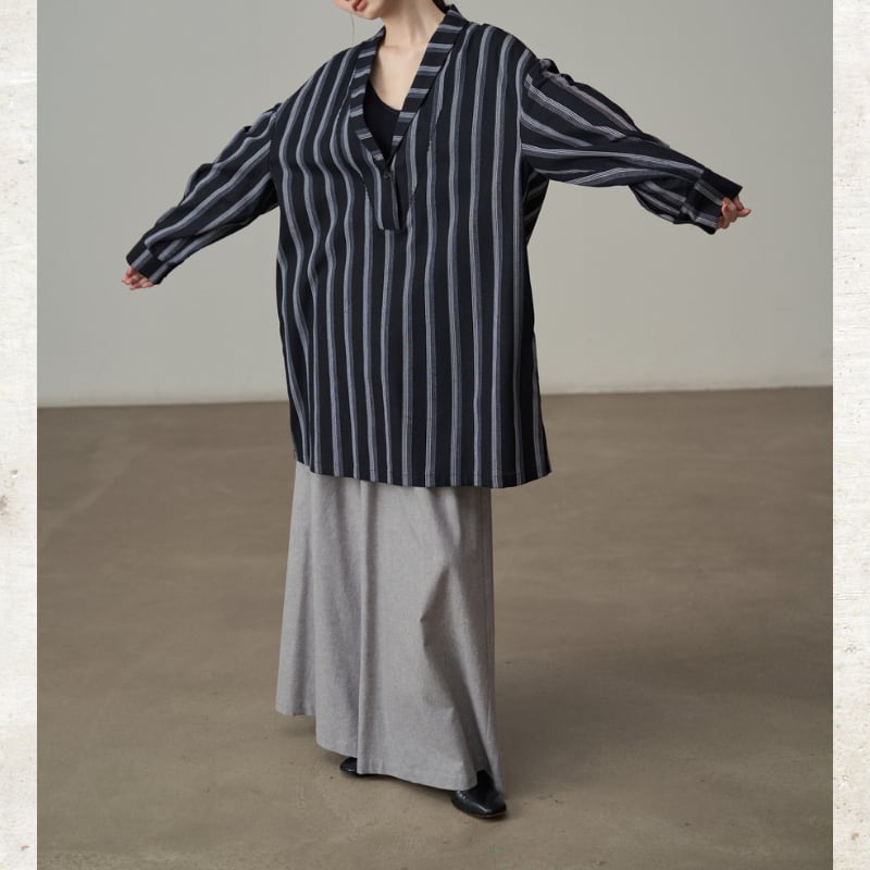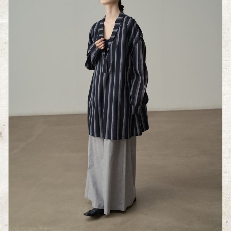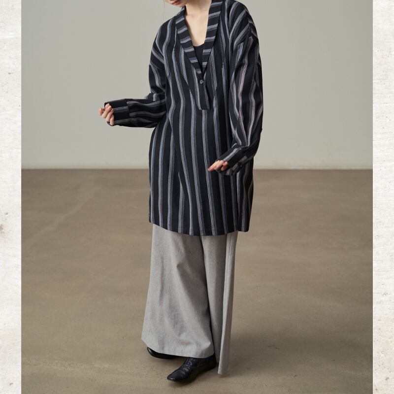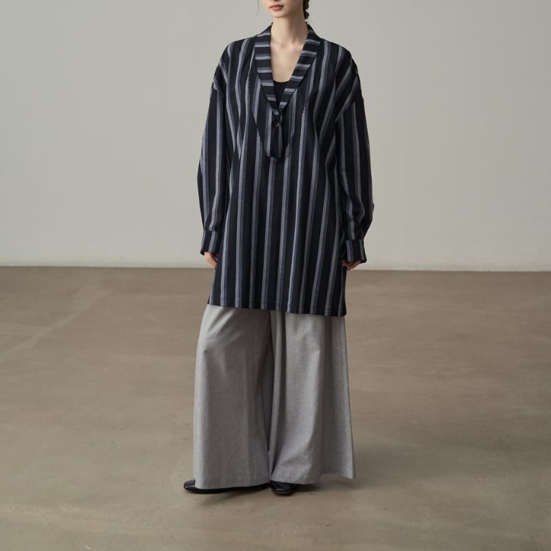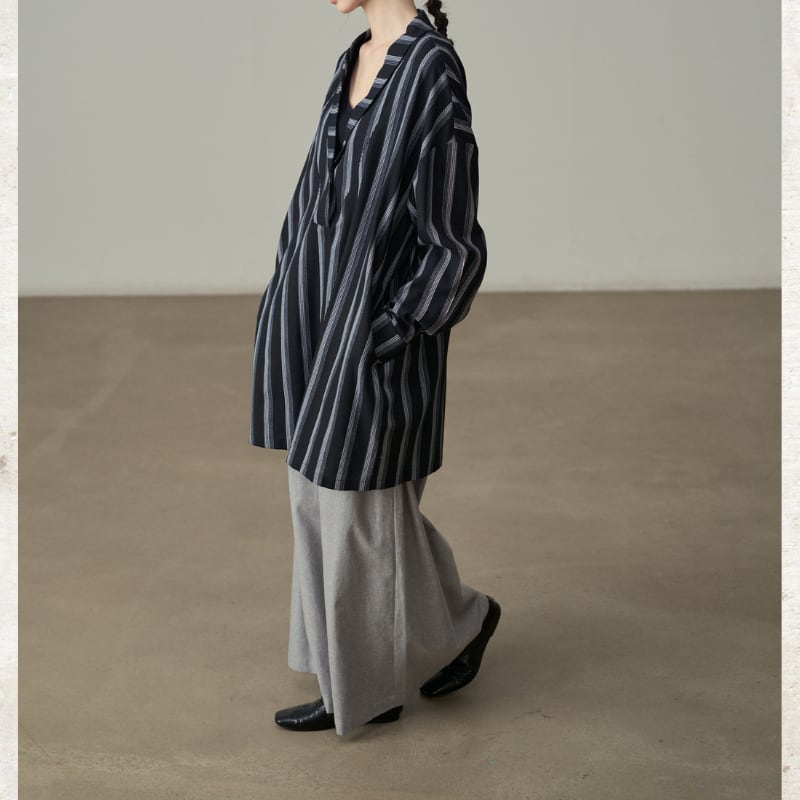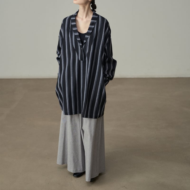 深く開いたVネックがクリーンで洗練されたムードを演出。