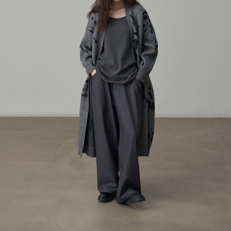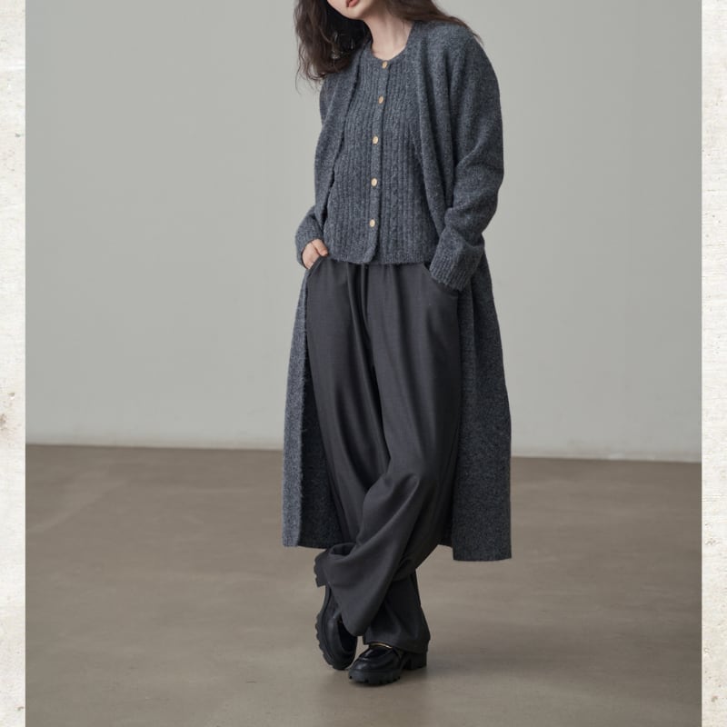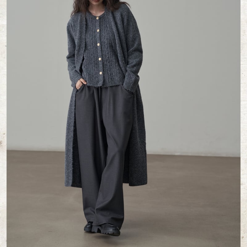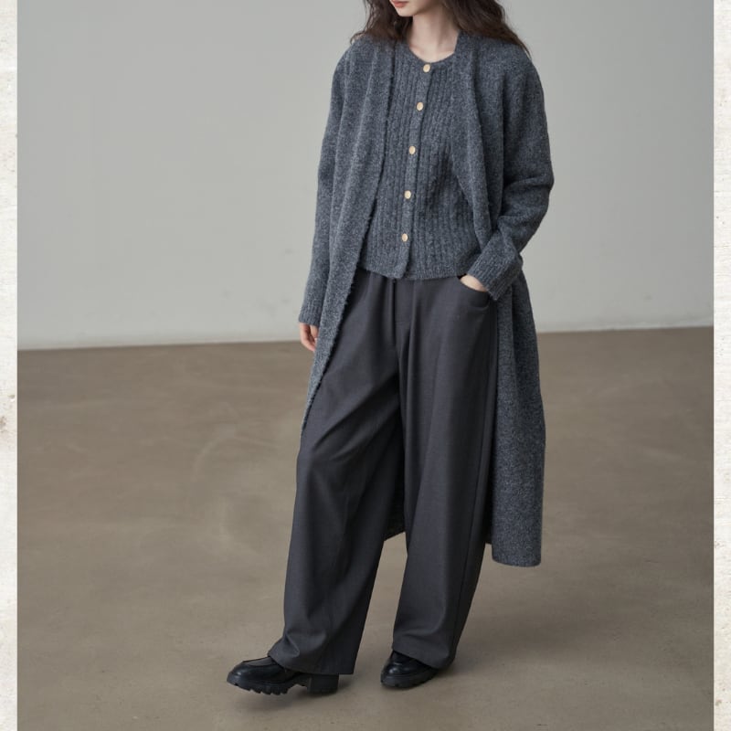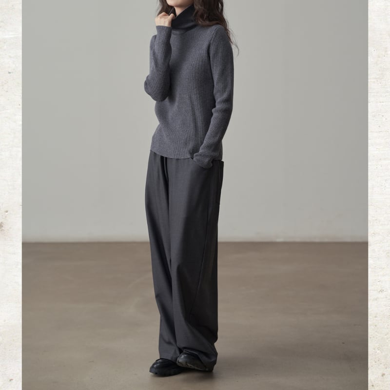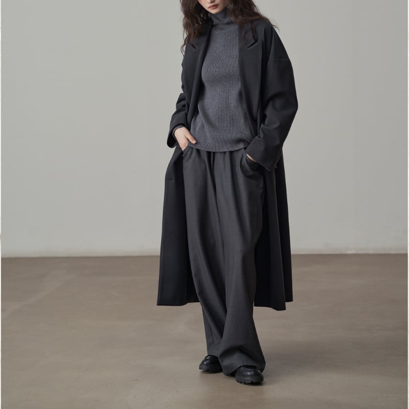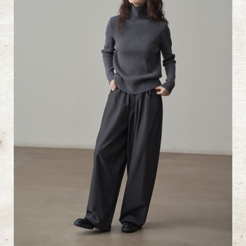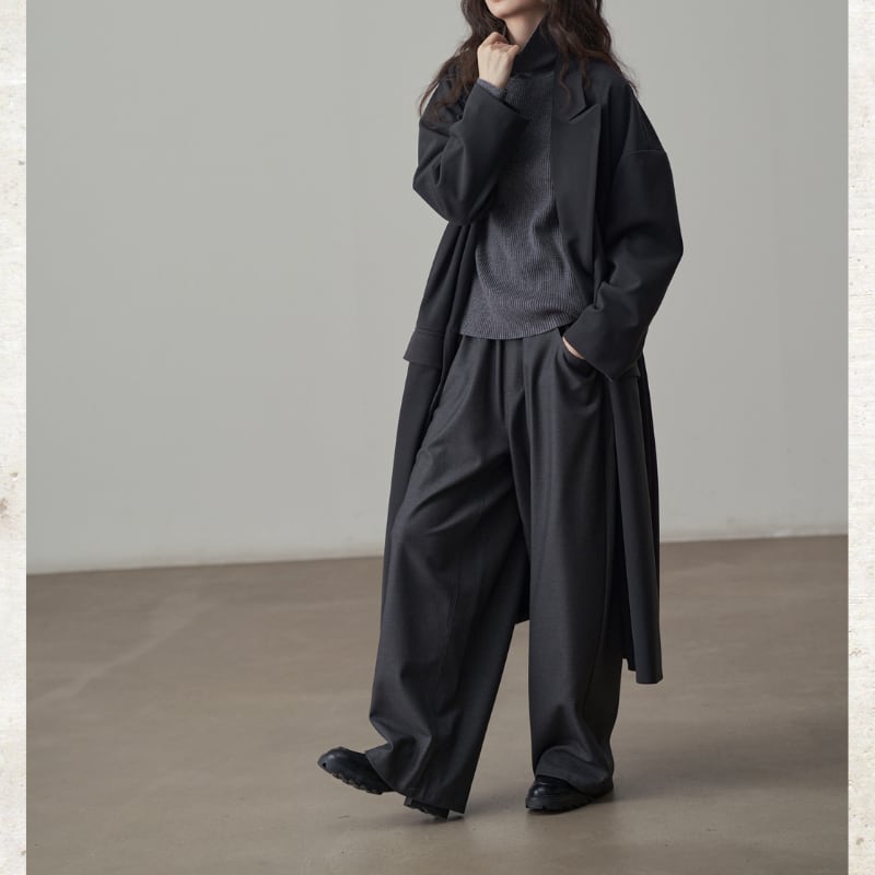 深めのタックとドレープ感のある素材が、リラックスしながらも端正な佇まいを実現。