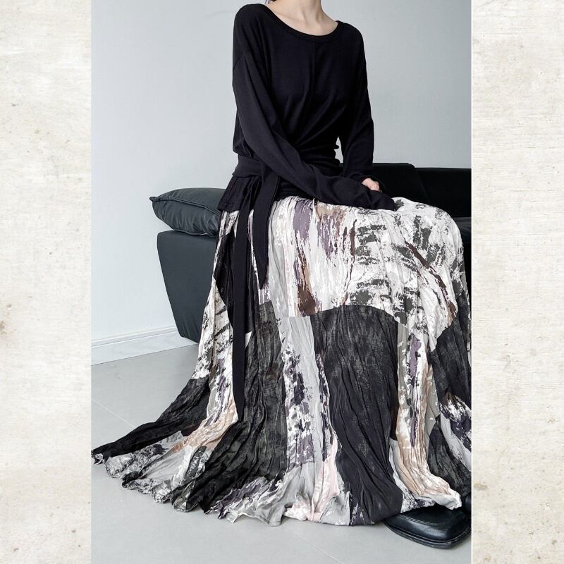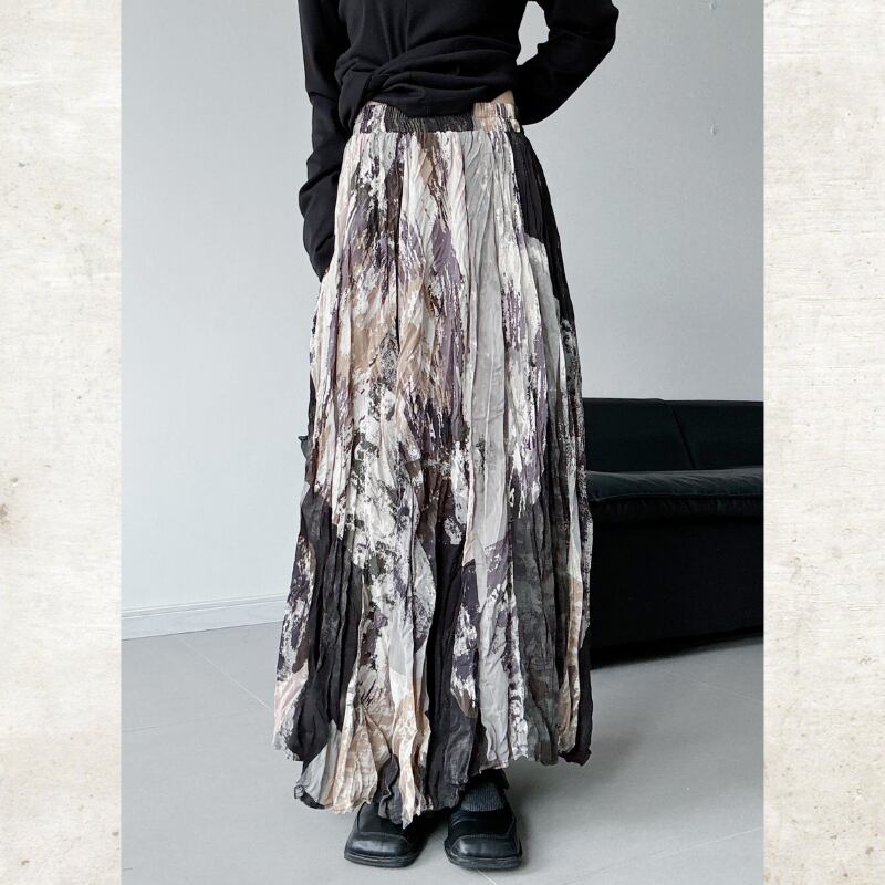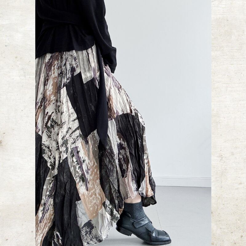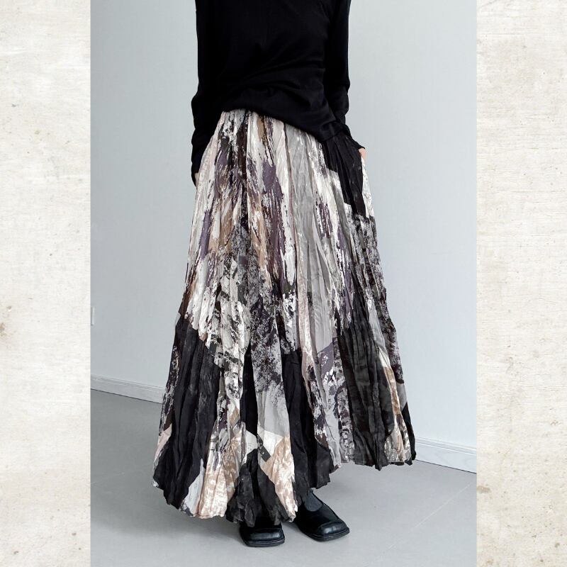アートプリント ランダムプリーツスカート