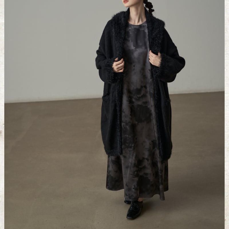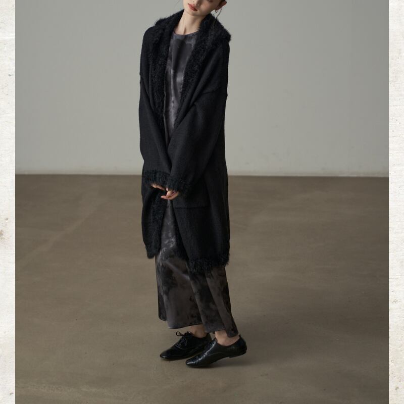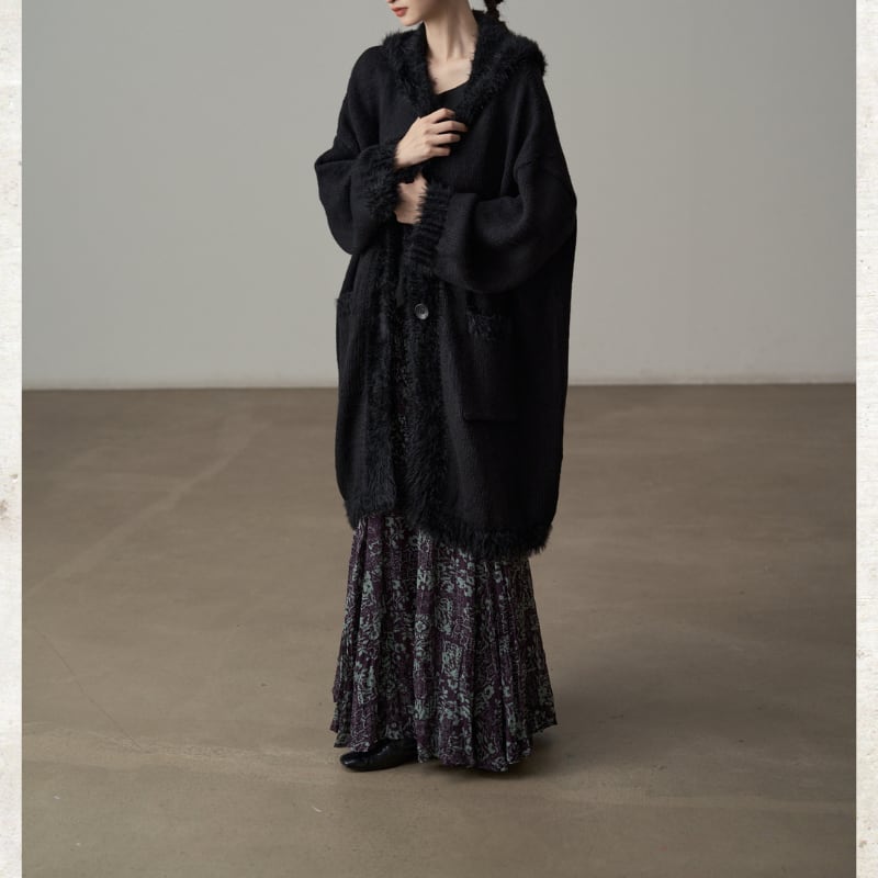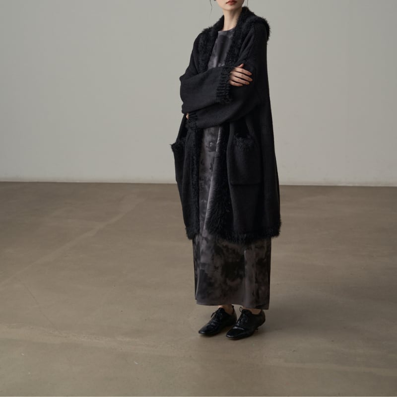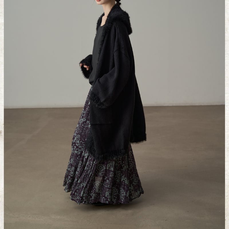 シャギートリミング ロングニットコート